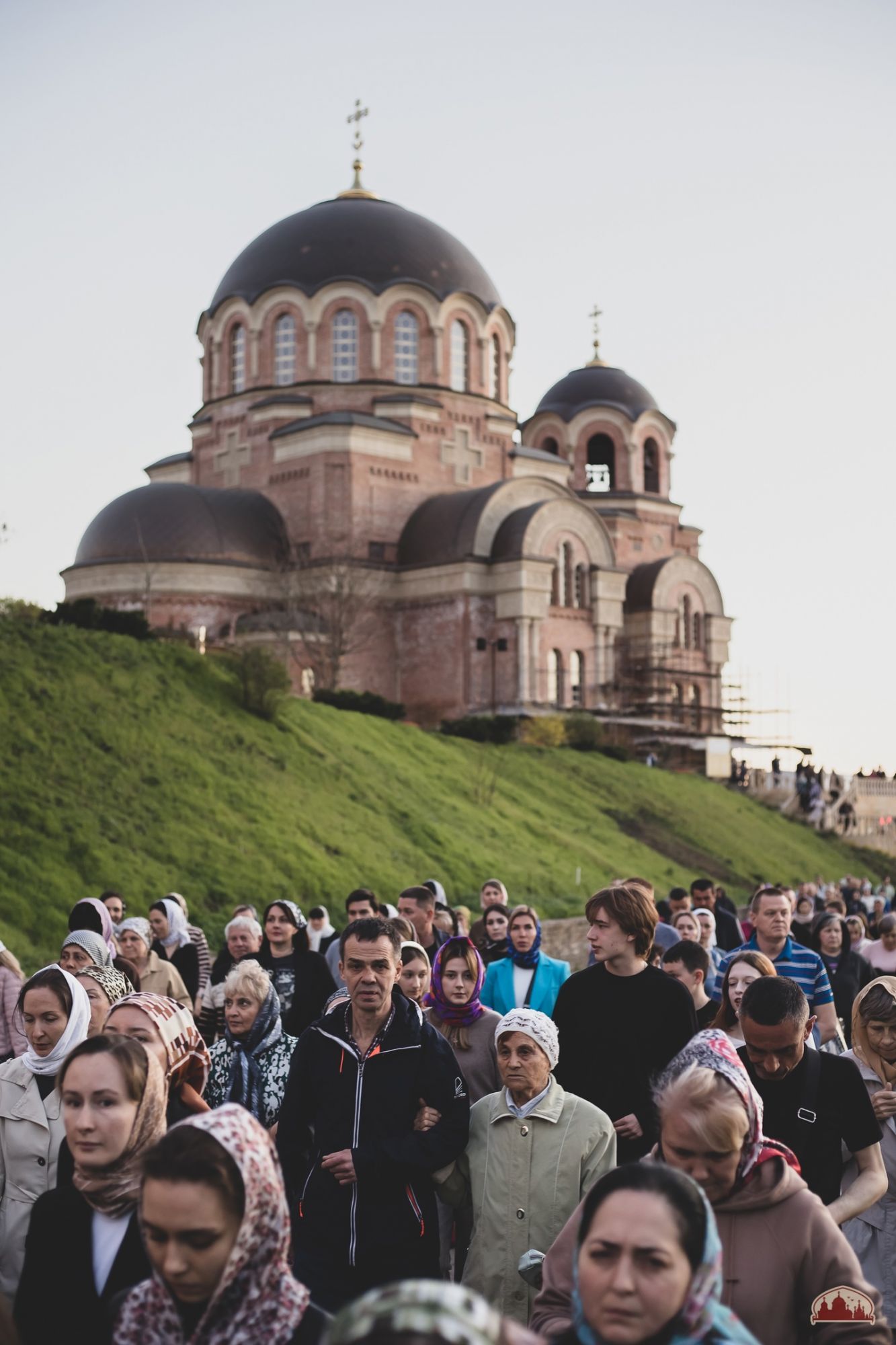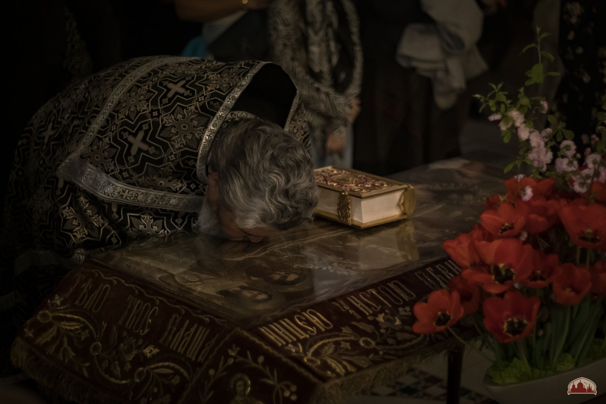 Да молчит всякая плоть человеческая и да стоит со страхом и трепетом и ни о чем земном в себе не помышляет: ибо Царь царствующих и Господь господствующих идет на заклание отдать Себя в пищу верным. Предваряют Его сонмы Ангелов со всеми Началами и Властями; многоочитые Херувимы и шестикрылые Серафимы, закрывая лица свои и воспевая песнь: аллилуия, аллилуия, аллилуия.