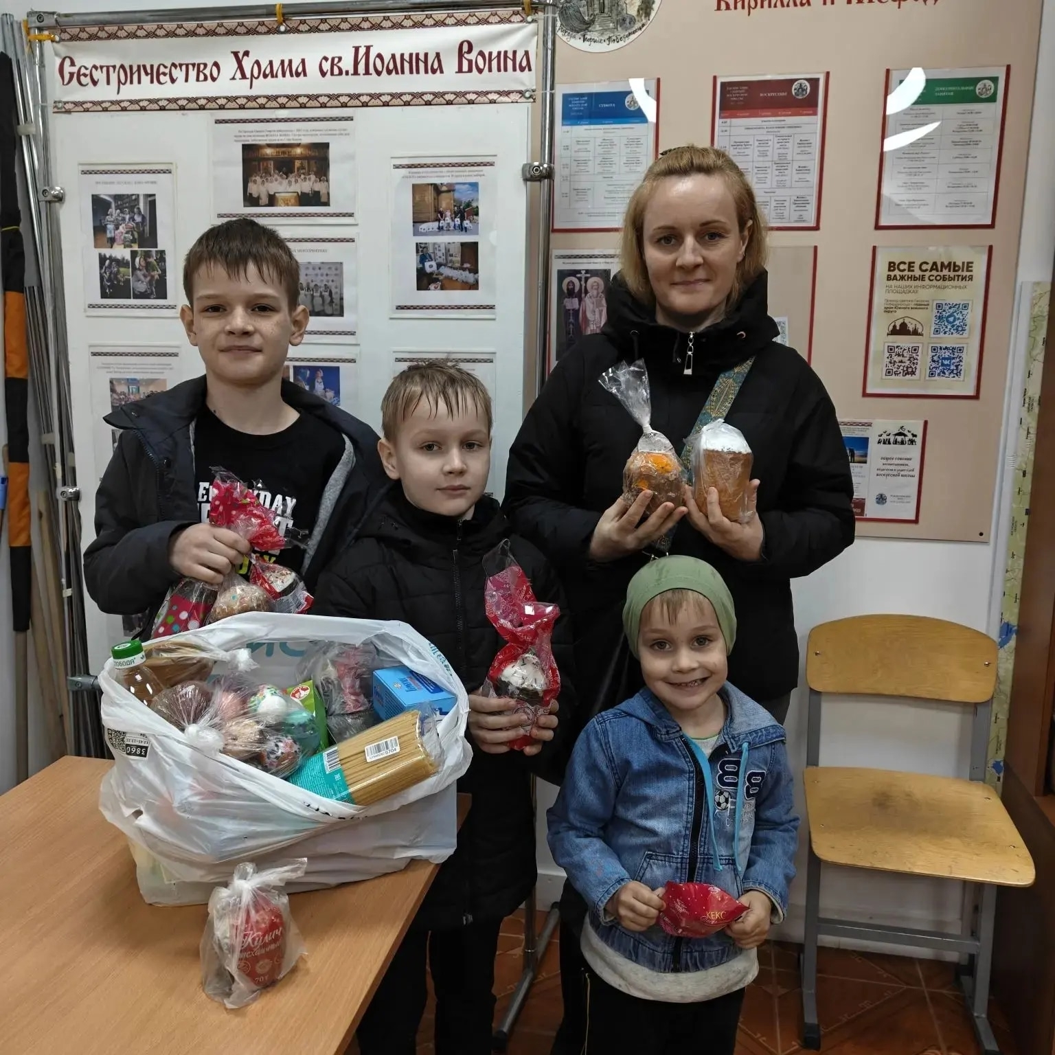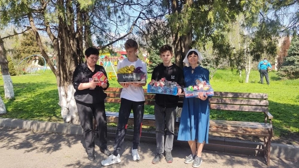 Пенсионеры клуба «Оптимист» Центра социального обслуживания населения Советского района, каждая семья инвалидов и малоимущих, находящаяся под опекой общины, воспитанники Мясниковского центра помощи детям, оставшимся без попечения родителей, пациенты Областной детской клинической больницы - никто не остался без радостного приветствия "Христос воскресе!" и пасхальных гостинцев.