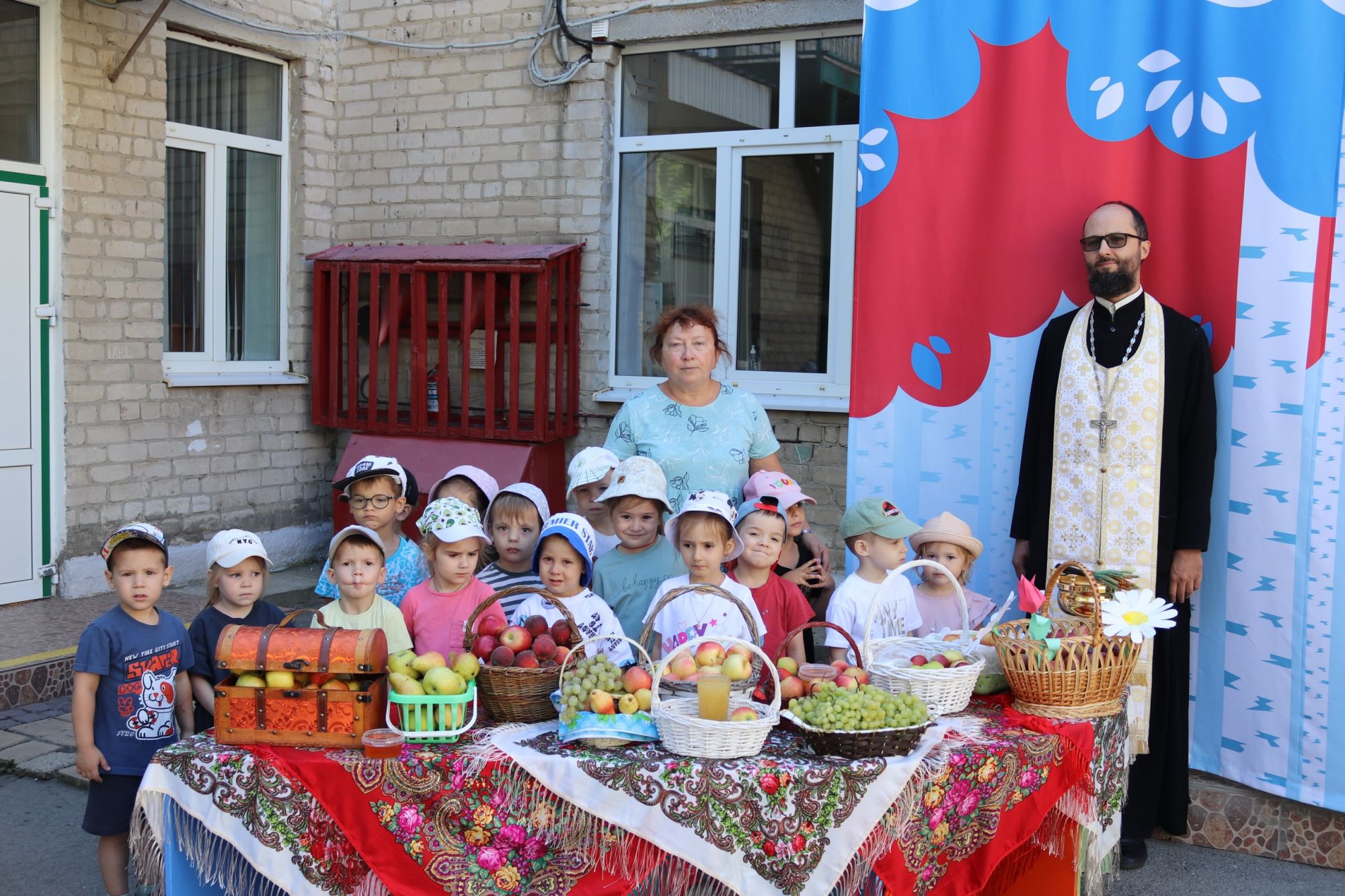 В канун Преображения традиционно приняли участие в праздничной программе наших маленьких друзей из детского сада 229. Иерей Иоанн Цупко поздравил детей, воспитателей и родителей с наступающим великим праздником, рассказал о его духовном смысле и освятил плоды, которые малыши заранее подготовили.