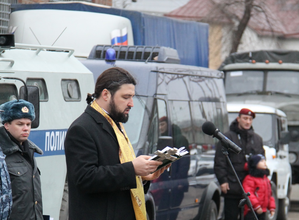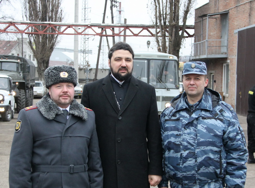 18 декабря 2011 г. в Ростове-на-Дону протоиерей Валерий Волощук, заместитель руководителя епархиального отдела по взаимодействию с Вооруженными силами и правоохранительными учреждениями, принял участие в торжественных проводах сводного отряда донской полиции в служебную командировку.