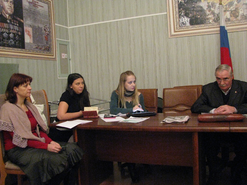 18 декабря 2012 г. в Окружном Доме офицеров (начальник полковник Лашенко Виктор Витальевич) прошло заседание оргкомитета, посвященное проведению мероприятий патриотической направленности в 2013 году. Председатель огкомитета генерал-майор Чернобылов Владимир Николаевич. В заседании приняли участие представители прихода Святого Георгия Победоносца Горобцова Ольга Александровна, Ждамиров Павел Владимирович, Чуцков Виктор Иванович.