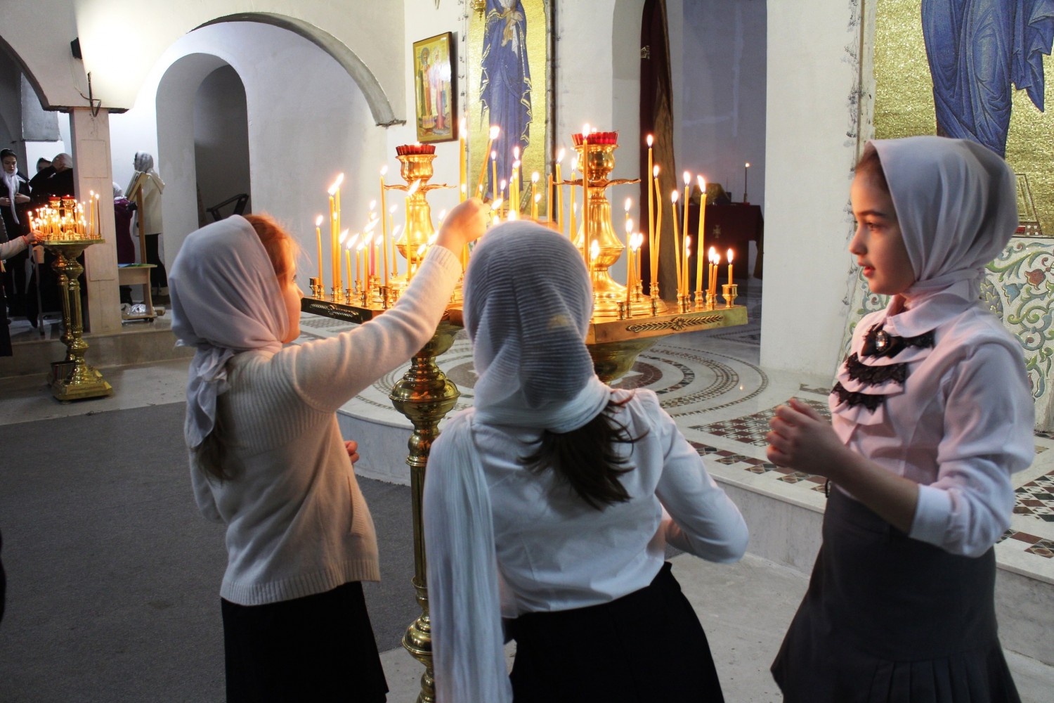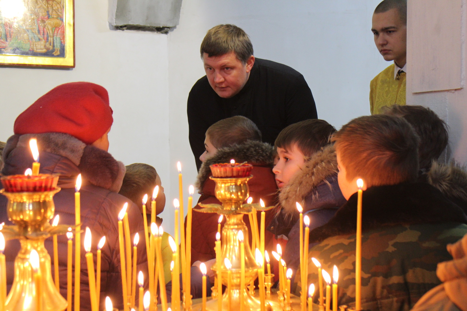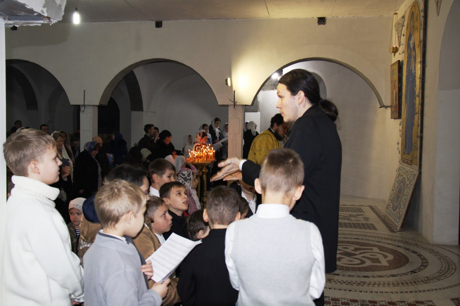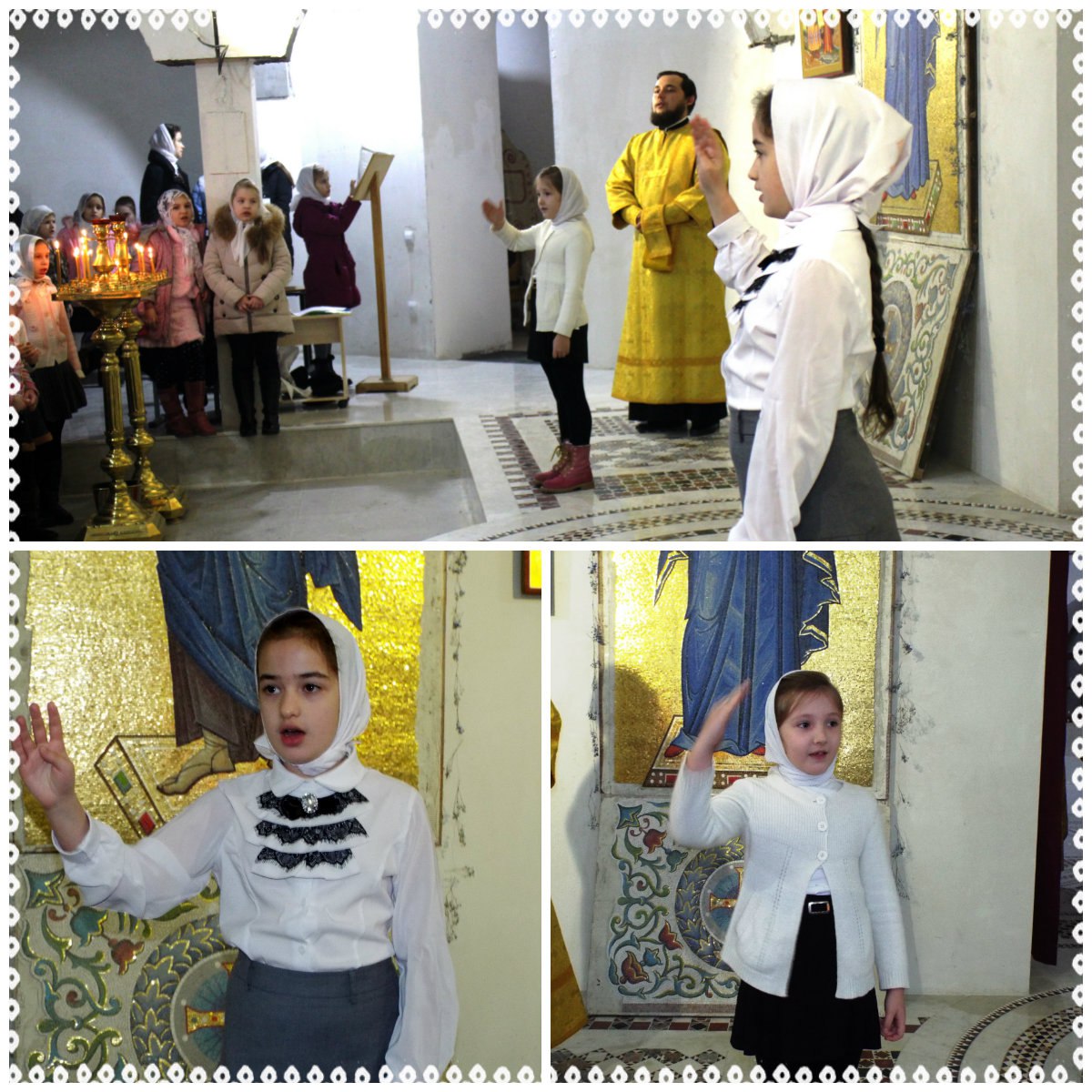 На Литургии ученики сами читали Часы, последование ко Причастию, благодарственные молитвы после причащения. Мальчики помогали в алтаре, девочки следили за подсвечниками.