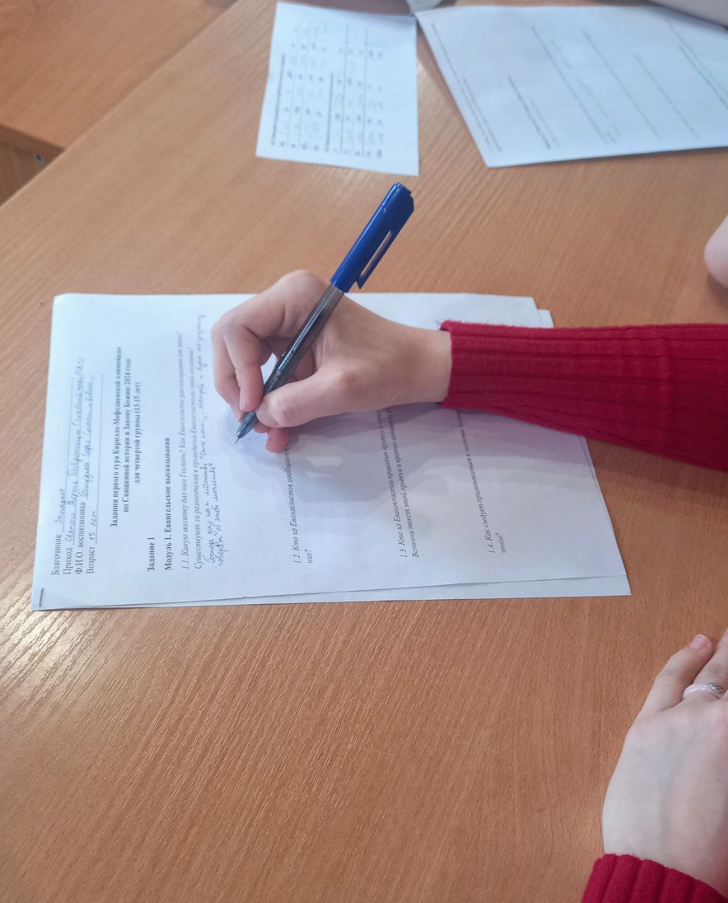 Воспитанники нашей воскресной школы приняли участие в приходском туре Кирилло-Мефодиевской олимпиады по Священной истории и Закону Божиему. Каждый год интеллектуальные состязания объединяют ребят из воскресных школ Донской митрополии в возрасте от 7 до 15 лет на протяжении четырех этапов: приходского, благочиннического, епархиального и митрополичьего. Тема олимпиады в 2024 году - наши пути ко Христу. Первый тур включал задания на понимание евангельских сюжетов, нравственных смыслов известных литературных произведений, основ церковнославянского языка. По случаю Года семьи в России одно из заданий было посвящено теме «святые семьи».
