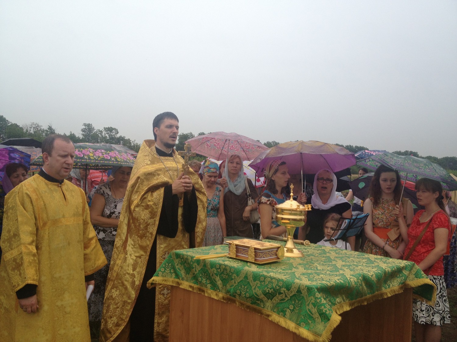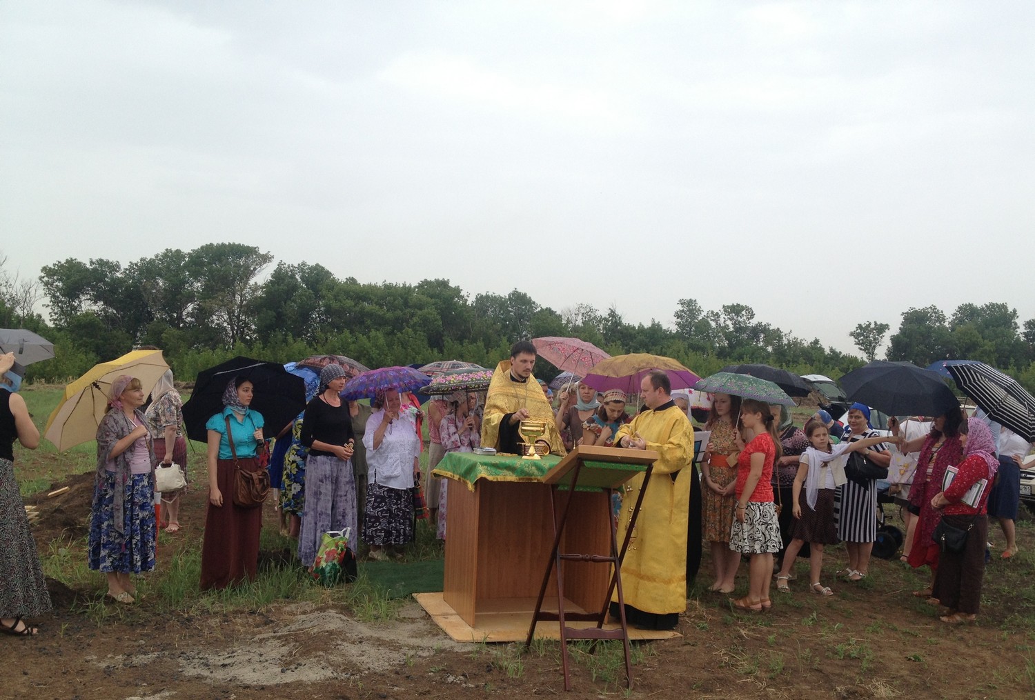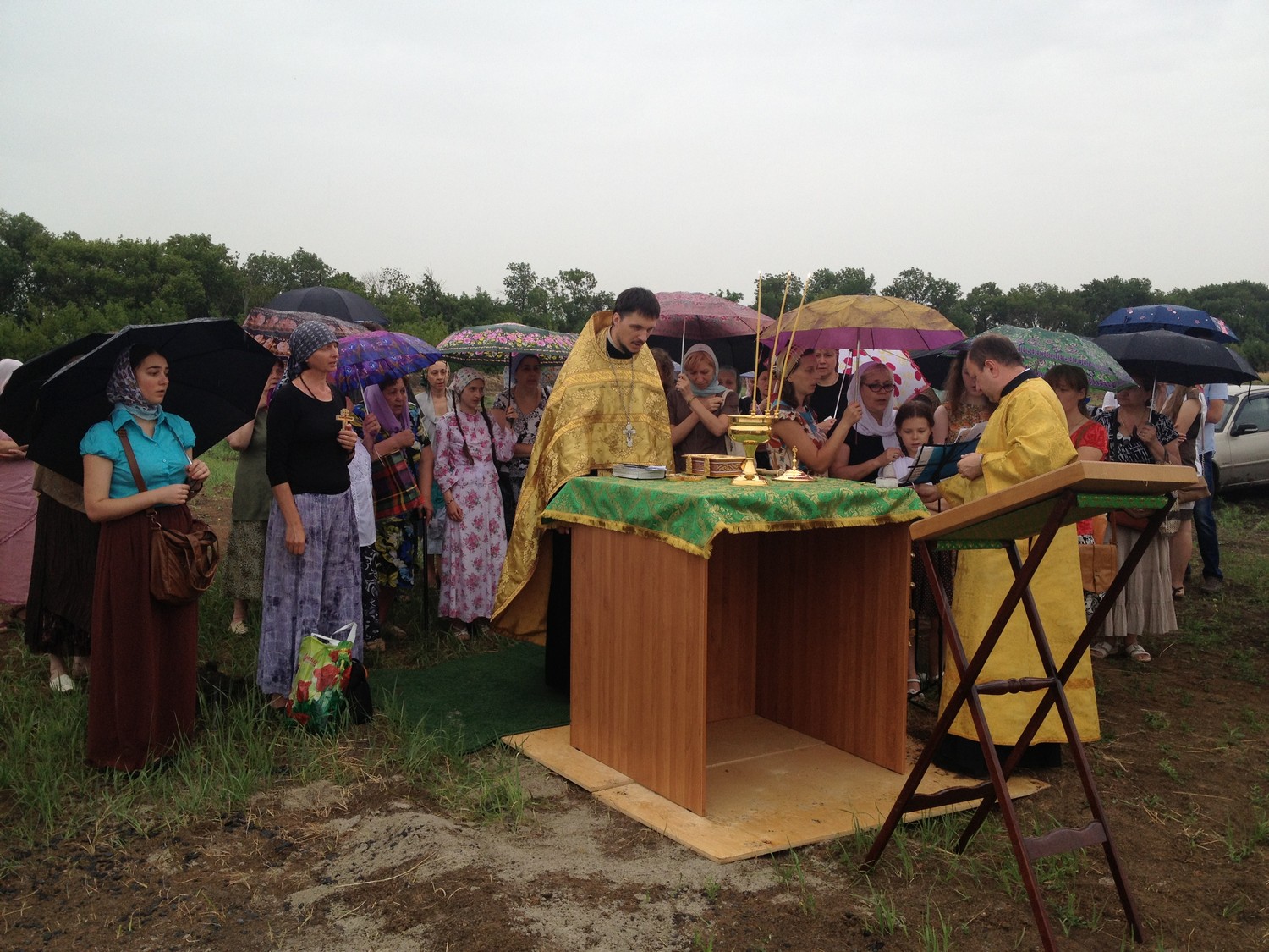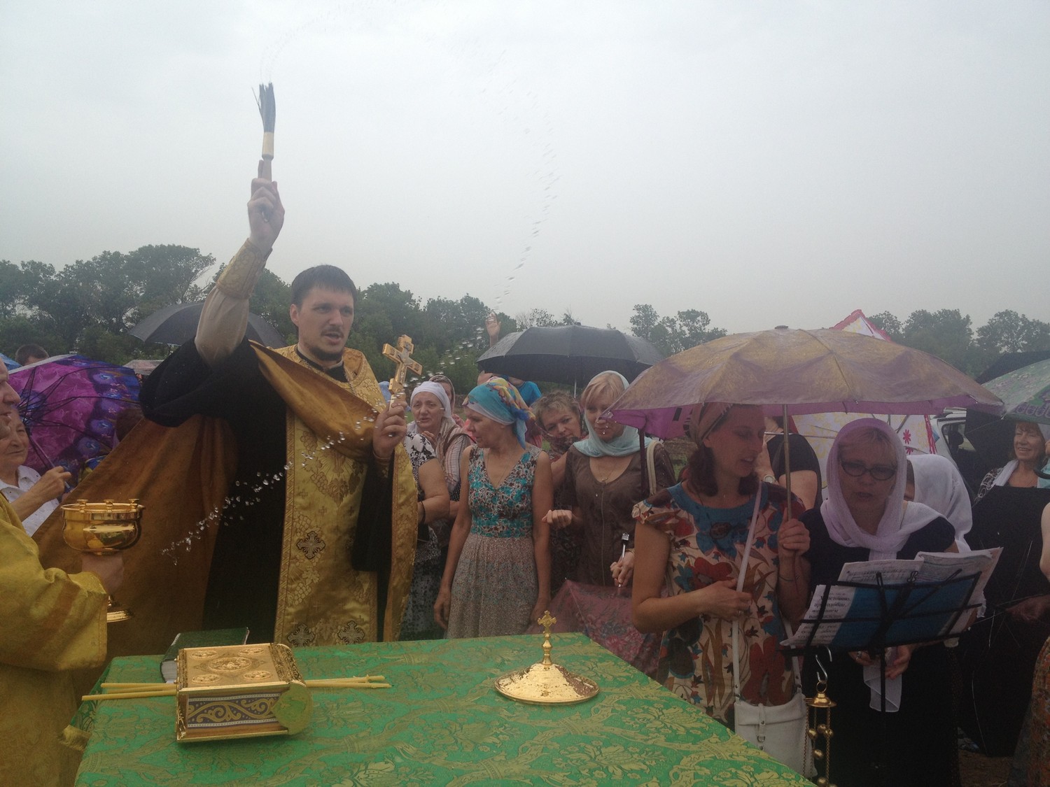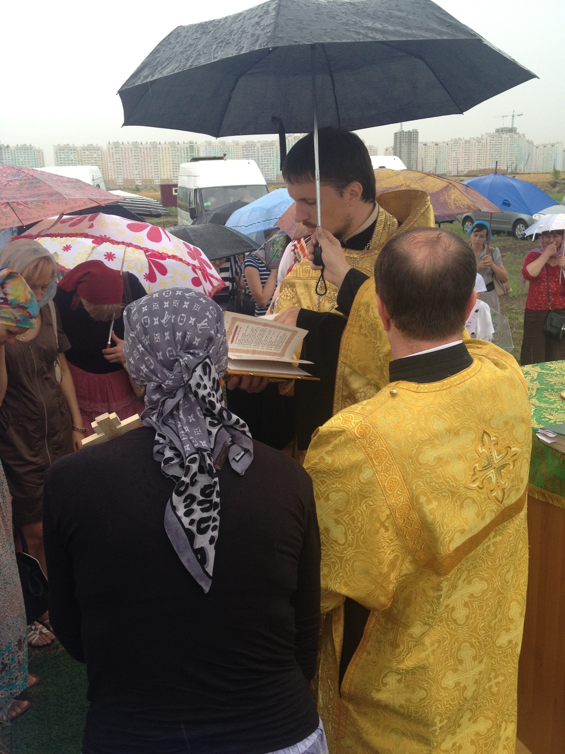 После окончания литургии все молящиеся отправились на место строительства храма преподобного Сергия Радонежского в Левенцовский микрорайон для совершения водосвятного молебна, впервые проводящегося на территории строящегося храма. После совершения молебна и освящения воды всех ждало вкусное угощение. Несмотря на дождливую погоду для молитвы собралось множество людей. Участники молодежного клуба "Благо-Дать" пели на Божественной Литургии и молебне вместе с мужским хором нашего прихода. У настоятеля прихода преподобного Сергия Радонежского взяли интервью журналисты телестудии "Дон Православный".
