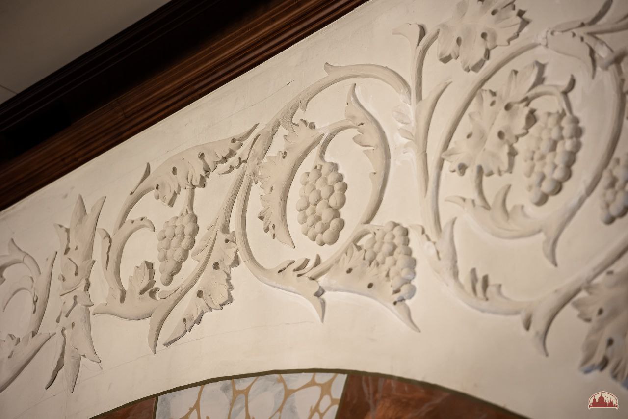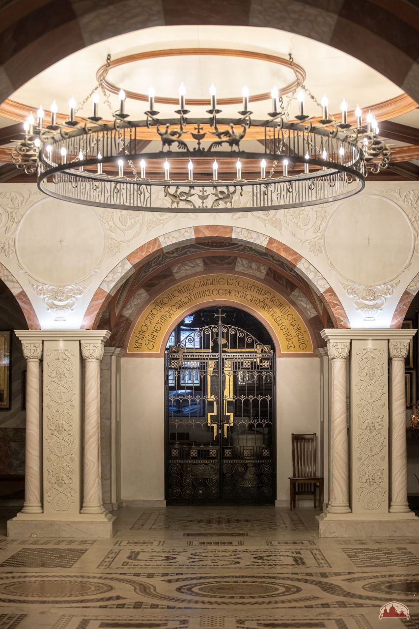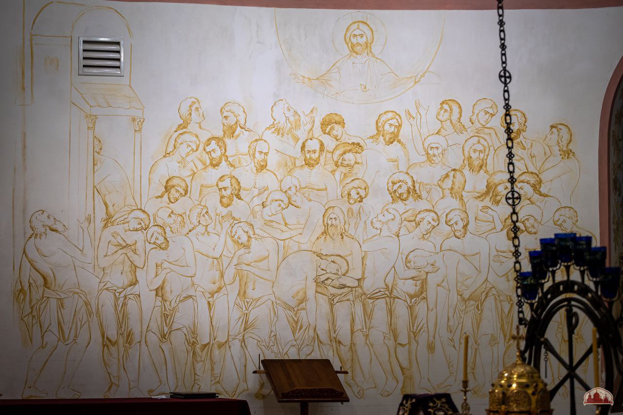 На арках центральной части храма завершены работы по созданию гипсовых панно с изображением виноградной лозы — символа Христа и Его Церкви. Продолжается роспись спарушенных сегментов галереи, создаются надписи, напоминающие нам о подвиге воинов молниеносного легиона.