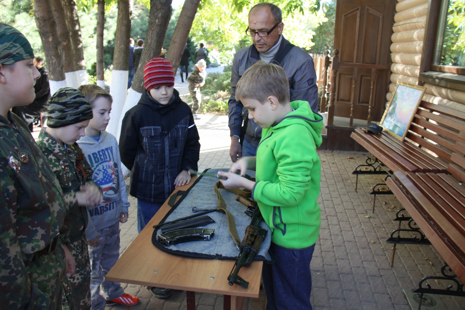 В этот день под руководством наставников-преподавателей прошли занятия по стрельбе из страйкбольного оружия и из лука. Воспитанники преодолевали полосу препятствий, изучали элементы военно-тактической подготовке, занимались разборкой сборкой автомата, изучали способы обращения со средствами химической защиты и переносными радиостанциями, знакомились с упражнениями по обнаружению скрытых на местности предметов с использованием технических средств и личного оружия. При проведении урока активную помощь оказывали родители юных защитников Отечества.