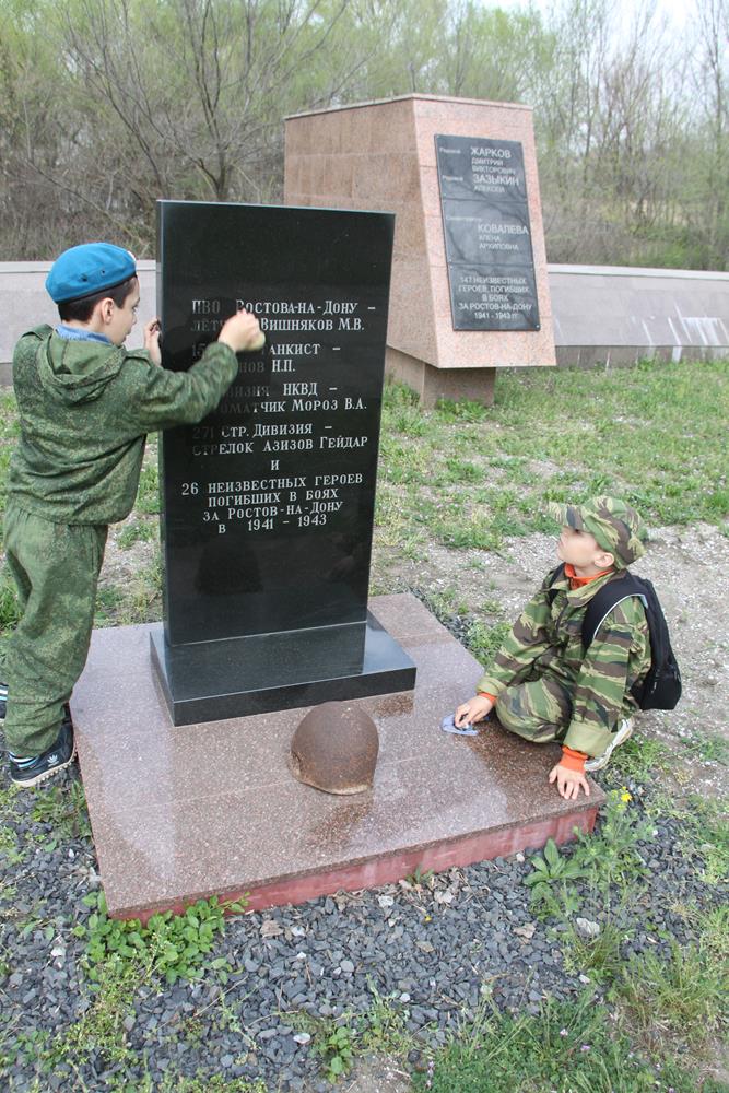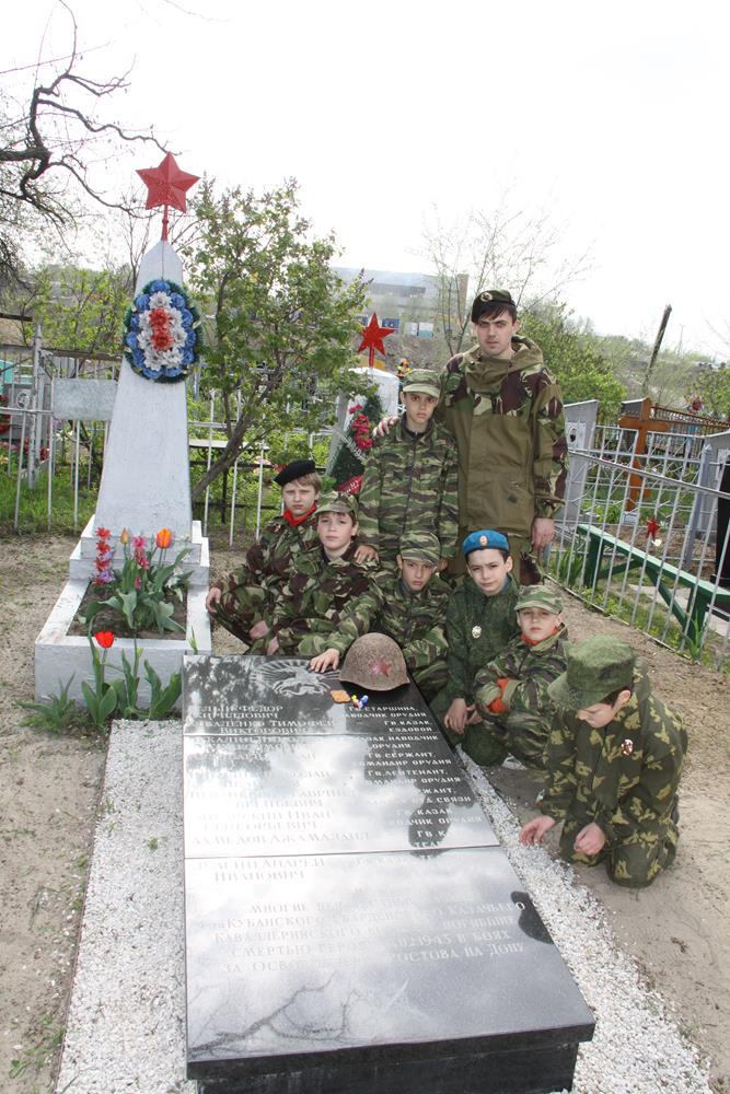 Могила героев-казаков батареи Пескова, освобождавших наш город от немецко-фашистских захватчиков в феврале 1943 года и воинский мемориал расположенный в Кумжинской роще. Также в этот день воспитанники под руководством преподавателей-наставников Сомова Дениса Викторовича и Чуцкова Виктора Ивановича приняли участие в военно-полевом выходе на берег реки Дон. В ходе проведения которого проводились занятия по начальной военной подготовке для службы в Российской Армии. Во время перерыва все участники мероприятия отведали вкусной солдатской каши и ароматный солдатский чай. По результатам занятия был отмечен благодарностью самый младший из участников военно-полевого выхода – Орешин Илья, который показал высокое мастерство по стрельбе из страйкбольных автомата и винтовки, а также в стрельбе из лука.