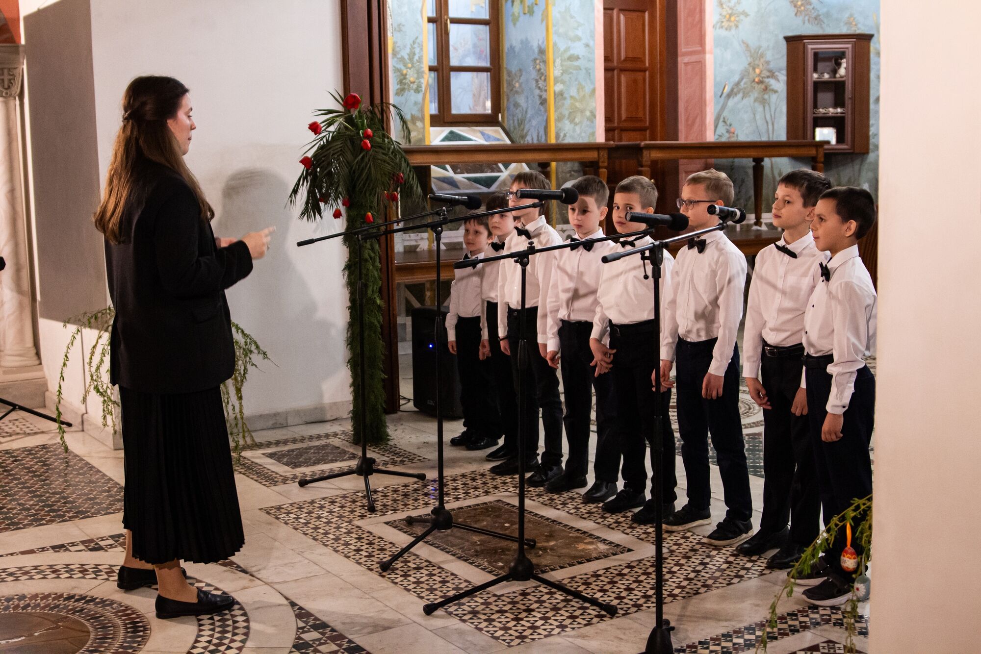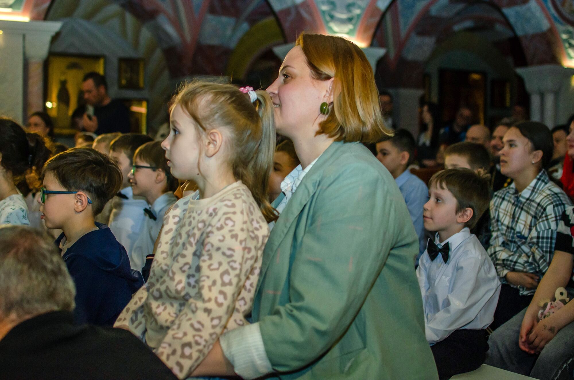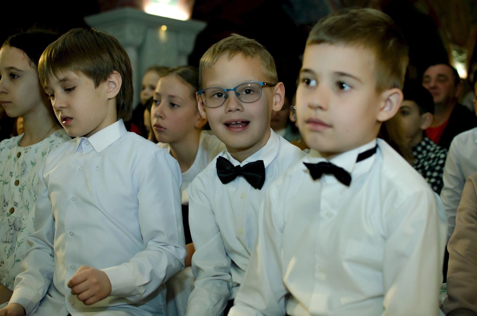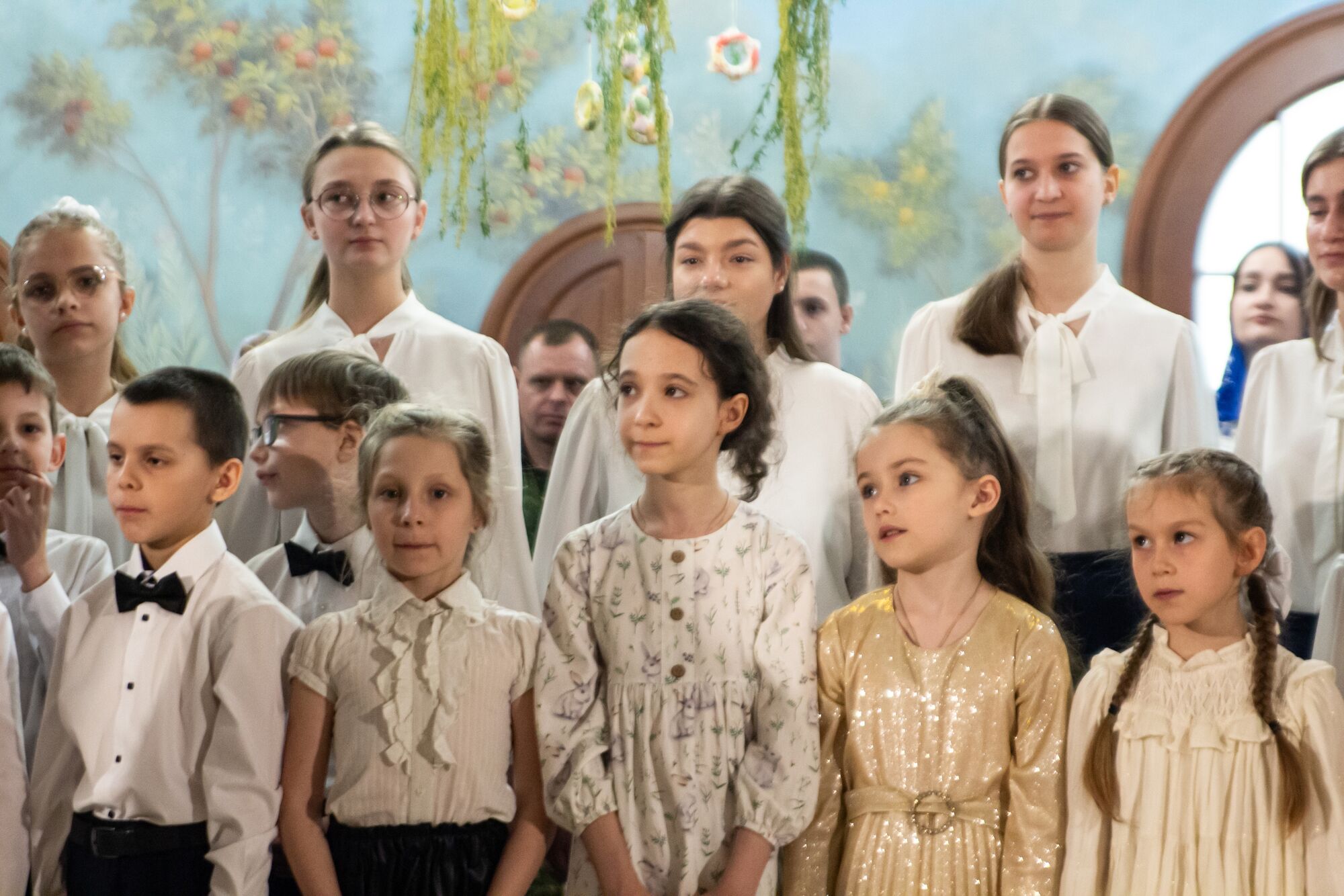 Особая атмосфера царила благодаря ведущим — ими стали сами воспитанники и родители. Их голоса звучали за кадром, а на экране в это время сменяли друг друга семейные фотографии «Пасха в нашей семье».