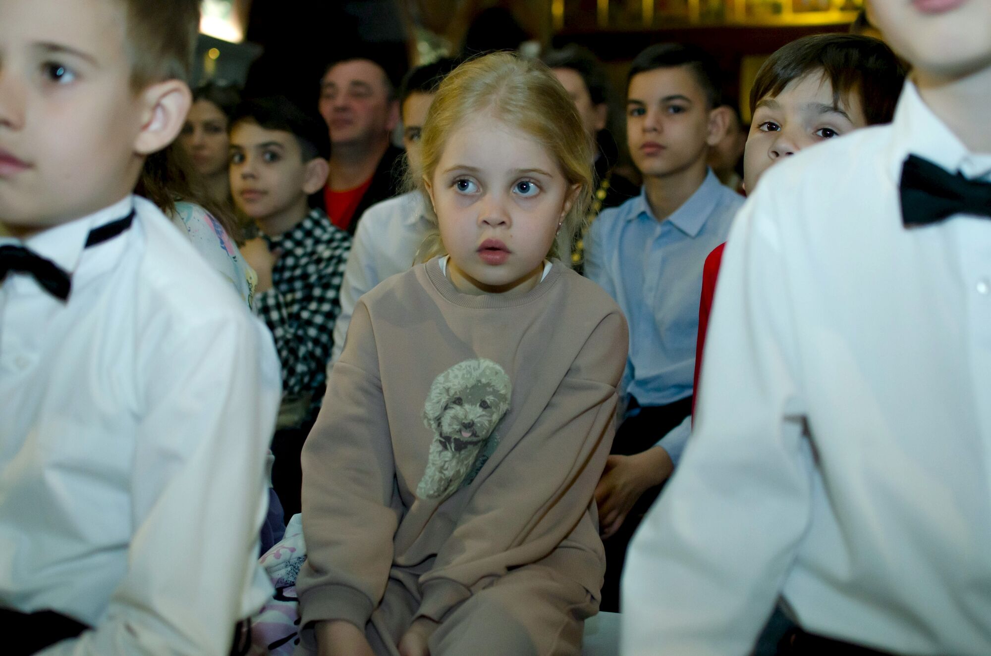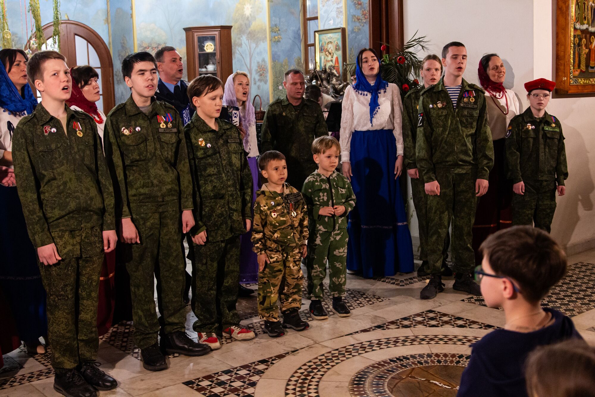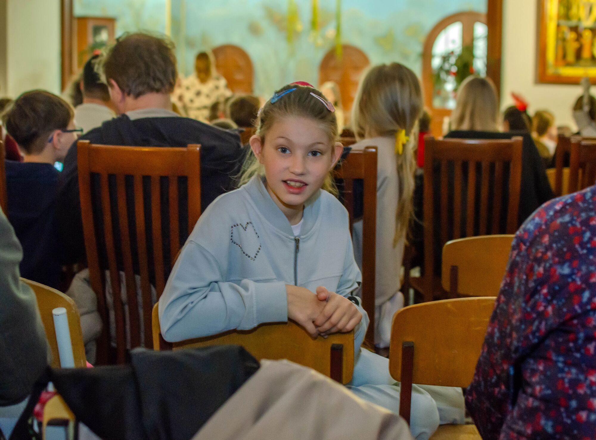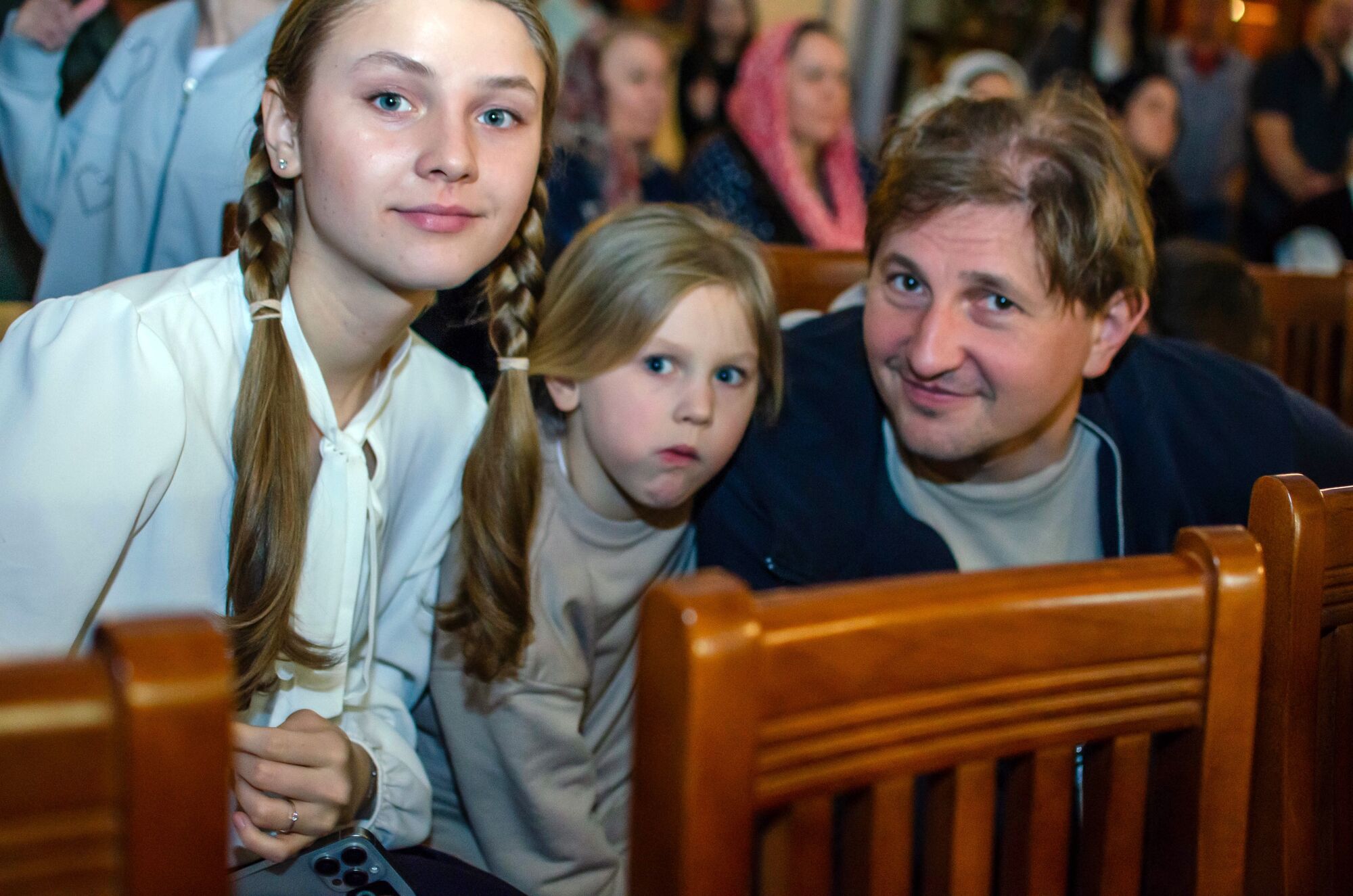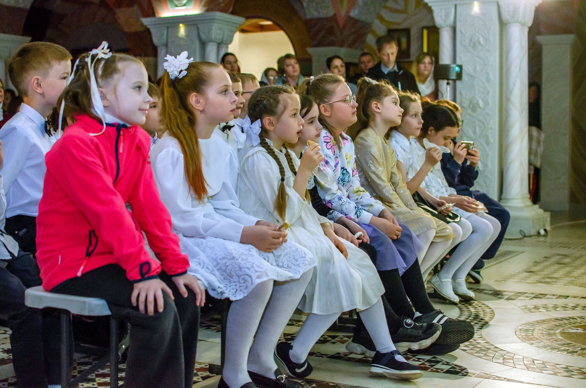 Особая атмосфера царила благодаря ведущим — ими стали сами воспитанники и родители. Их голоса звучали за кадром, а на экране в это время сменяли друг друга семейные фотографии «Пасха в нашей семье».