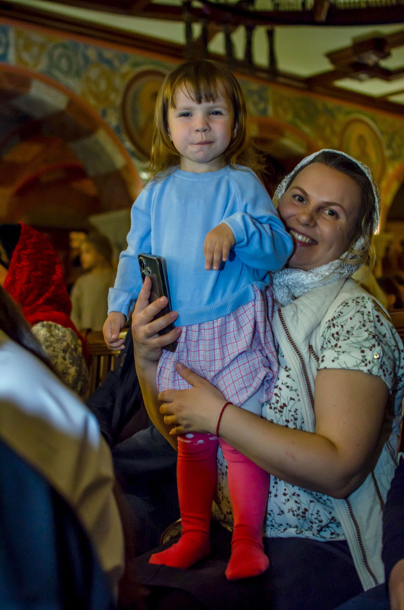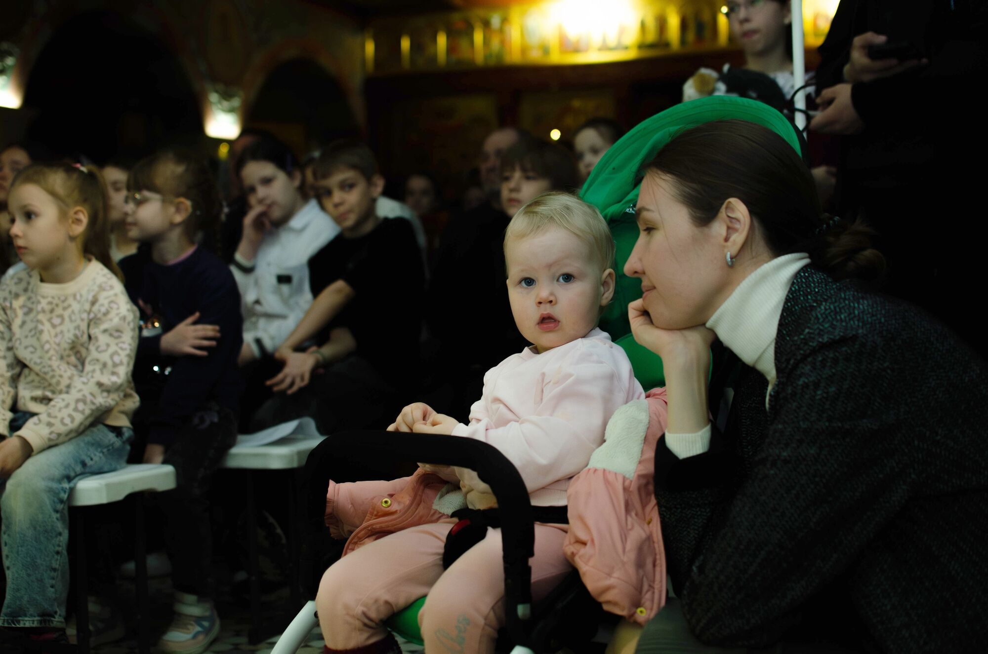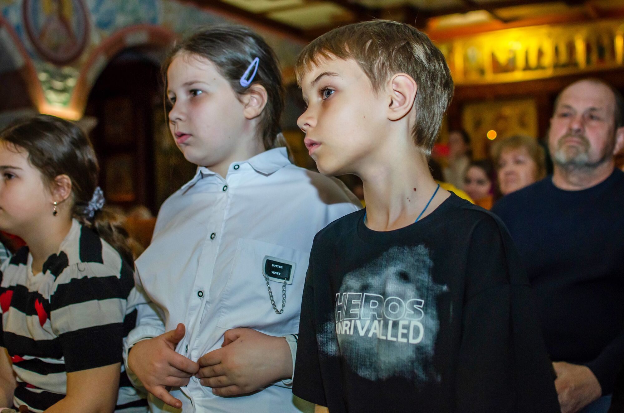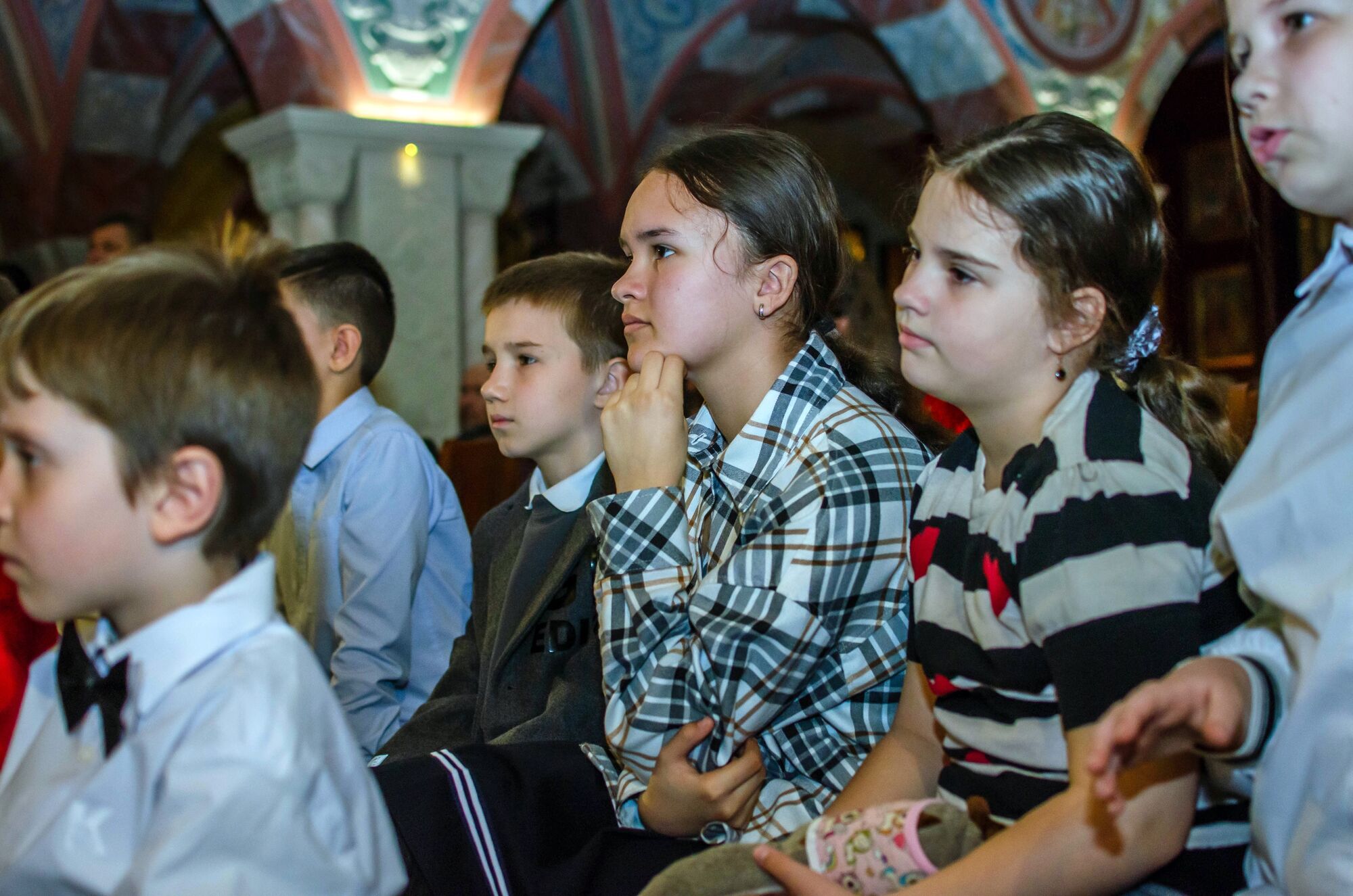 Особая атмосфера царила благодаря ведущим — ими стали сами воспитанники и родители. Их голоса звучали за кадром, а на экране в это время сменяли друг друга семейные фотографии «Пасха в нашей семье».