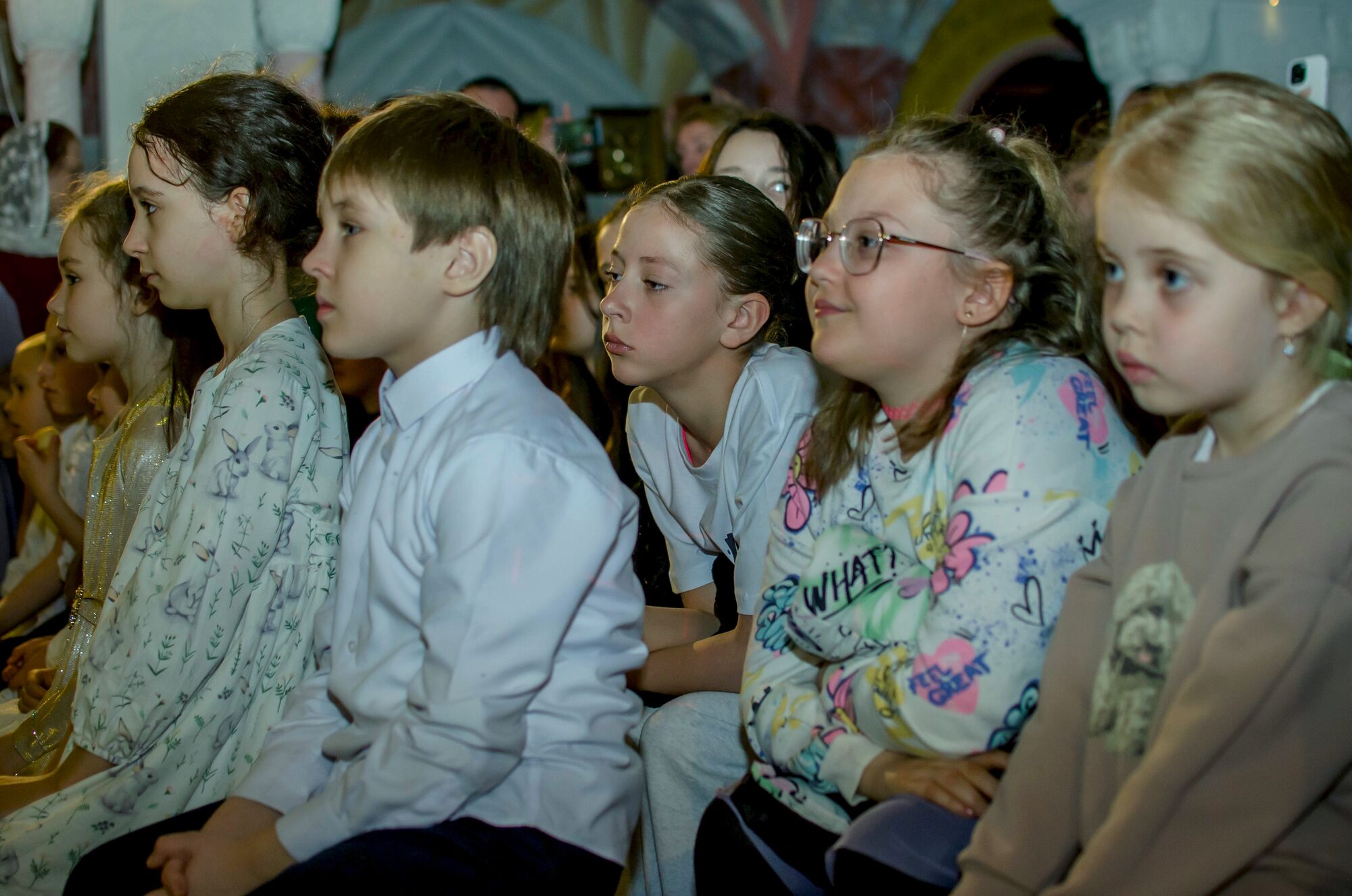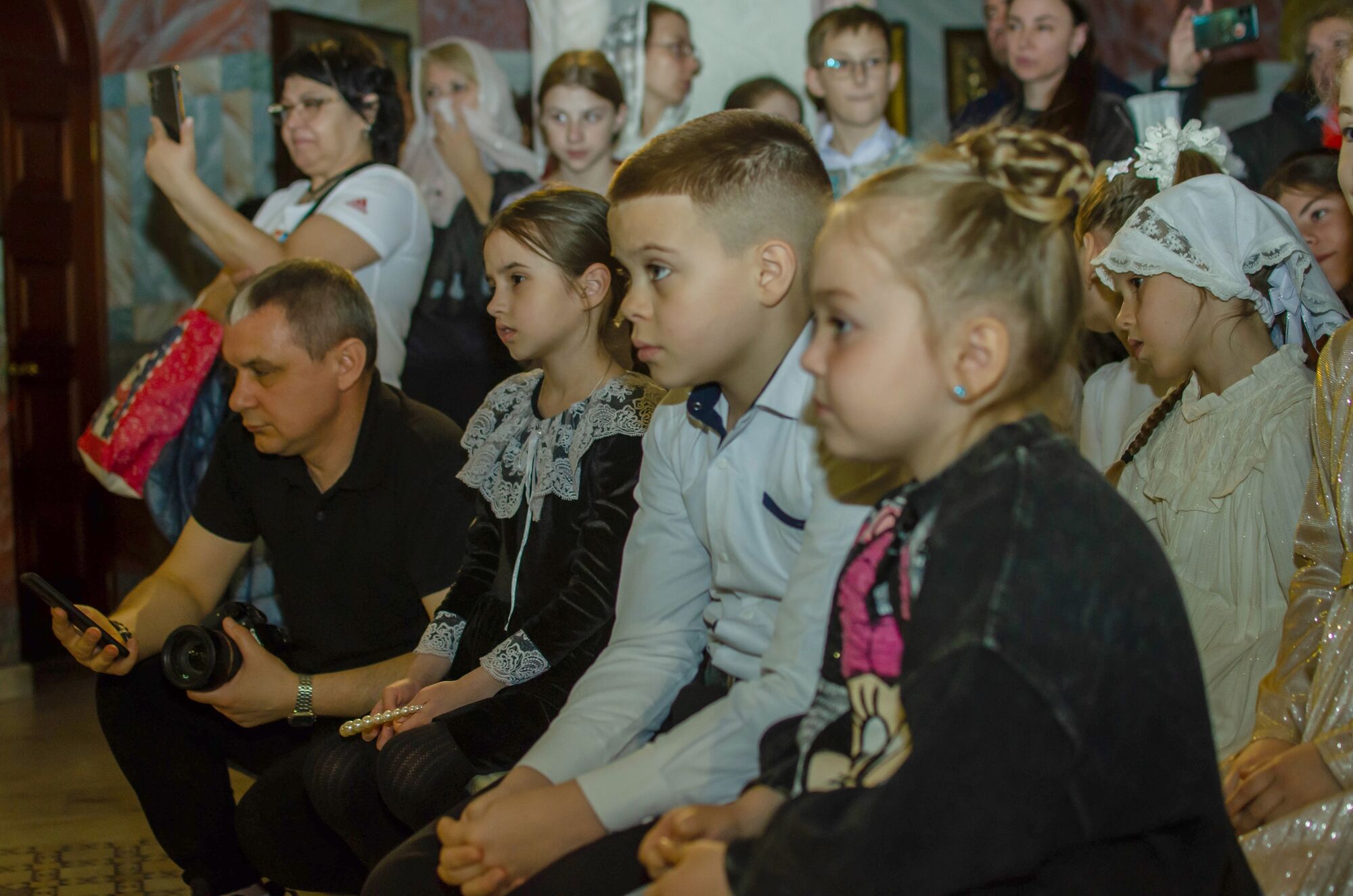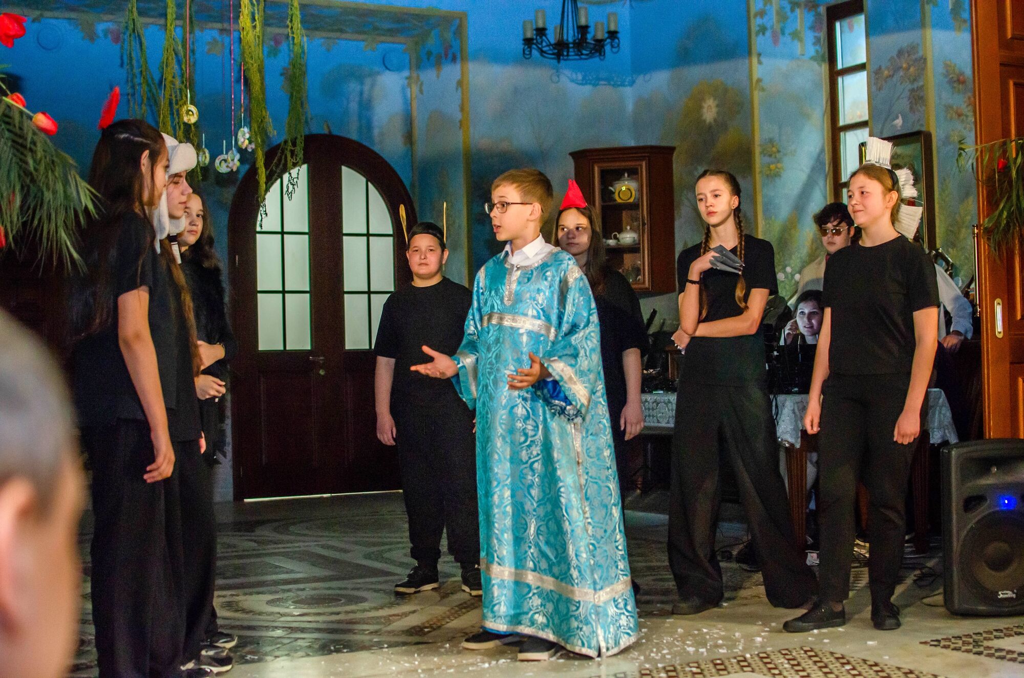 Девичий церковный хор «Русь» перенёс зрителей в события самой главной ночи в году, проникновенно исполнив стихиру Пасхи на Крестном ходе и другие пасхальные песнопения. Со словами пасхального приветствия и поздравления обратился протоиерей Георгий Жилин. А затем на сцену вышли самые юные участники — воспитанники дошкольного центра «Родничок», которые показали трогательную театральную постановку. Продолжили концертную программу церковный хор мальчиков, детский хор «Радуга», казачий семейный ансамбль «Тихий Дон» приходского Духовно-патриотического центра. Финал праздника украсила постановка театра «Преображение».