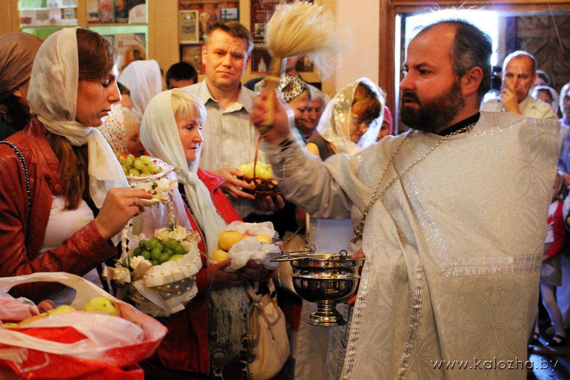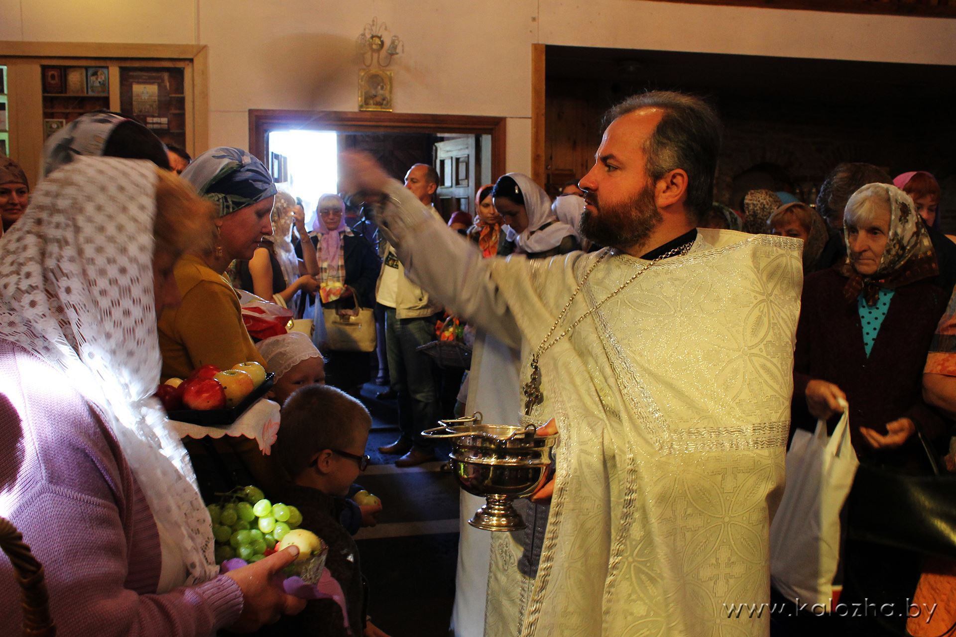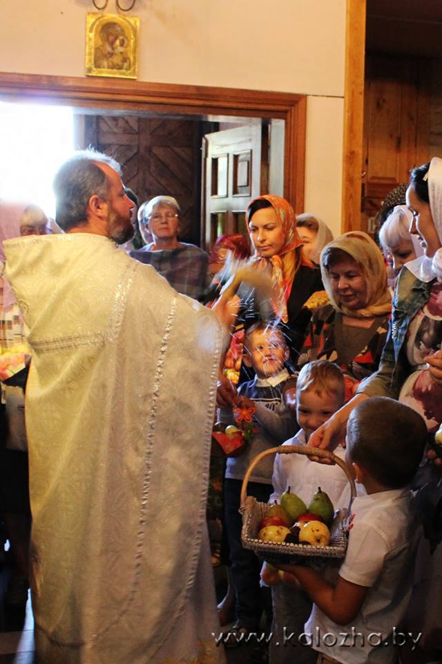 19 августа православные верующие встретили праздник Преображения Господня. Вот уже две тысячи лет христиане вспоминают чудо, которое произошло на горе Фавор, когда ученики Христа Пётр, Иаков и Иоанн стали свидетелями Преображения Спасителя. По народной традиции в этот день освящаются фрукты и овощи нового урожая. После праздничной литургии, которую возглавил настоятель нашего прихода протоиерей Валерий Волощук, гостивший в это время в Свято-Борисо-Глебском (Коложском) храме в Беларуси, настоятель храма протоиерей Александр Болонников освятил плоды, принесенные верующими, что вызвало неподдельную радость у самых маленьких прихожан Коложской церкви.