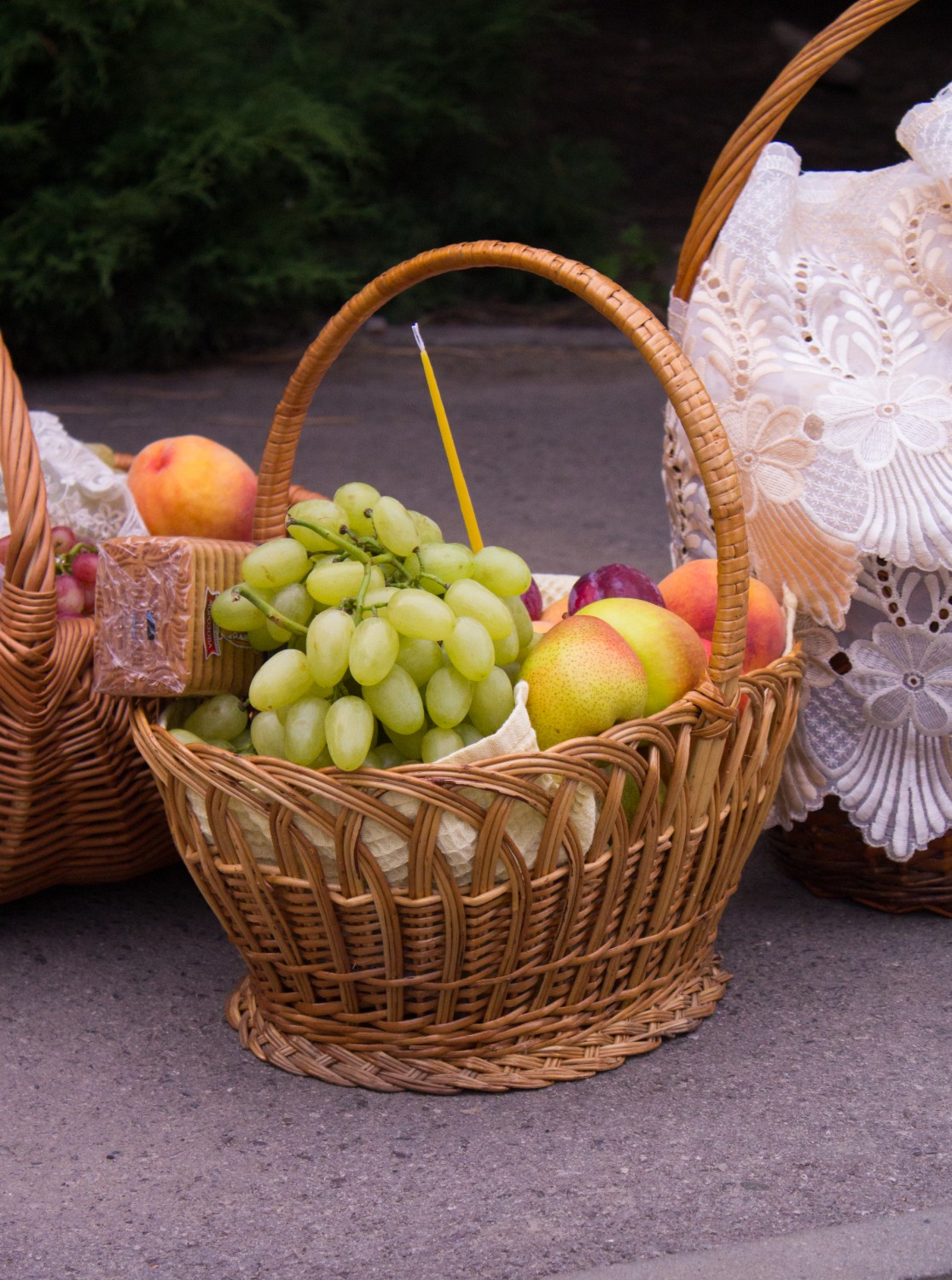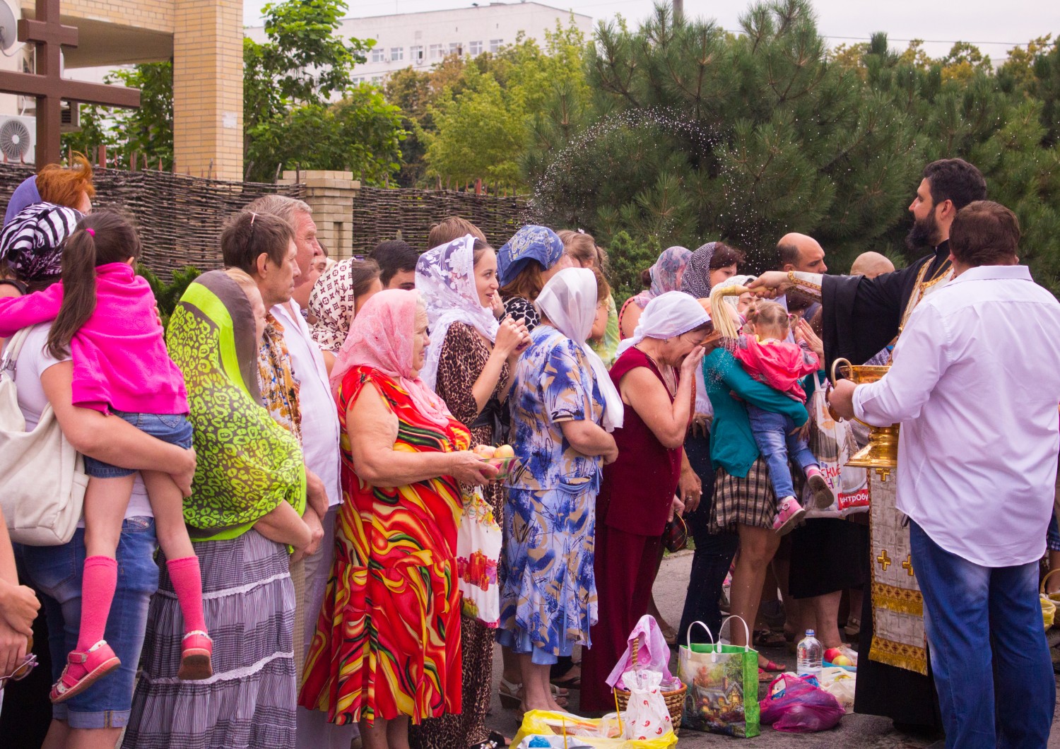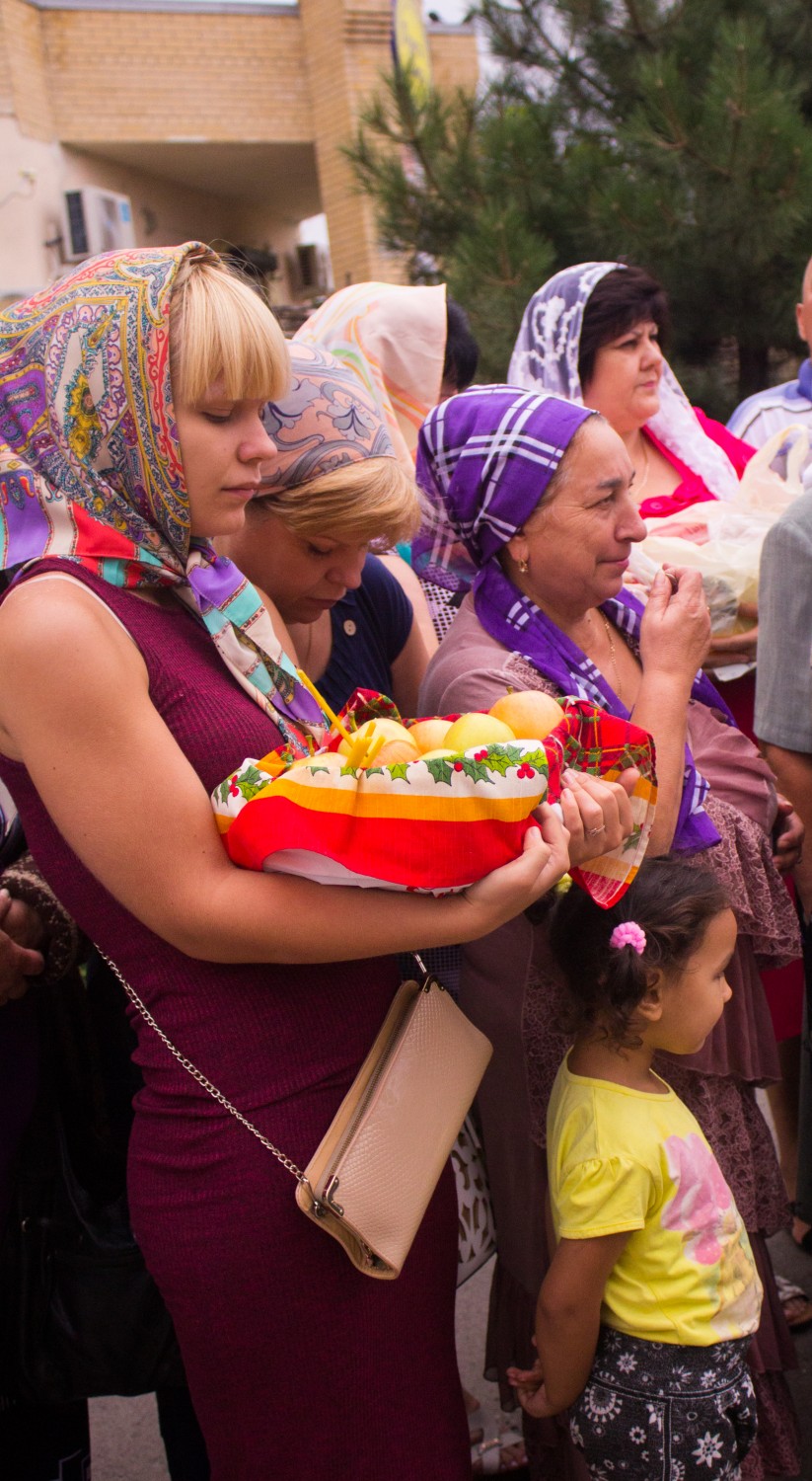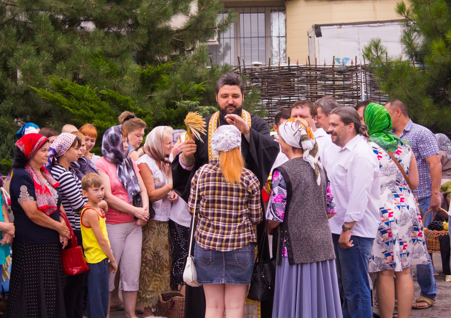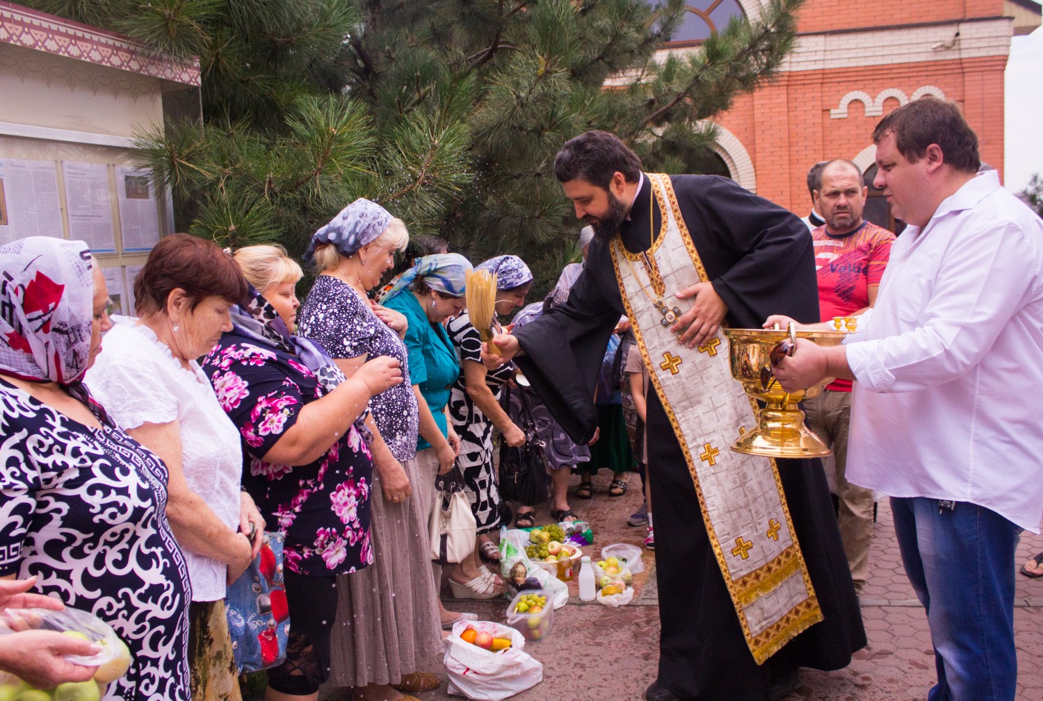 Согласно обычаю, в конце литургии в храмах освящают новый урожай, то есть дары Богу от благословленной им природы: яблоки, виноград и другие плоды.
