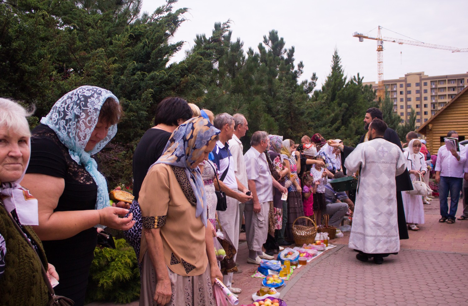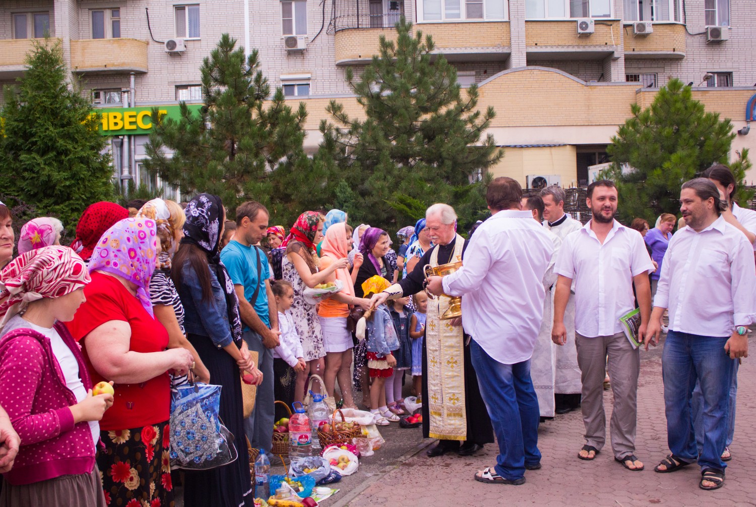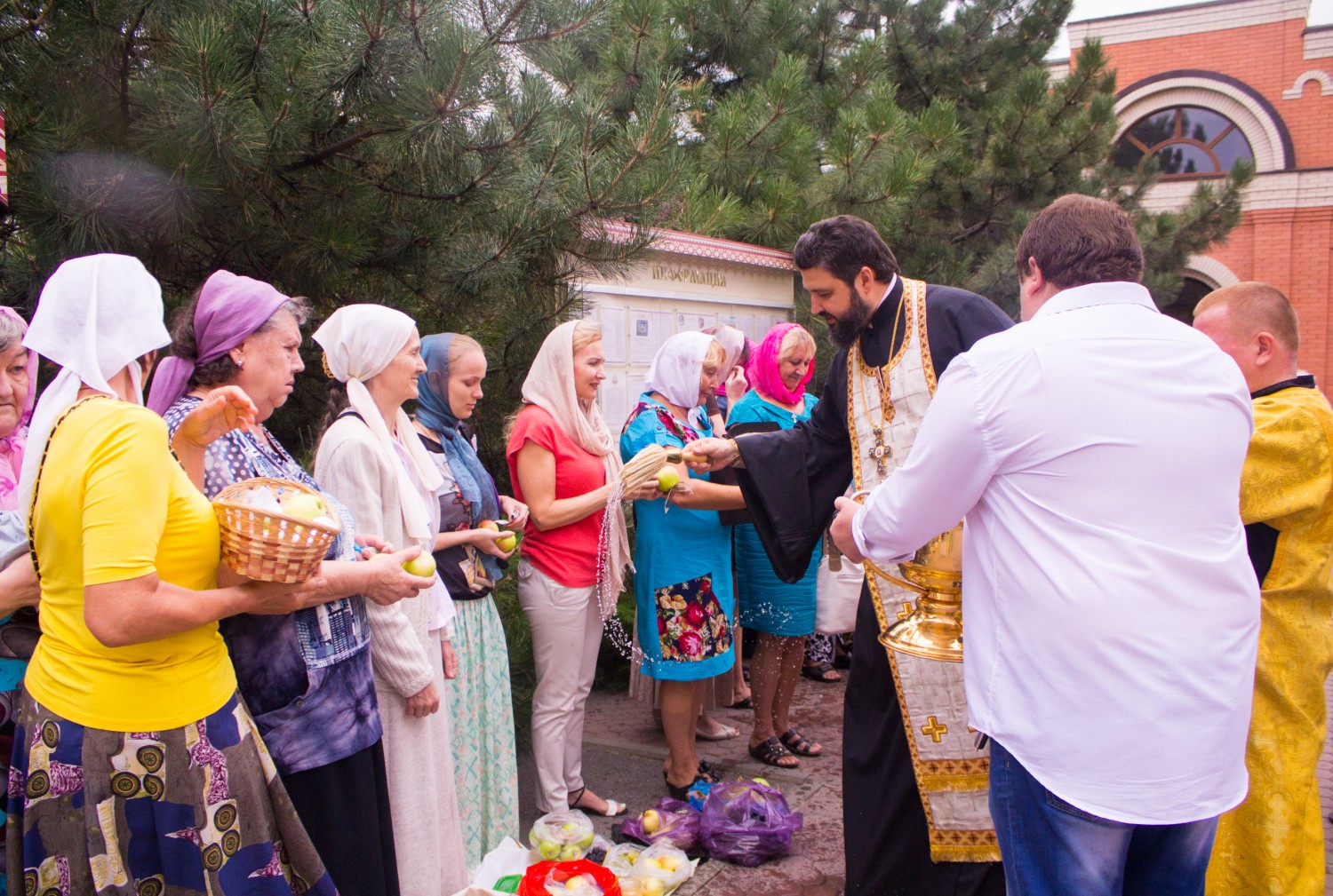 Приход Святого Георгия Победоносца торжественно встретил этот светлый праздник. Накануне вечером в малом храме Иоанна Воина совершили всенощное бдение. А утро началось с Божественной Литургии, которую возглавил настоятель прихода протоиерей Валерий Волощук в сослужении приходского духовенства. По традиции, по заамвонной молитве, состоялось освящение винограда, яблок и других плодов, которое продолжалось до позднего вечера.