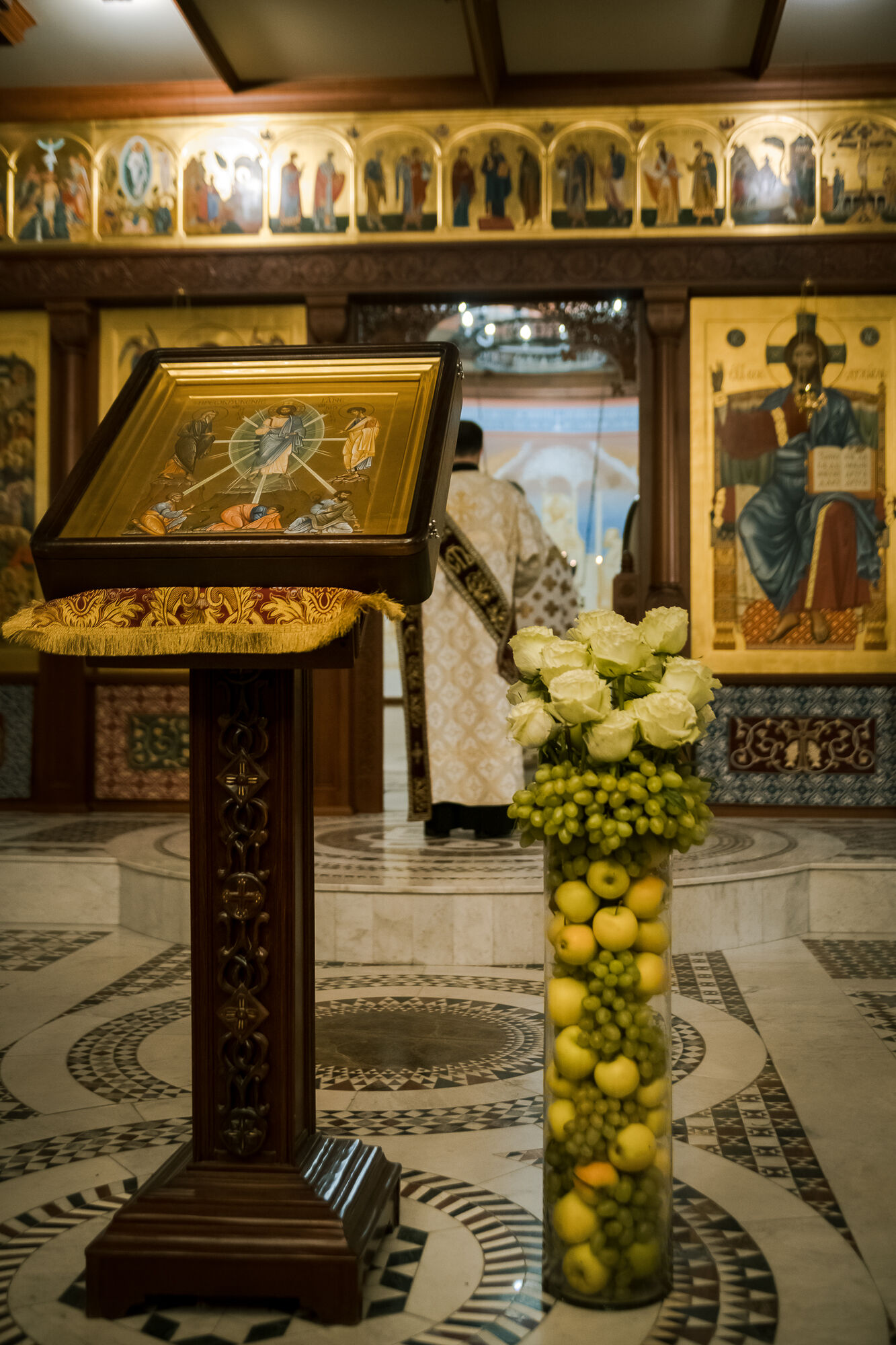 Перевод: Преобразился Ты на горе, Христе Боже, показав ученикам Твоим славу Твою, насколько это было для них возможно. Да воссияет и нам, грешным, свет Твой вечный, по молитвам Богородицы. Податель света, слава Тебе!