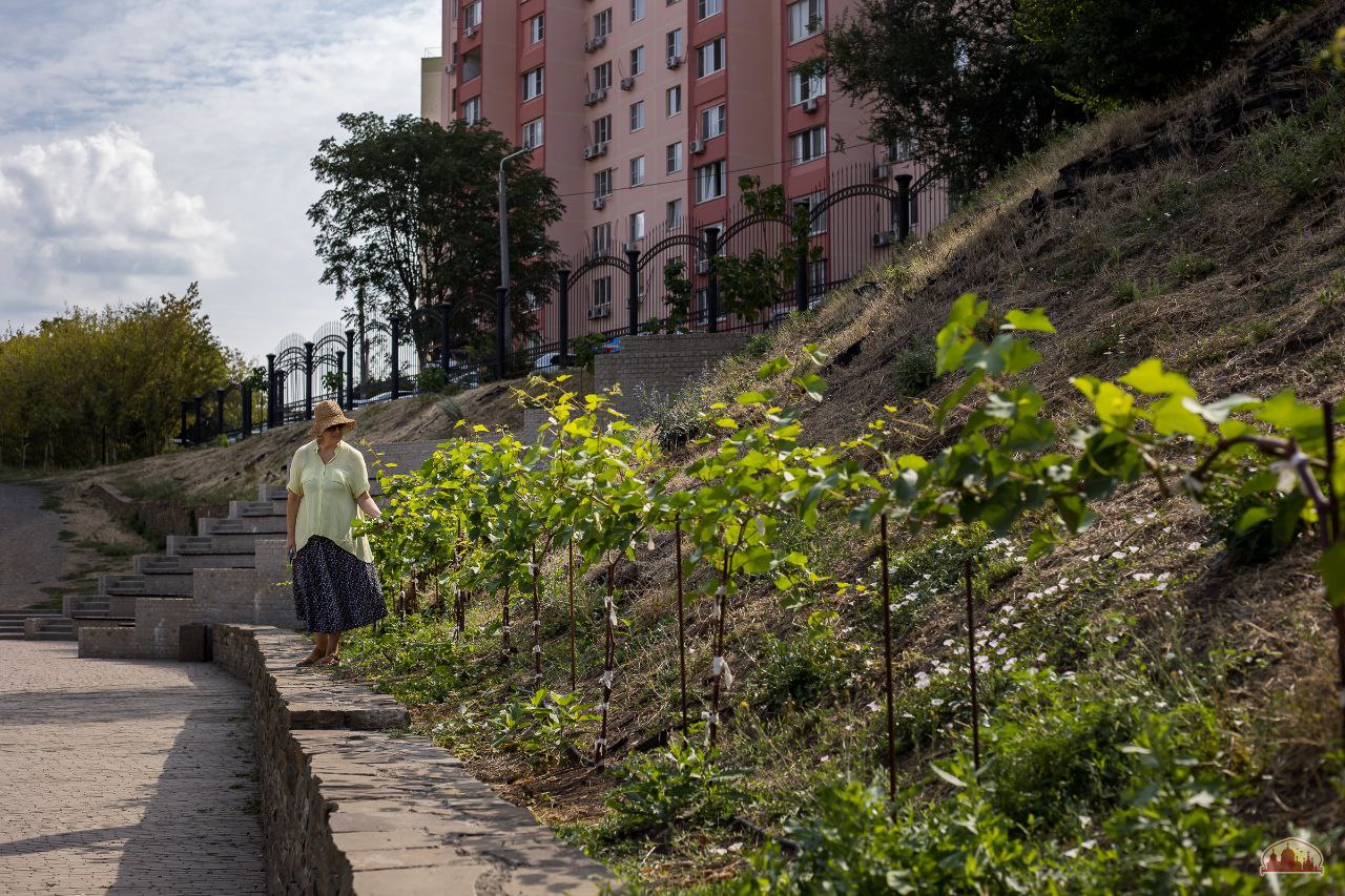 В будущем лозочки "побегут" по перголе и дадут благодатную прохладу в приходском Георгиевском парке.