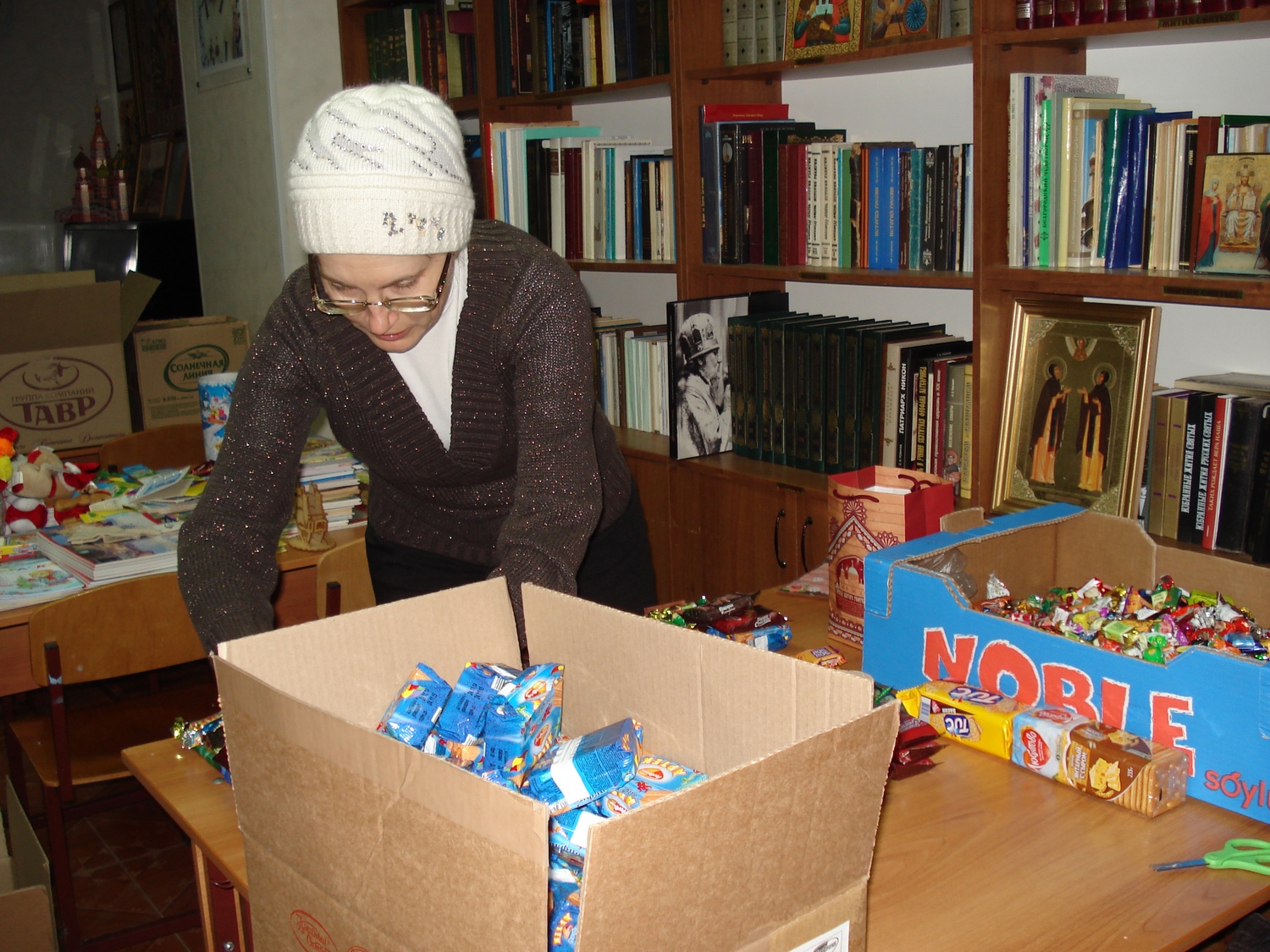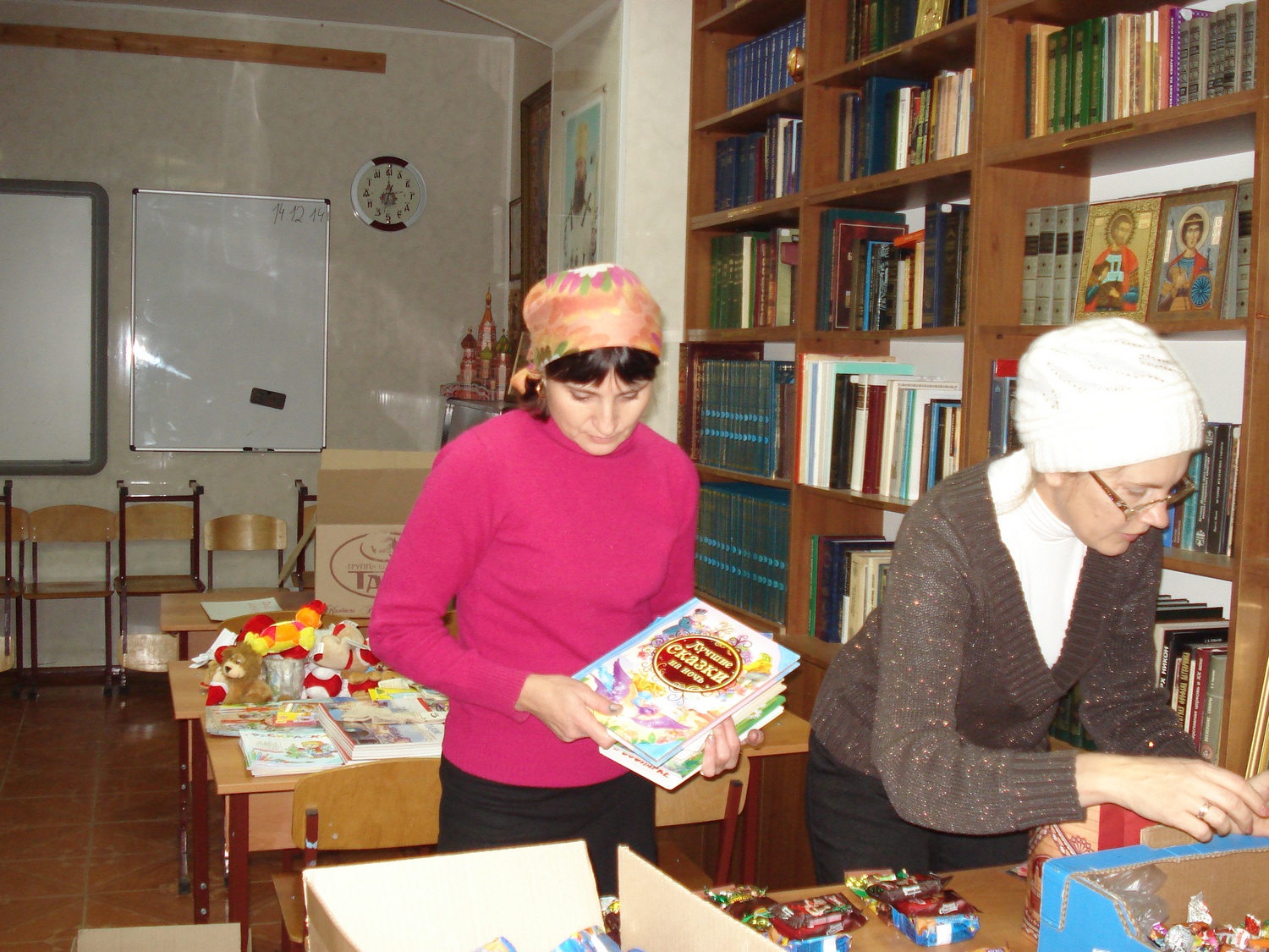 Сёстры милосердия нашего прихода молятся за то, что бы подарки доставили в срок и по назначению.