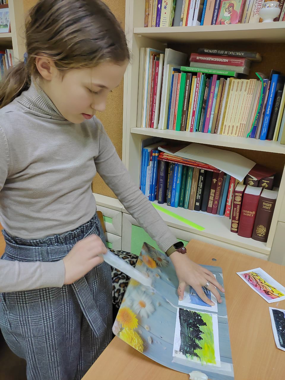 Он был посвящён изготовлению поздравительных открыток. Работа оказалась непростой, интересной, многоплановой. Все ребята большие молодцы! С поставленной задачей справлялись творчески, с вдохновением! В итоге у каждого участника на руках оказались 4 неповторимые авторские открытки! Осталось только добавить поздравлений и пожеланий к зимним праздникам! И каждая открытка найдет своего адресата!