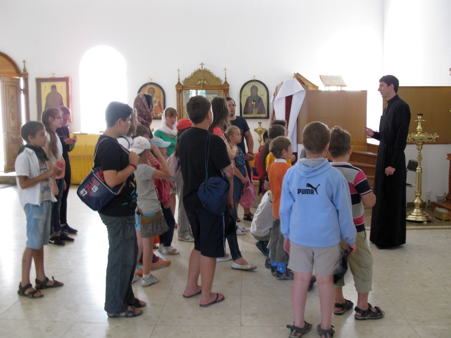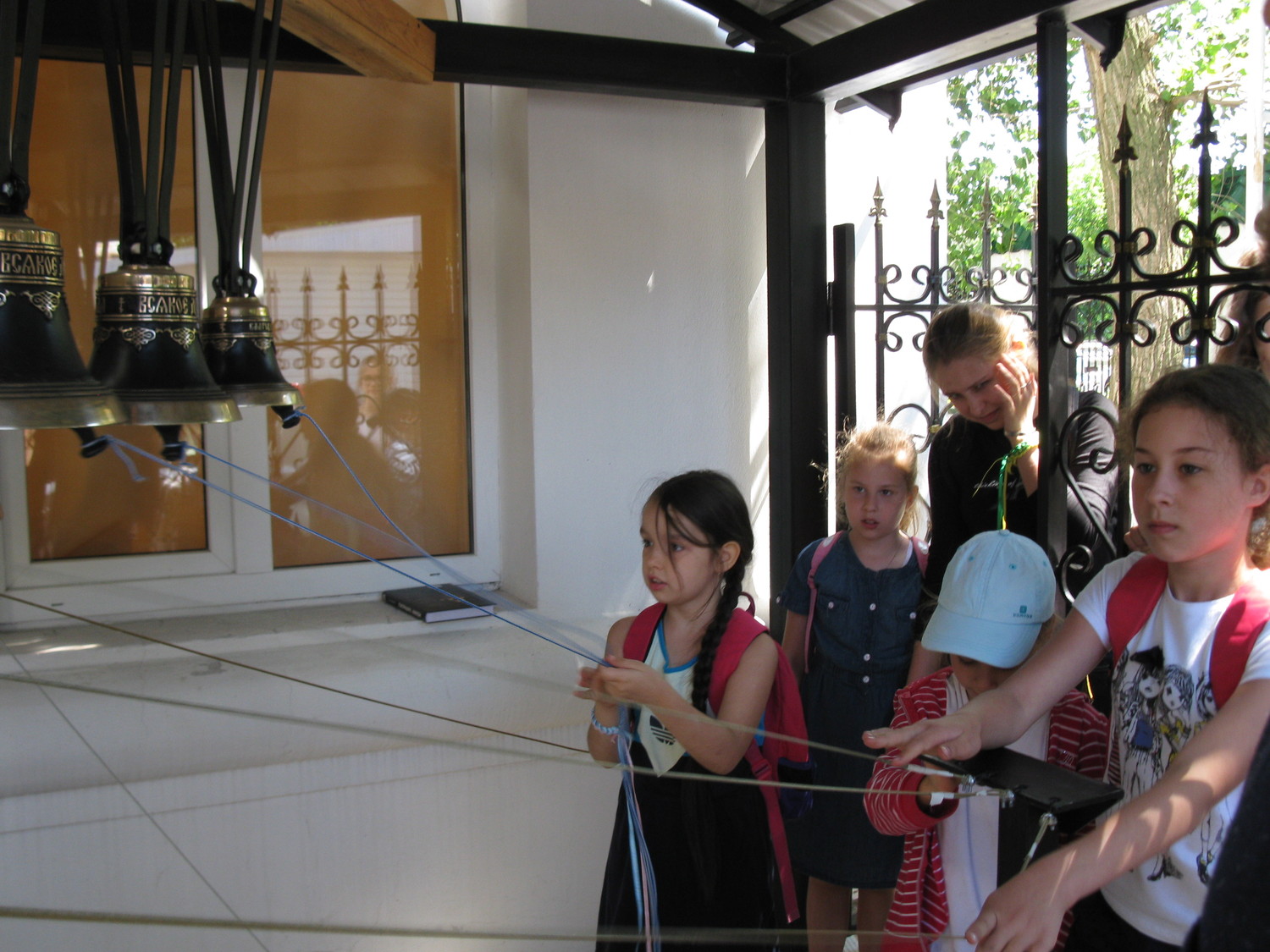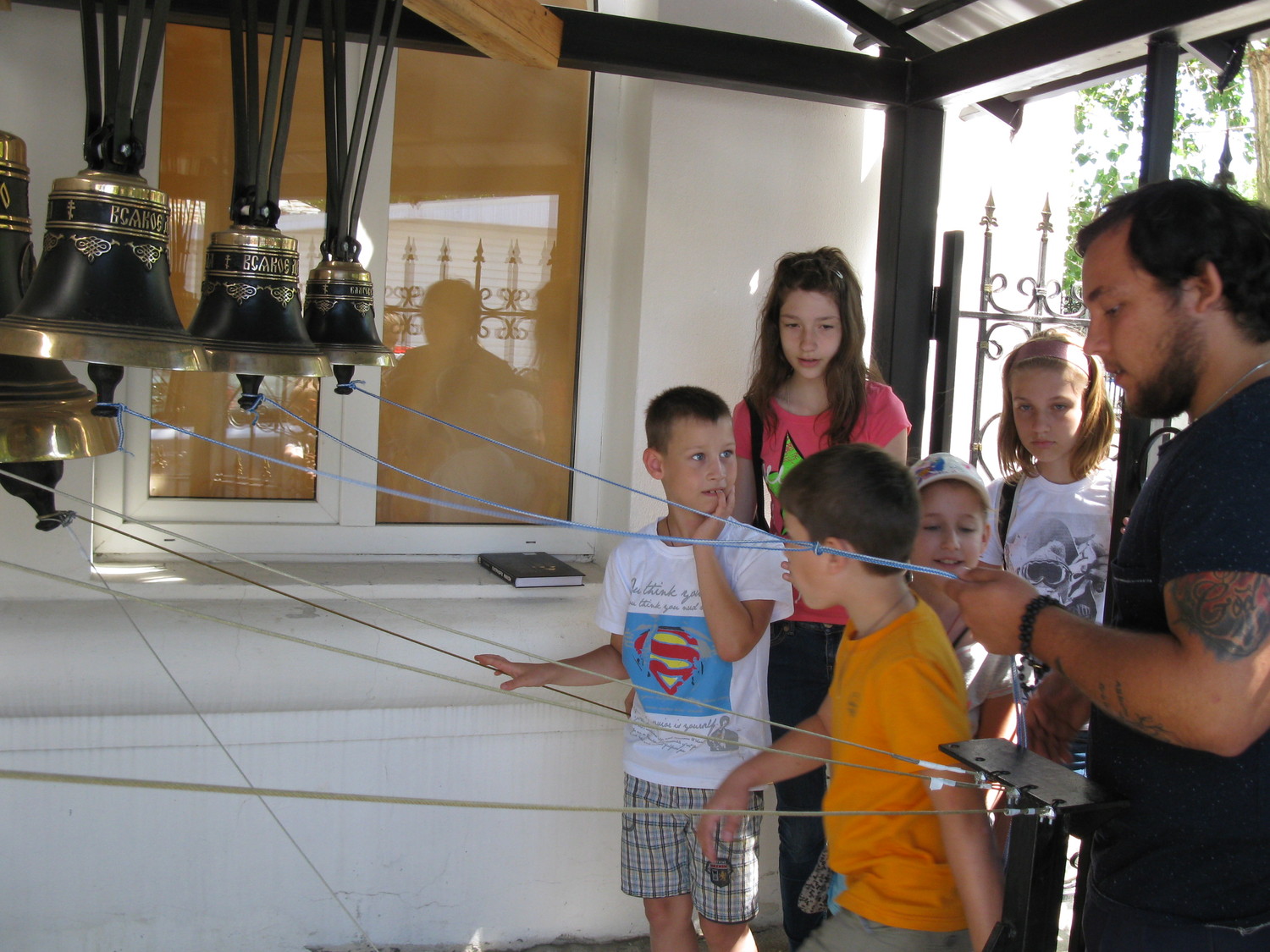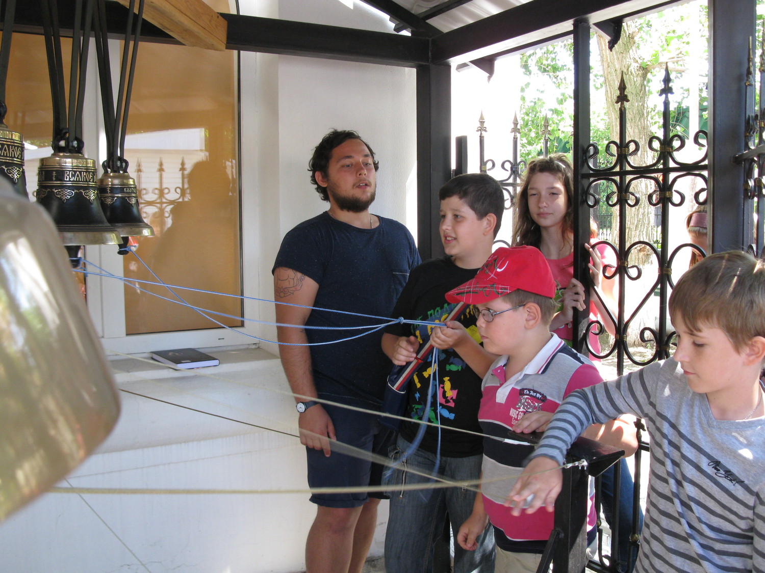 После утреннего молитвенного правила и бодрой спортивной зарядки, проведённой Сергеем - представителем Духовно-патриотического центра Святого Георгия Победоносца, ребята отправились в храм Всех Святых в земле Российской просиявших, где нас гостеприимно приняли и рассказали о святых угодниках Божиих и о том, как важно хранить православную веру. Затем мы приложились к святыням храма, позвонили в колокола и получили замечательные подарки.