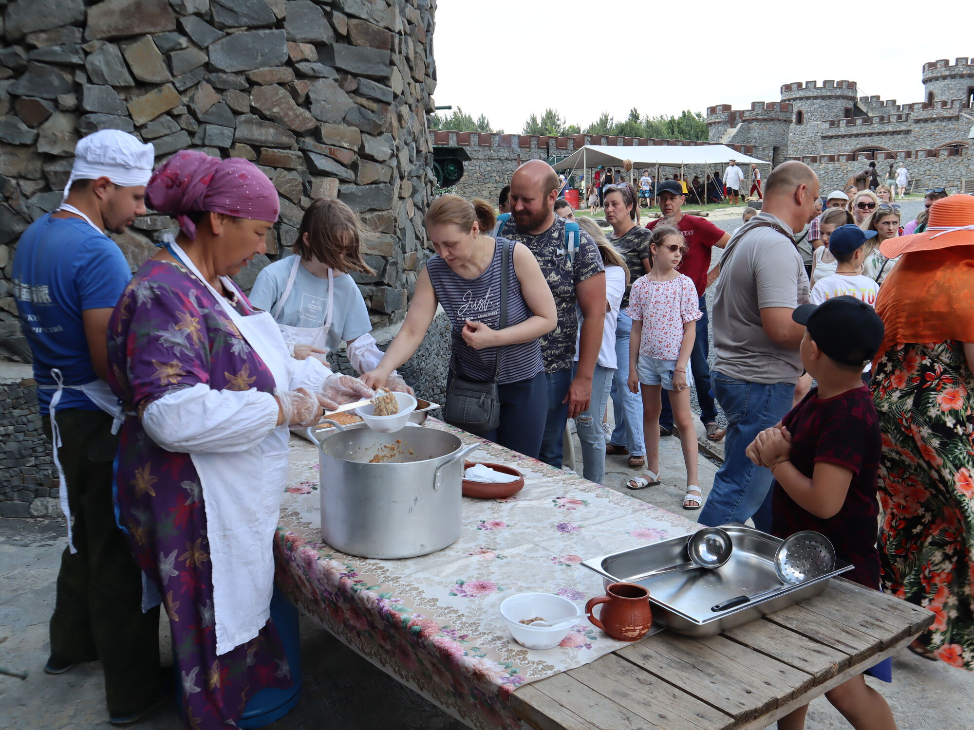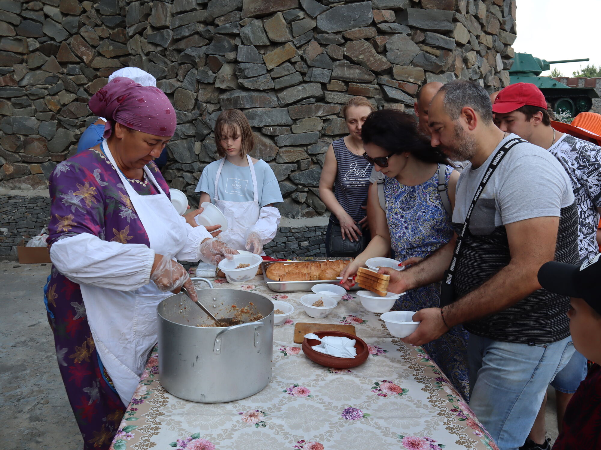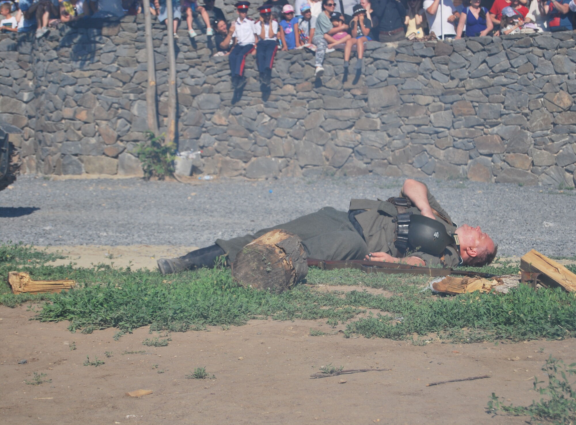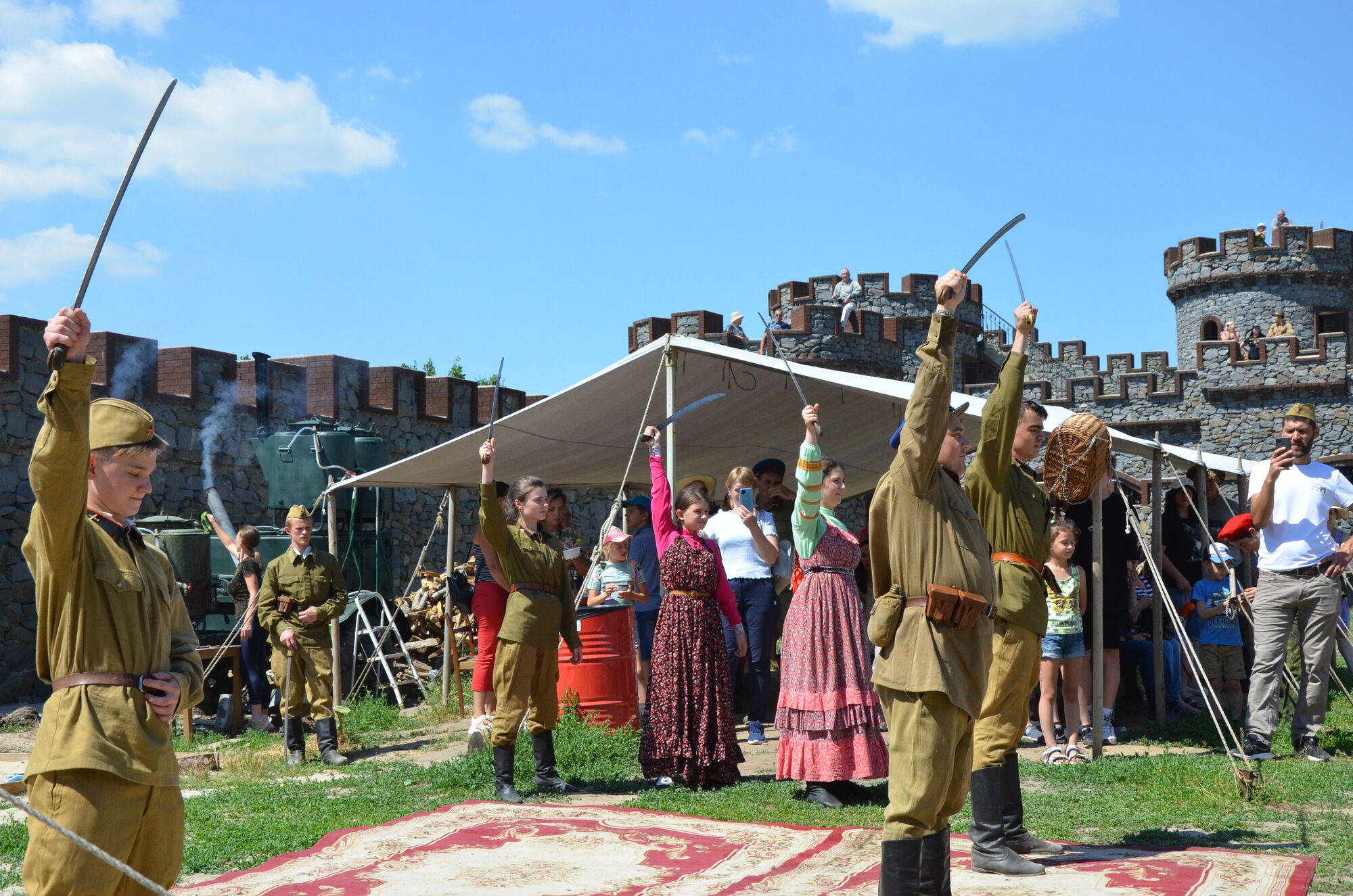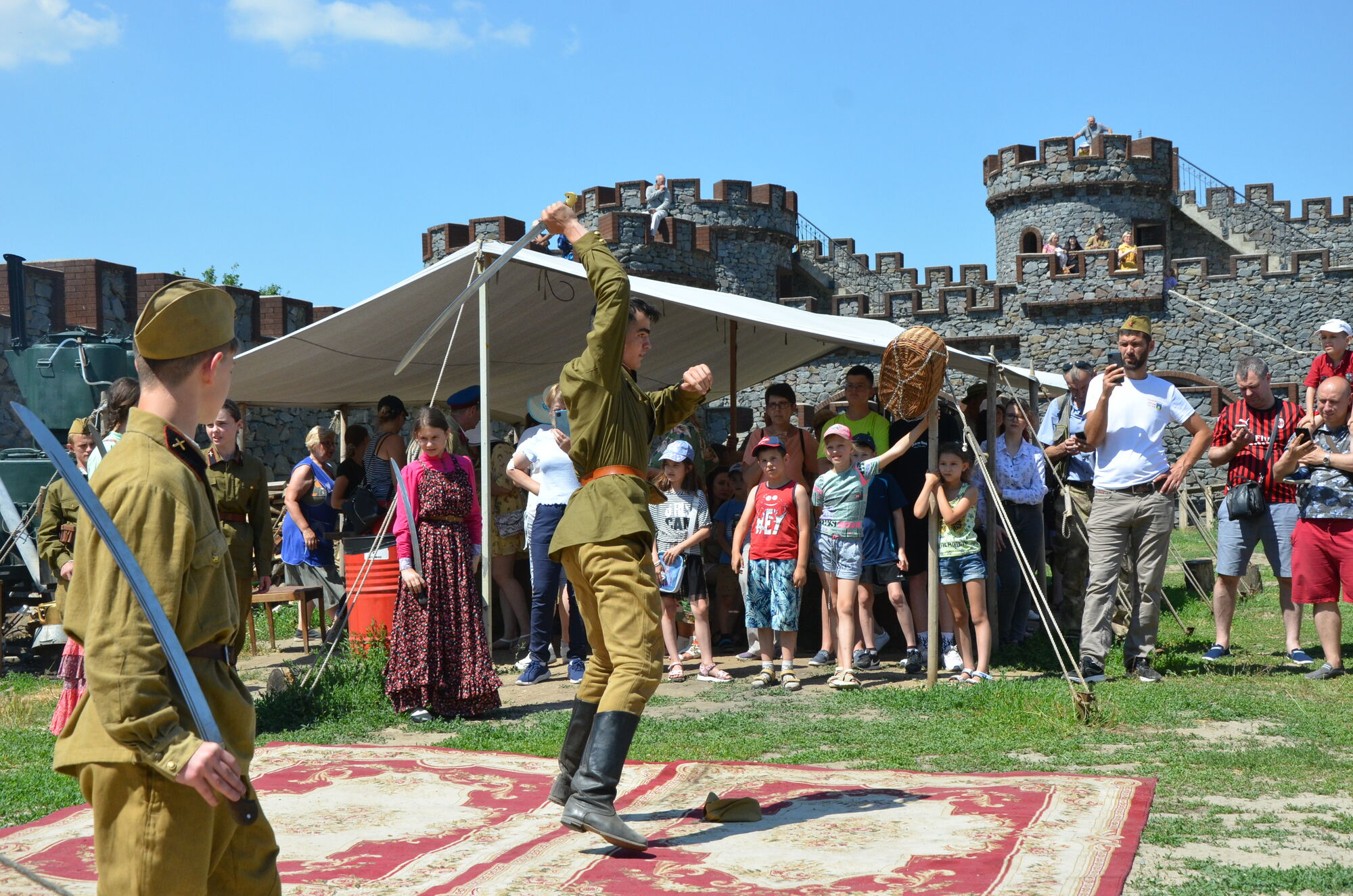 Была организована концертная программа и показательные тактические выступления казачьей-юнармейской разведгруппы «Георгиевцы» воспитанников приходской воскресной школы храма Святого Георгия Победоносца (Главного храма ЮВО МО РФ).