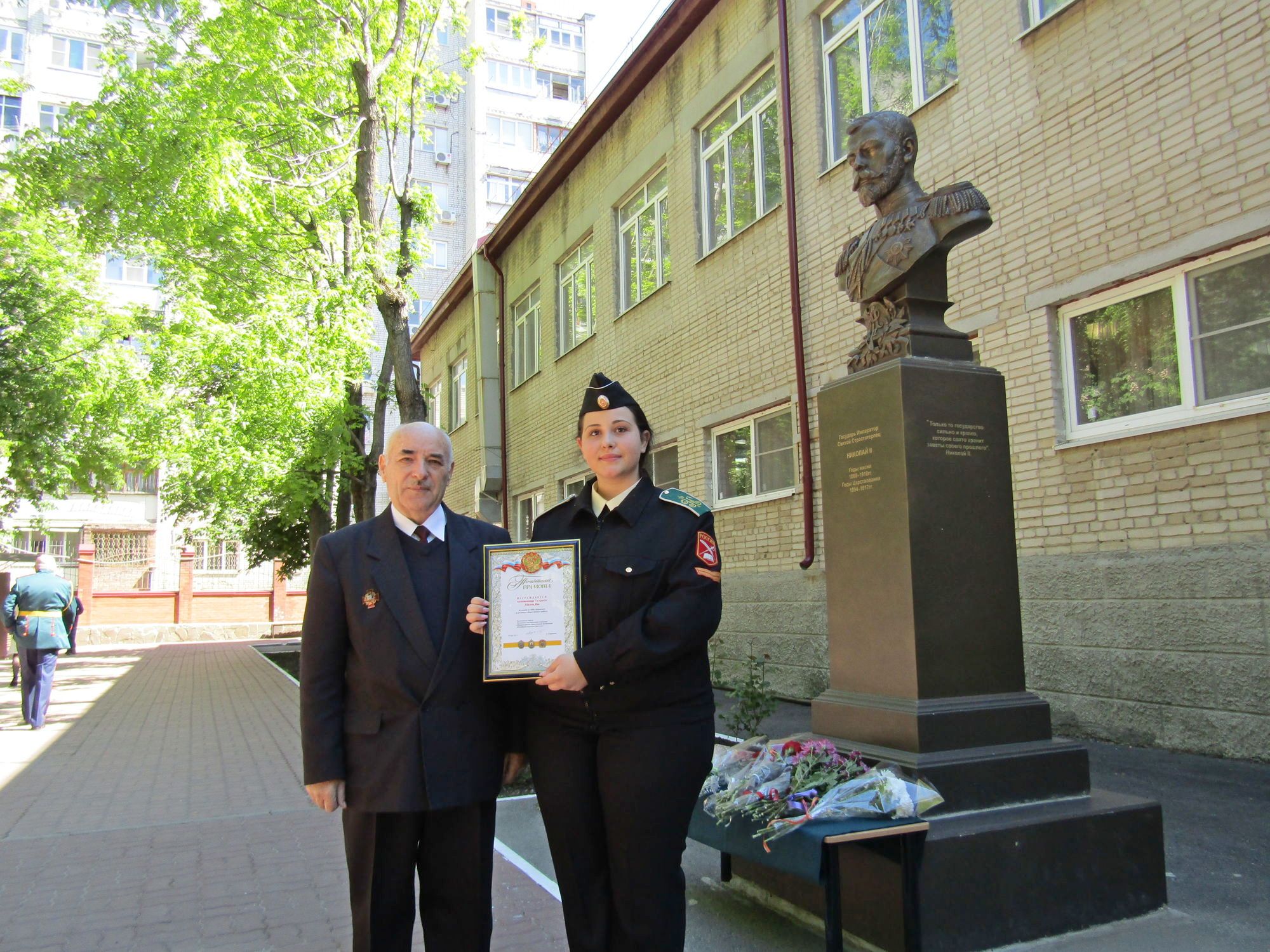 На торжественном мероприятии присутствовали высокие гости - генерал-майор Российской армии Новиков Владимир Иванович, зам. председателя Ростовского регионального отделения общероссийской общественной организации "Российское кадетское братство", полковник в отставке Рудик Юрий Васильевич, президент негосударственного благотворительного фонда им. Великой княгиня Е. Ф. Романовой Шевченко Нина Сергеевна.