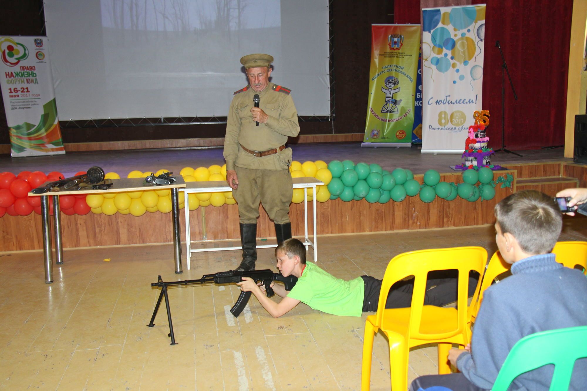 Дети и преподаватели, присутствовавшие на «Уроке живой истории», узнали много интересных исторических фактов, связанных с боями на Миуском рубеже в годы Великой Отечественной войны, о судьбах бойцов и командиров Красной Армии, воевавших с немецко-фашистскими захватчиками на подступах к городу Ростову-на-Дону и городу Таганрогу. Также молодые люди — будущие защитники Отечества могли подержать в руках исторические и современные макеты образцов оружия, послушали авторские песни и стихи, посмотрели видео-клипы военно-патриотической тематики.
