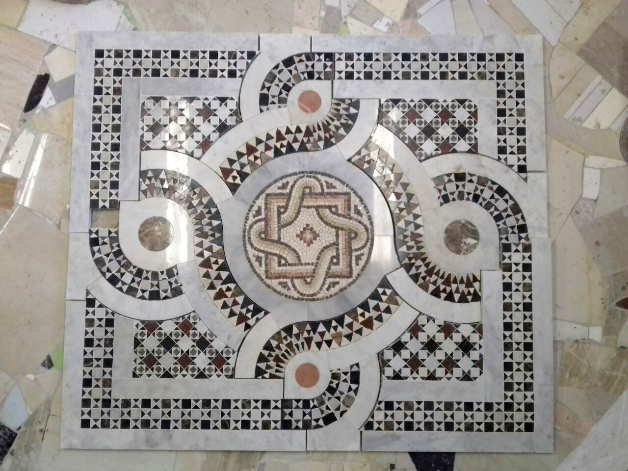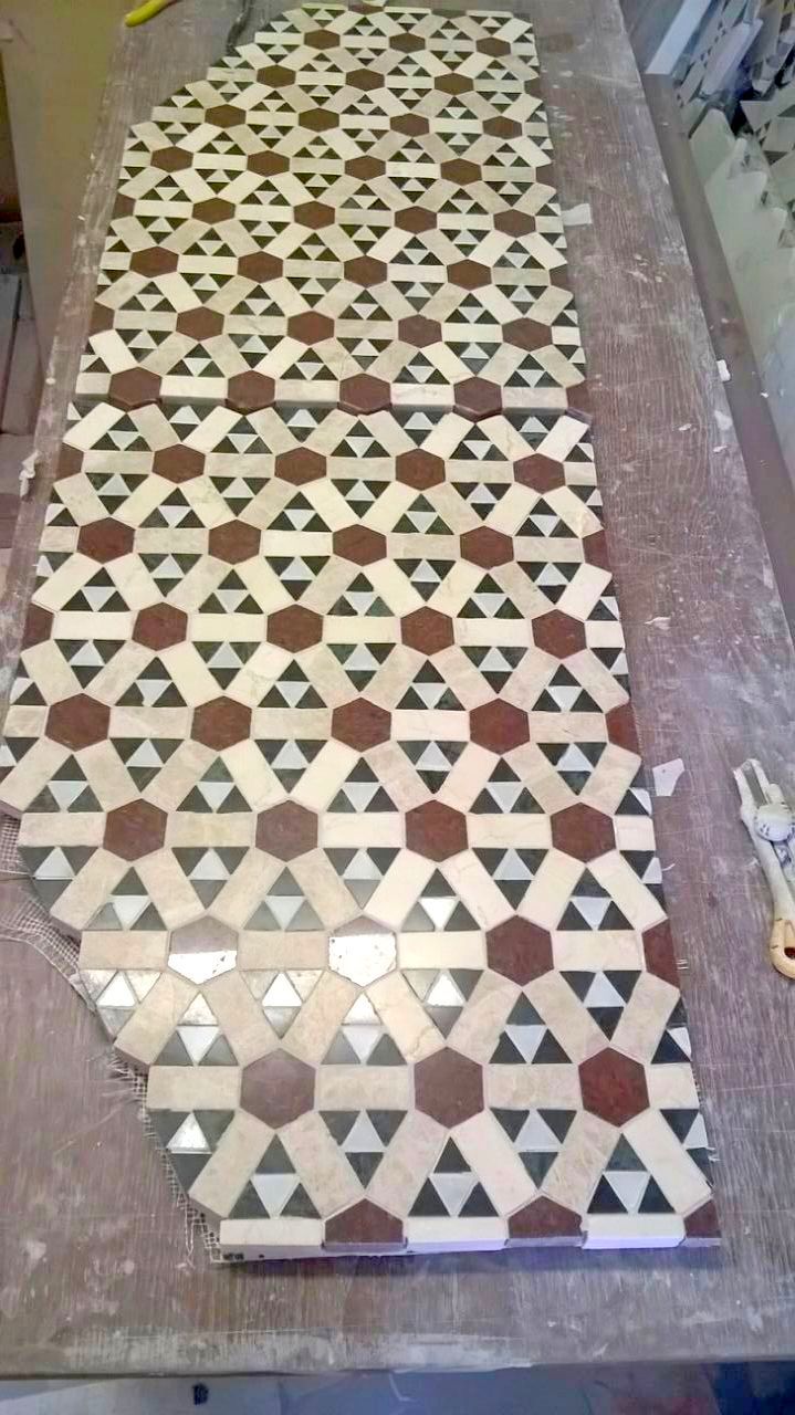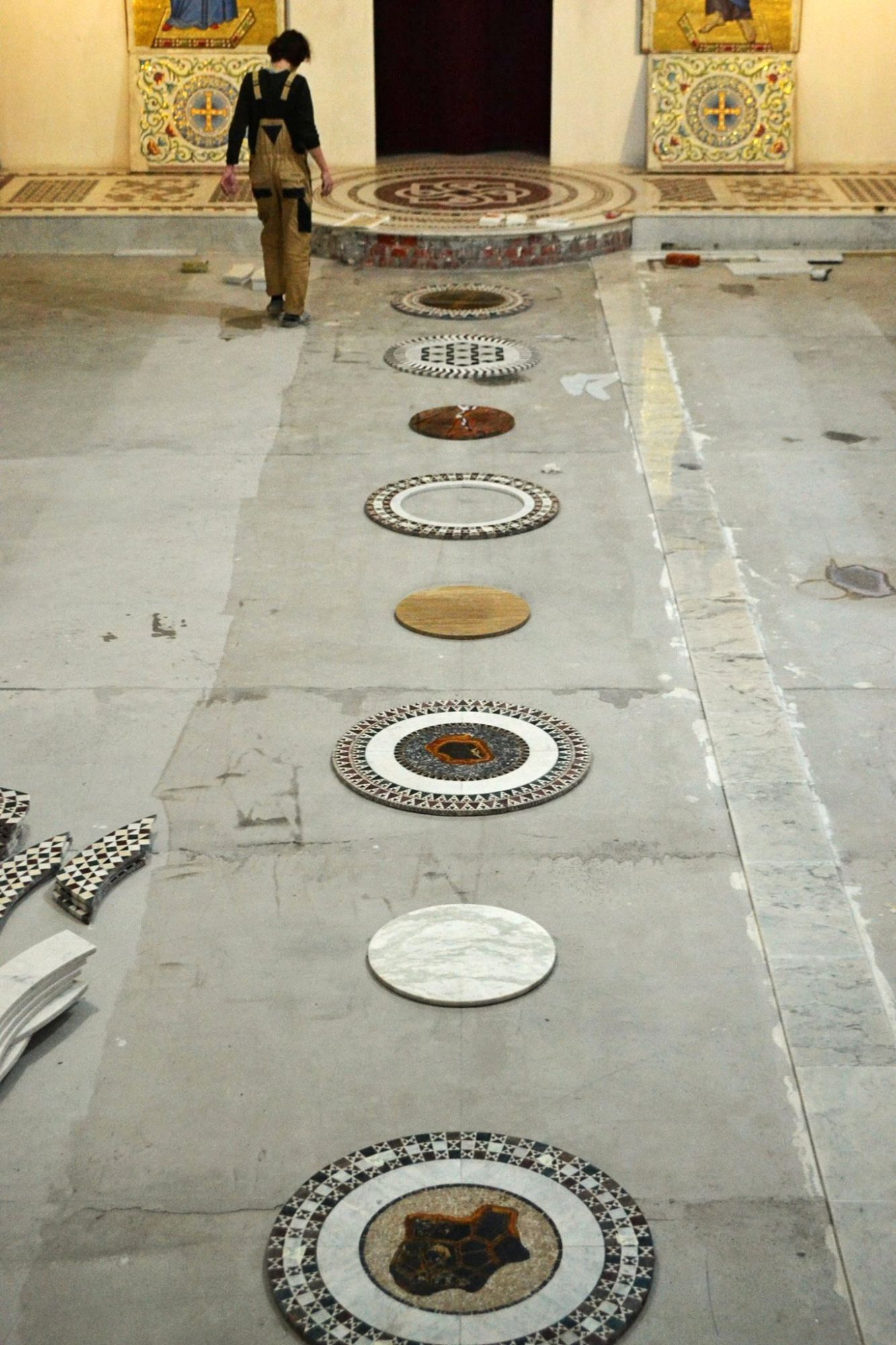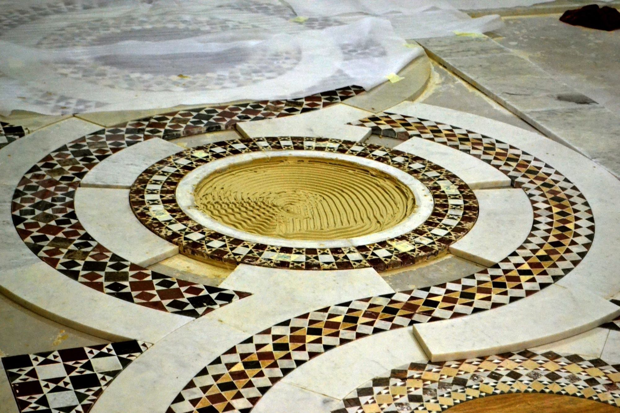 Работа над этим долгим проектом началась еще осенью 2015 года, с предложения настоятеля храма, отца Валерия, создать мозаичный пол в стиле Косматеско.
