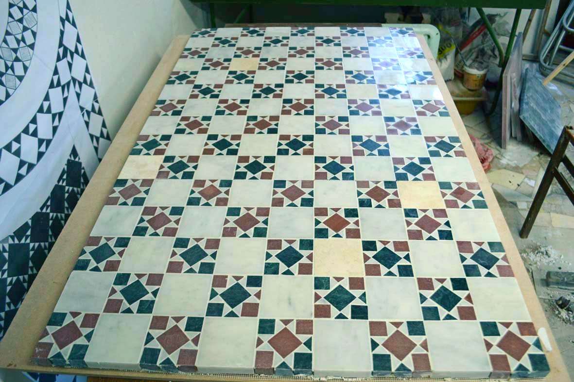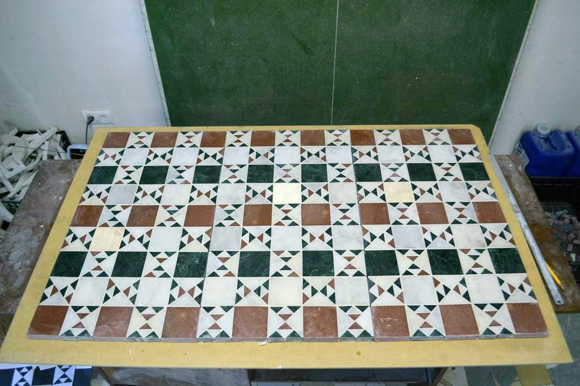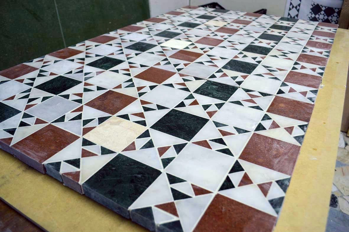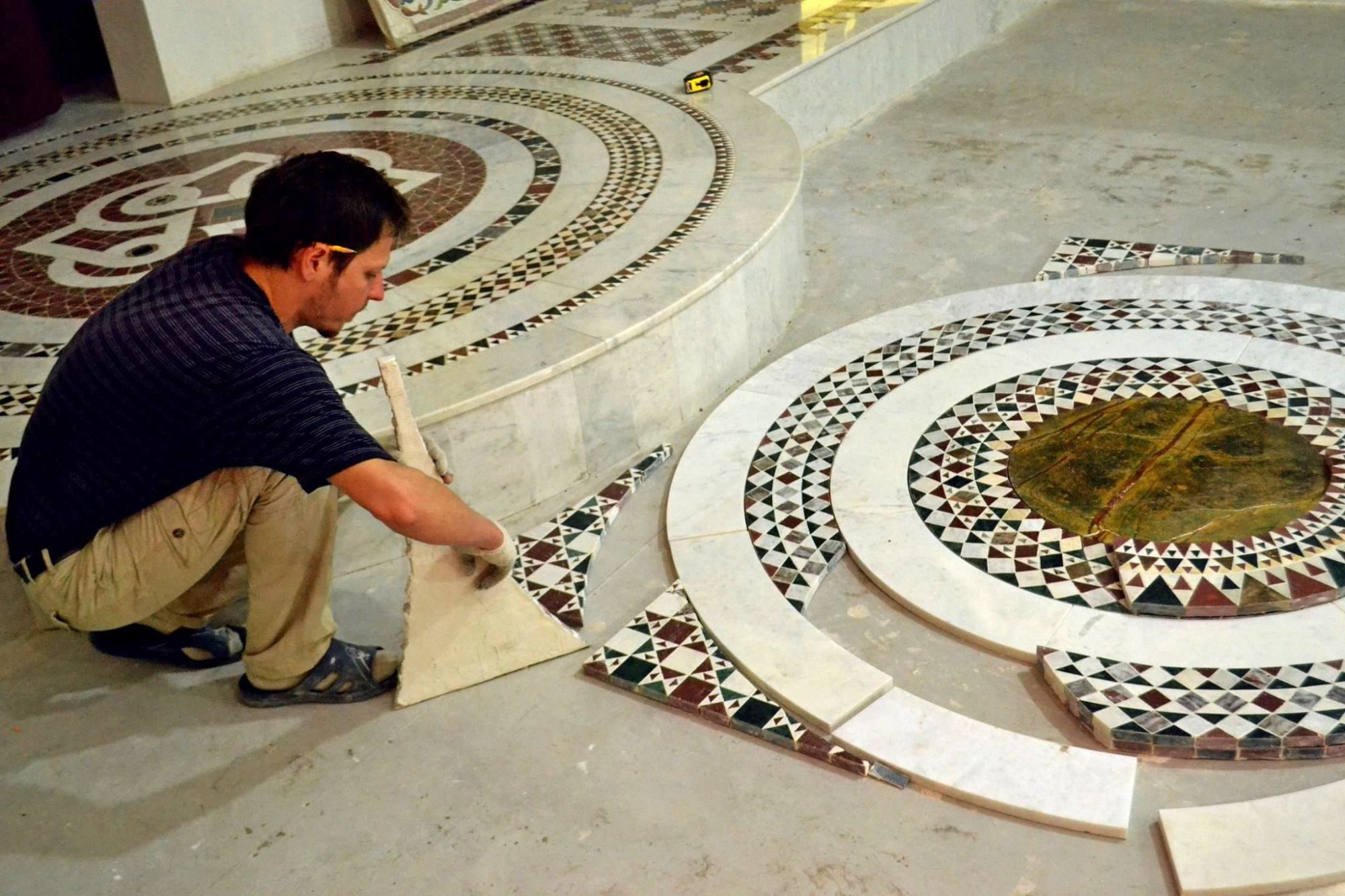 Работа над этим долгим проектом началась еще осенью 2015 года, с предложения настоятеля храма, отца Валерия, создать мозаичный пол в стиле Косматеско.
