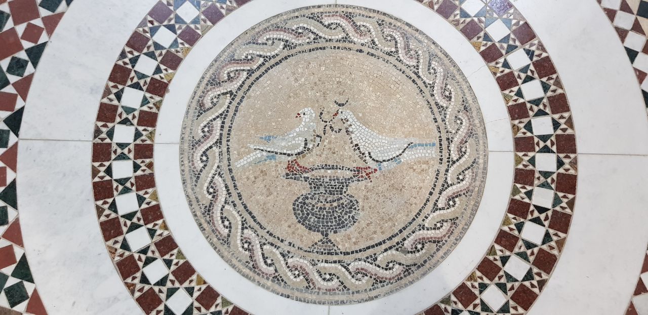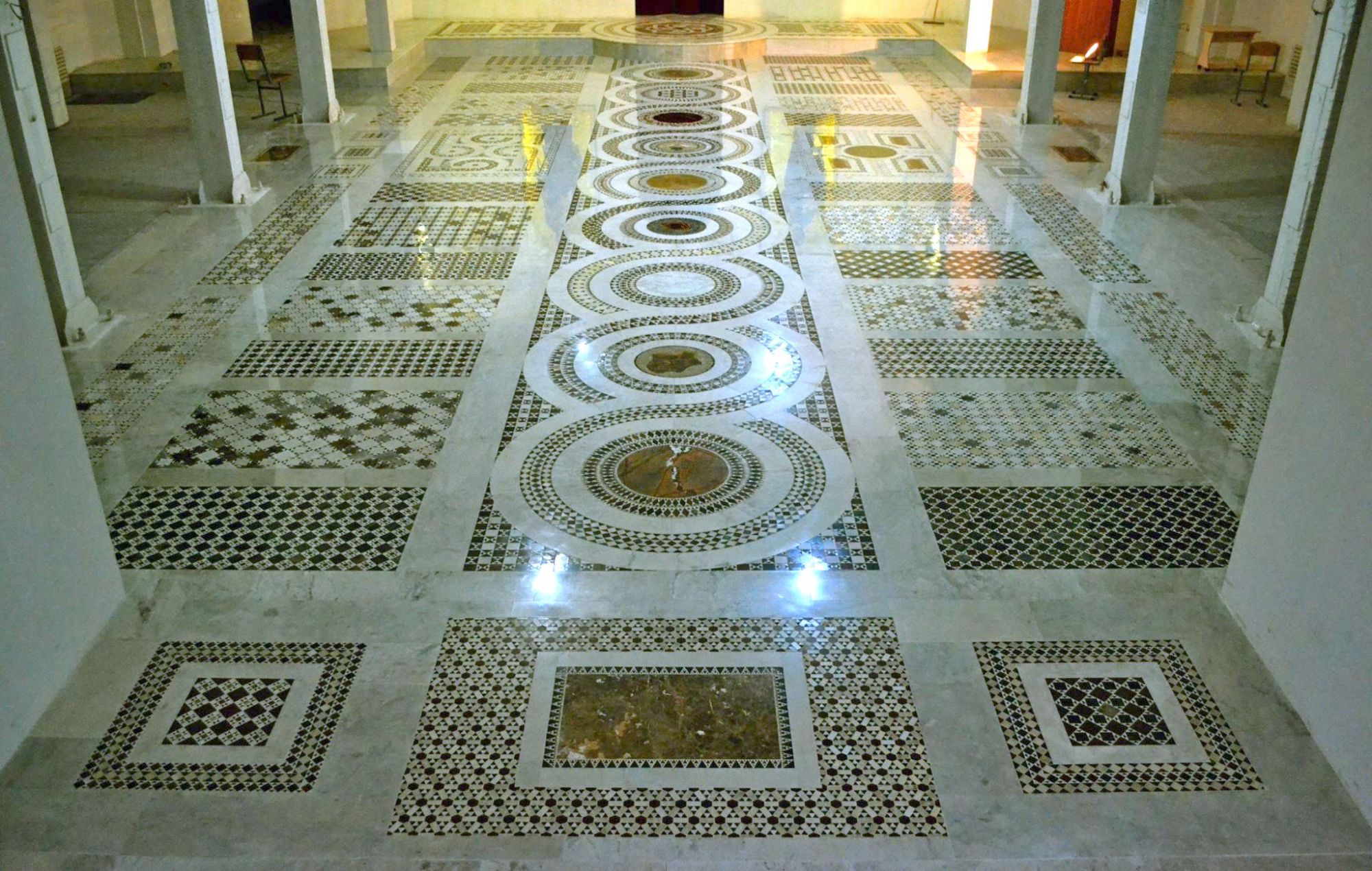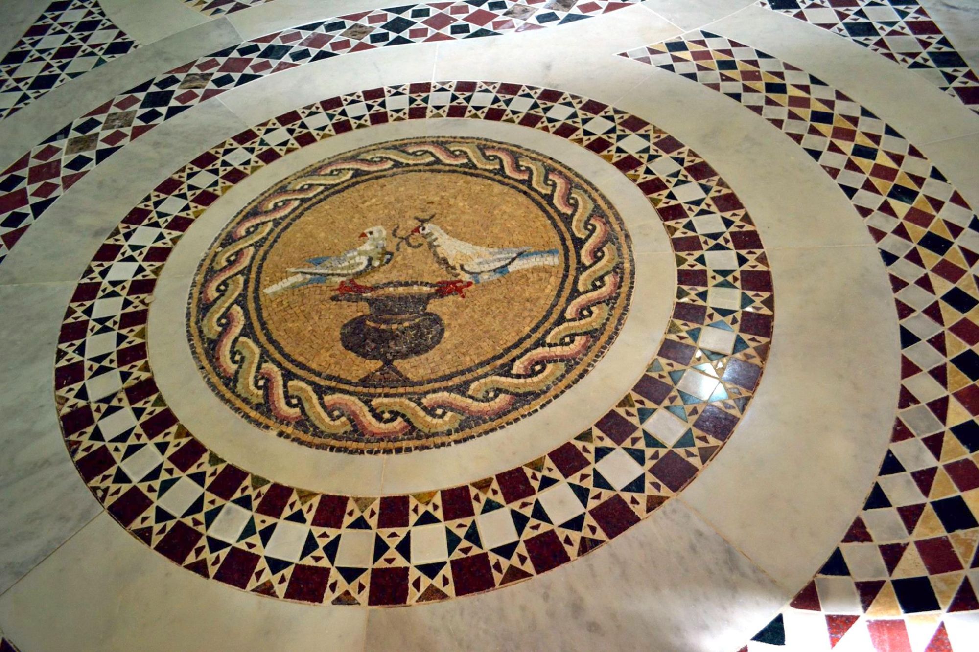 Здесь можно увидеть частично сохранившиеся полы константинопольских мозаичистов, которые уже в то время демонстрируют несомненное сходство стиля с последовавшим за ним косматеско.