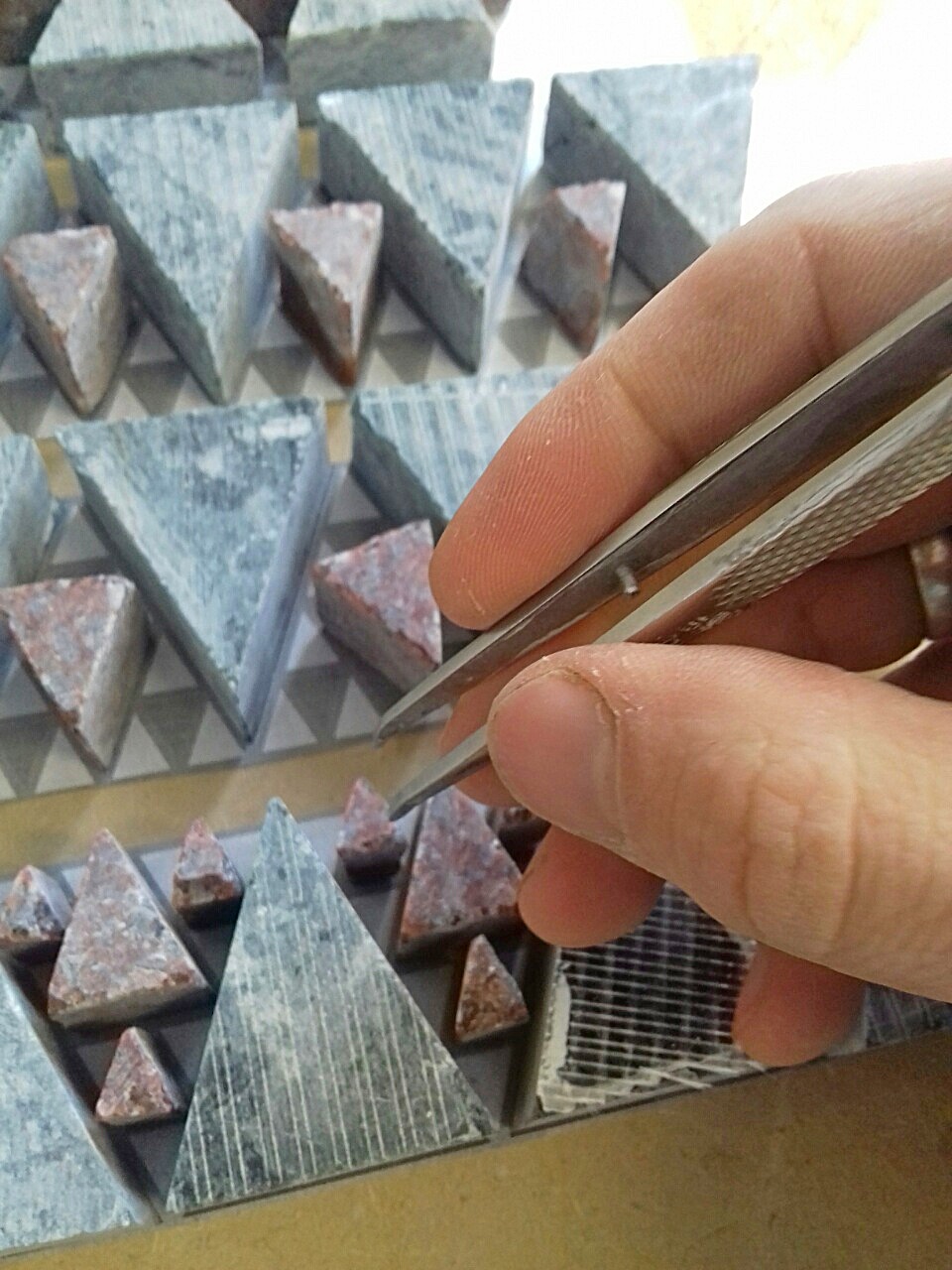 Для каждого мозаичного ковра отдельно разрабатывался и подготавливался свой картон, на основе этого картона подбиралась цветовая гамма камней, которые впоследствии распиливались на тысячи отдельных кусочков различного размера, цвета и формы. Каждый без исключения кусочек камня прошел через руки мозаичистов, ведь набиралась мозаика исключительно вручную.