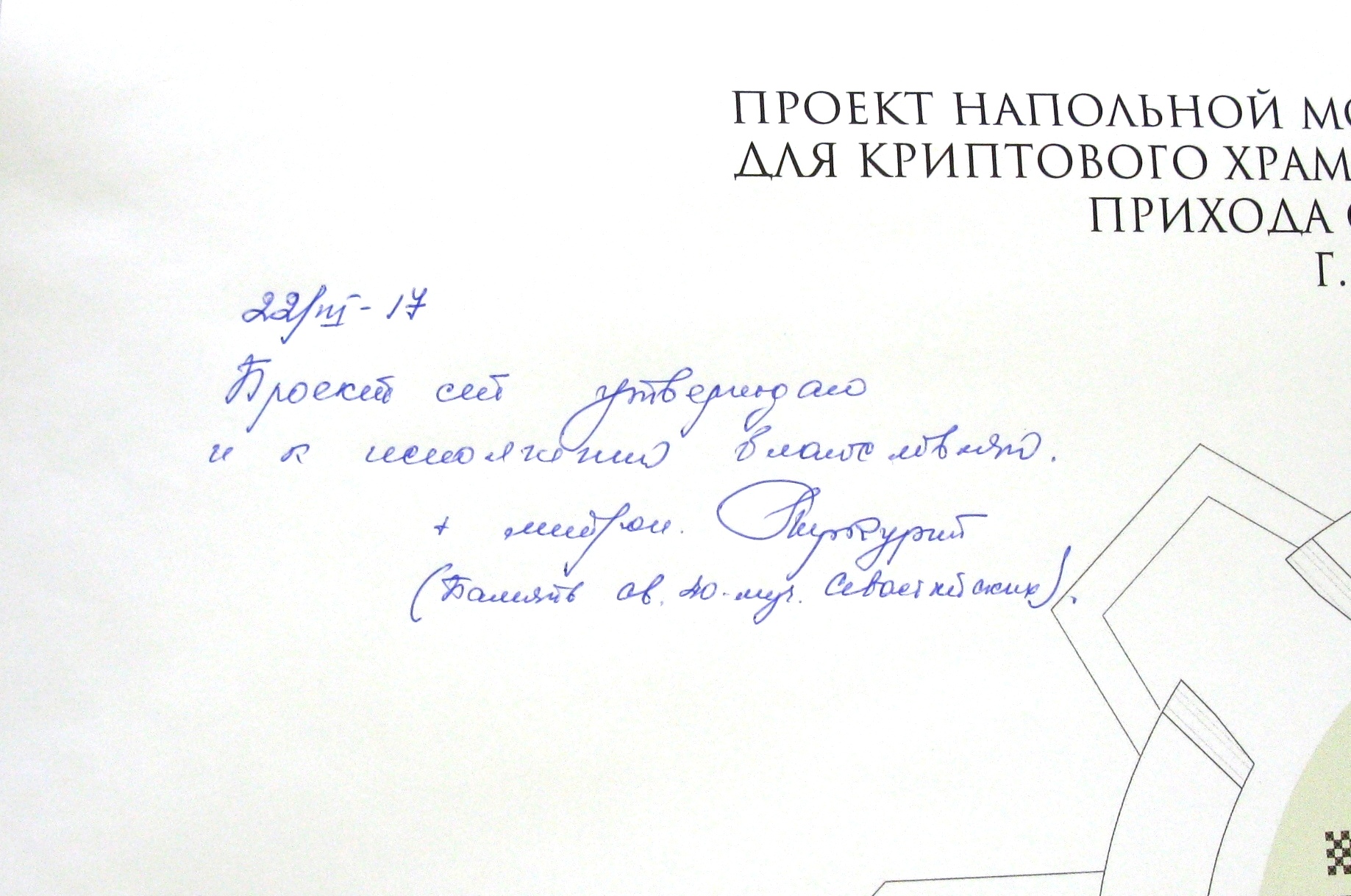 Хотелось бы, чтобы этот мозаичный пол, ставший итогом долгой, трудной и кропотливой работы, внес свой весомый вклад в общее дело благоукрашения этого чудесного храма и привносил свою особую красоту в каждый праздник и каждое служение, совершаемое в нем.