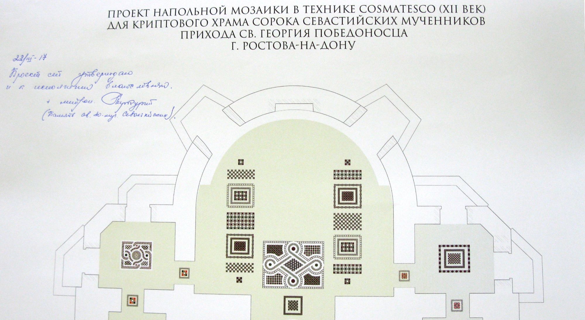 Более двух с половиной лет продолжалась работа над мозаичными полами для криптового храма в честь Сорока севастийских мучеников в Ростове на Дону. С начала 2016 года над проектом трудились ремесленники мозаичисты из Беларуси, а также специалисты по устройству мраморных покрытий пола, помогавшие им на этапах монтажа.