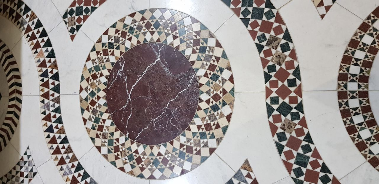 Вкратце об истории стиля. Косматеско - старинная технология устройства мраморного пола, которая начинает свою историю еще во времена Византийской империи. В течение нескольких столетий она распространилась во многих средневековых европейских городах: от Афин и Константинополя до Новгорода и Киева. Среди наиболее знаковых и общеизвестных образцов можно назвать Латеранскую церковь святого Иоанна в Риме, Сикстинскую капеллу, Вестминстерское аббатство в Лондоне, собор Святого Марка в Венеции и др.