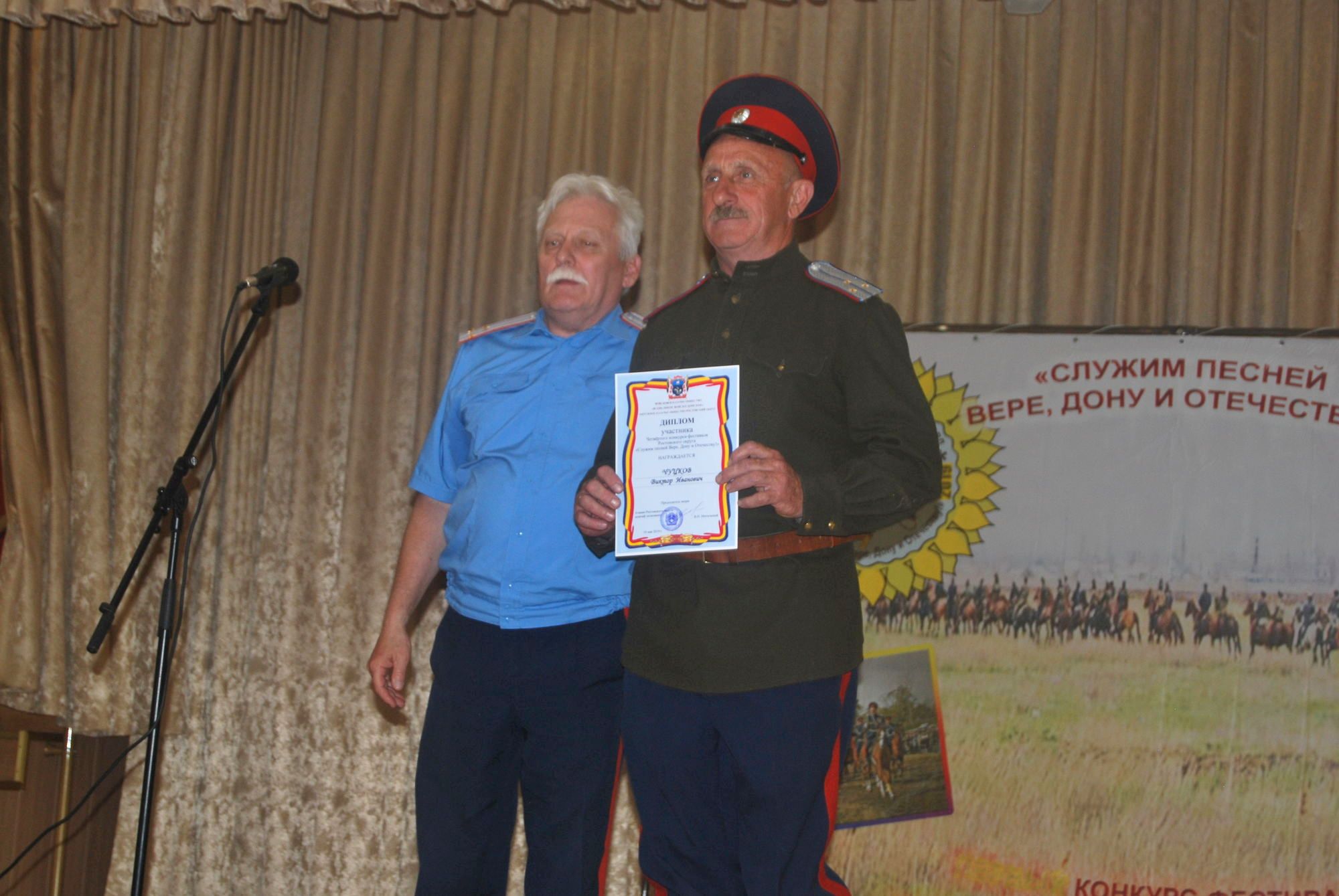 в номинации «солисты-исполнители казачьей песни» — руководитель Ростовского духовно-патриотического центра святого Георгия Победоносца Виктор Иванович Чуцков.