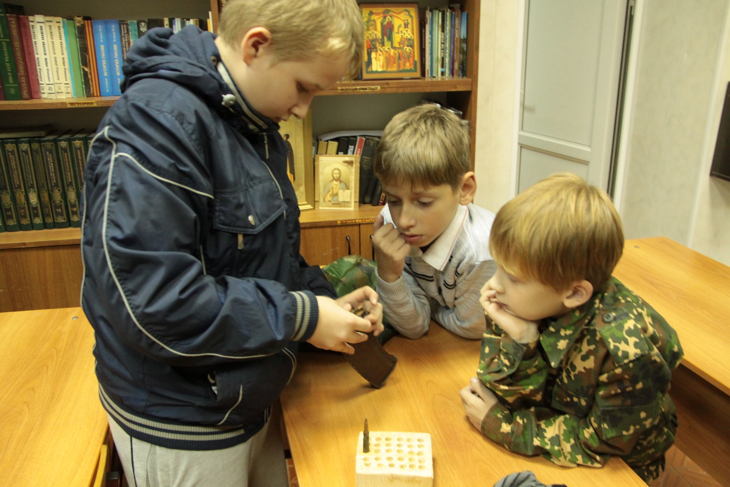 19 октября 2014 года в воскресной школе храма Иоанна Воина Прихода святого Георгия Победоносца состоялось очередное занятие по программе начальной военной подготовки «Уроки Мужества». В ходе занятия воспитанники оттачивали навыки рукопашного боя, разборки и сборки автомата, преодоления элементов полосы препятствий, изучали основы работы с переносными радиостанциями.