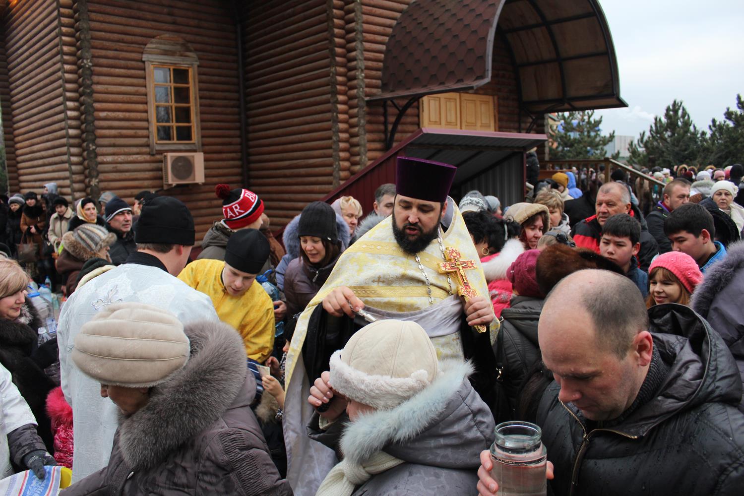 По завершении Чина освящения воды настоятель храма, протоиерей Волощук, обратился к прихожанам со словами напутствия и поздравил с наступившим праздником. Напомнил всем о смысле праздника и о высоком звании христианина которые мы носим: «Мы чада Божии которые должны жить по евангельски, исполнять Его волю».