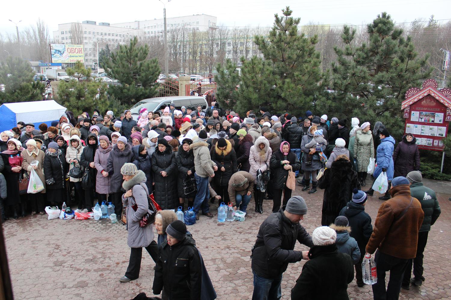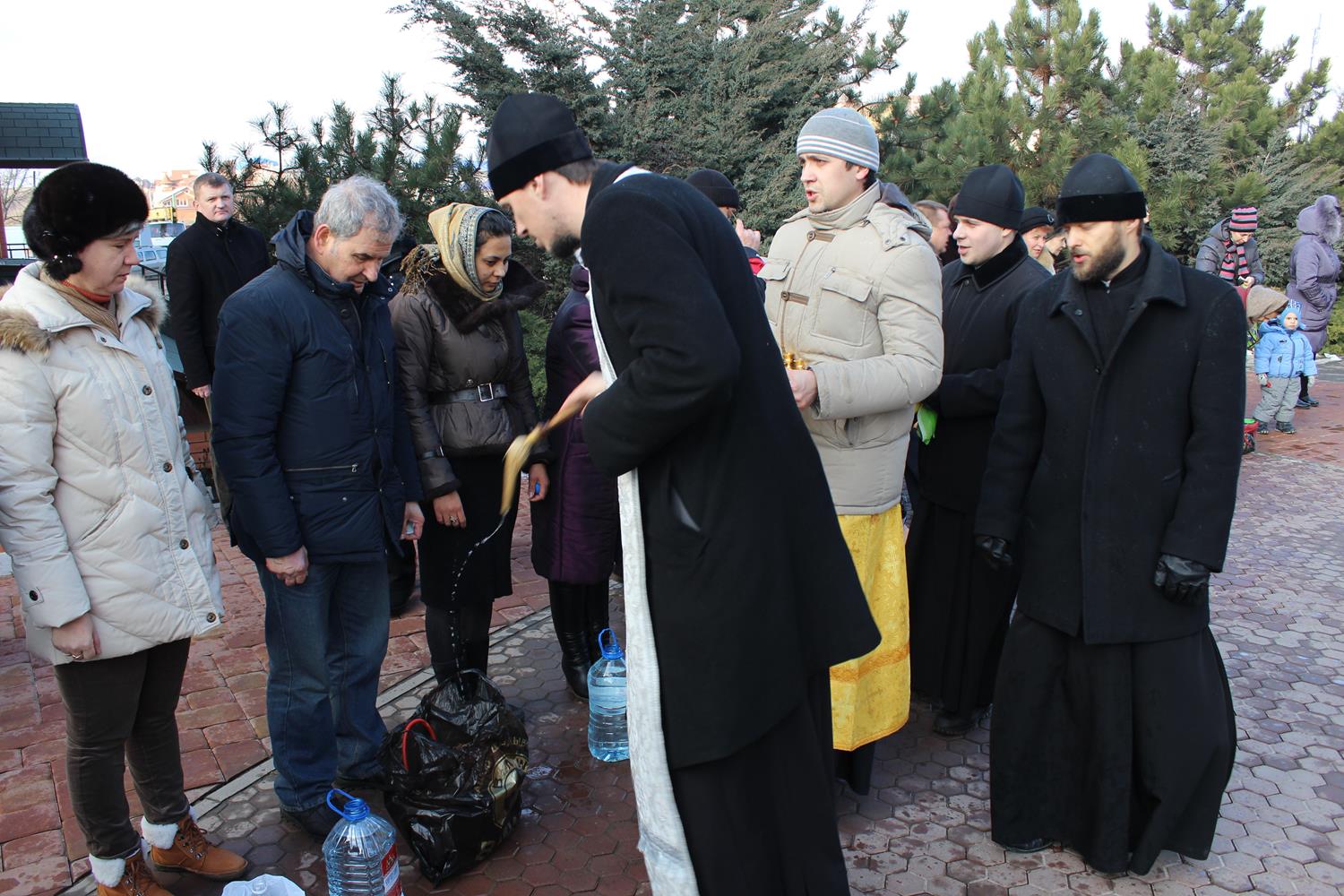 Освящение воды продлилось на подворье храма до позднего вечера.