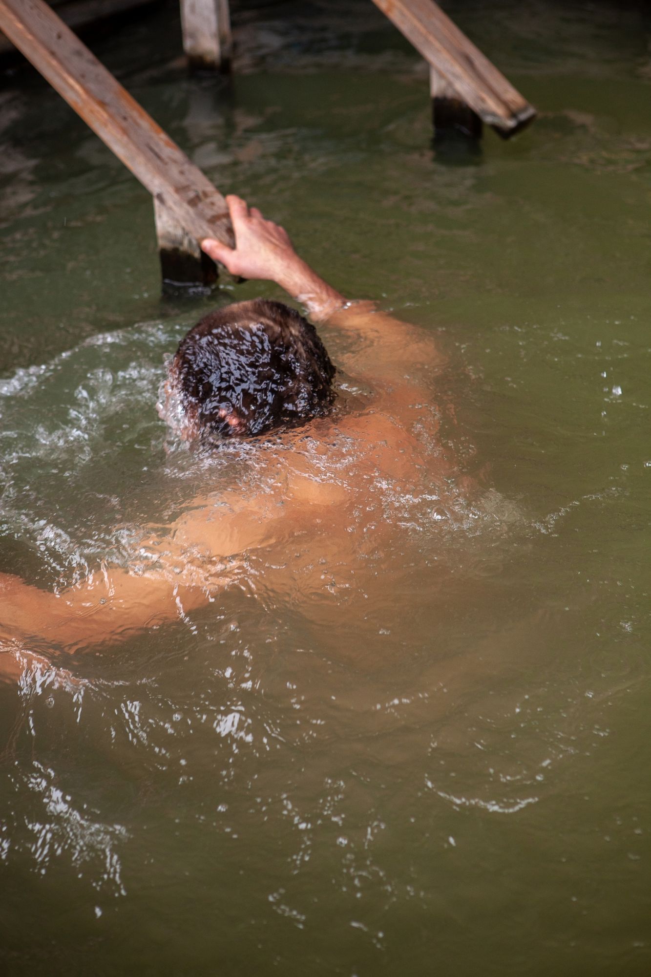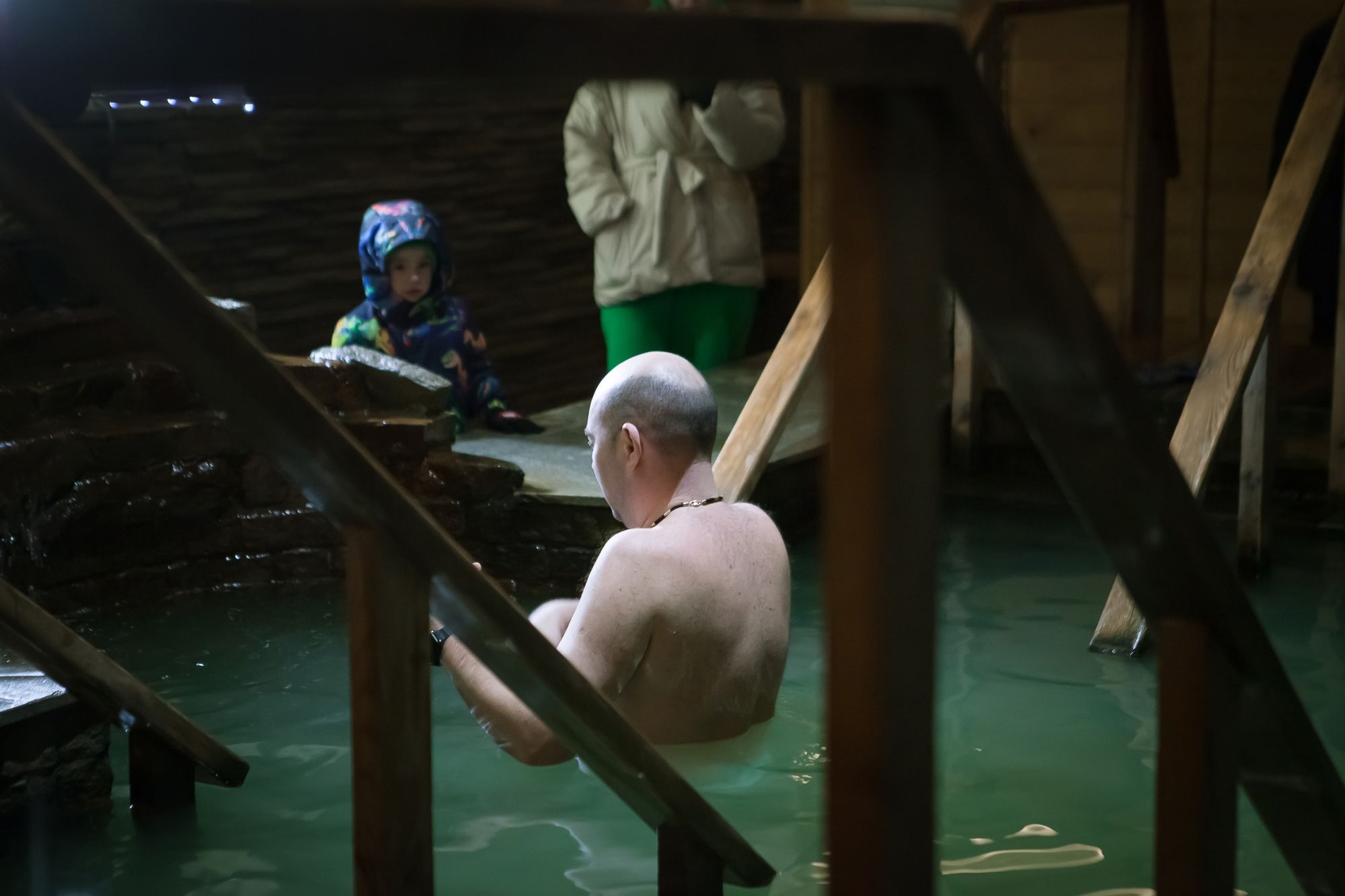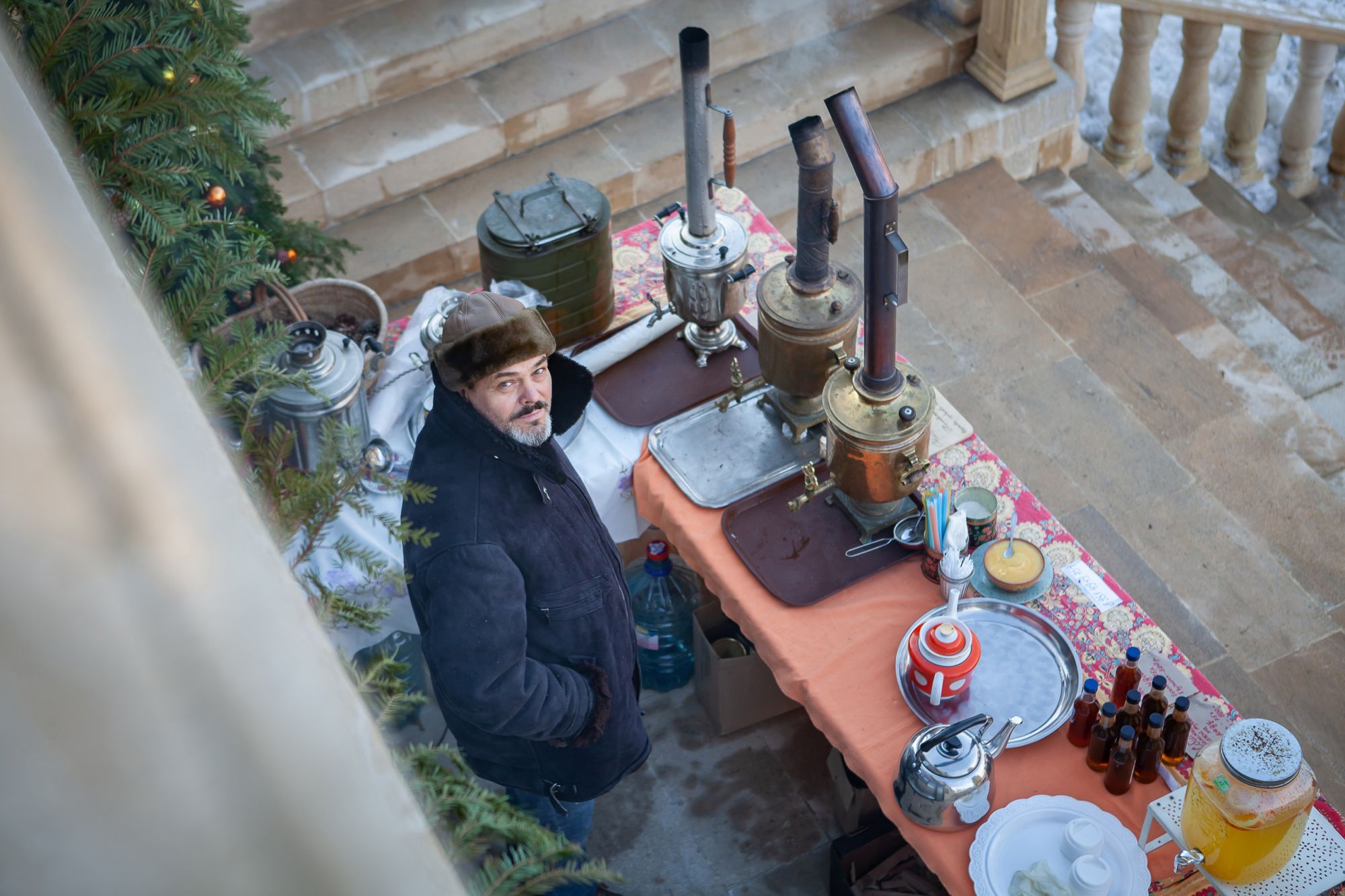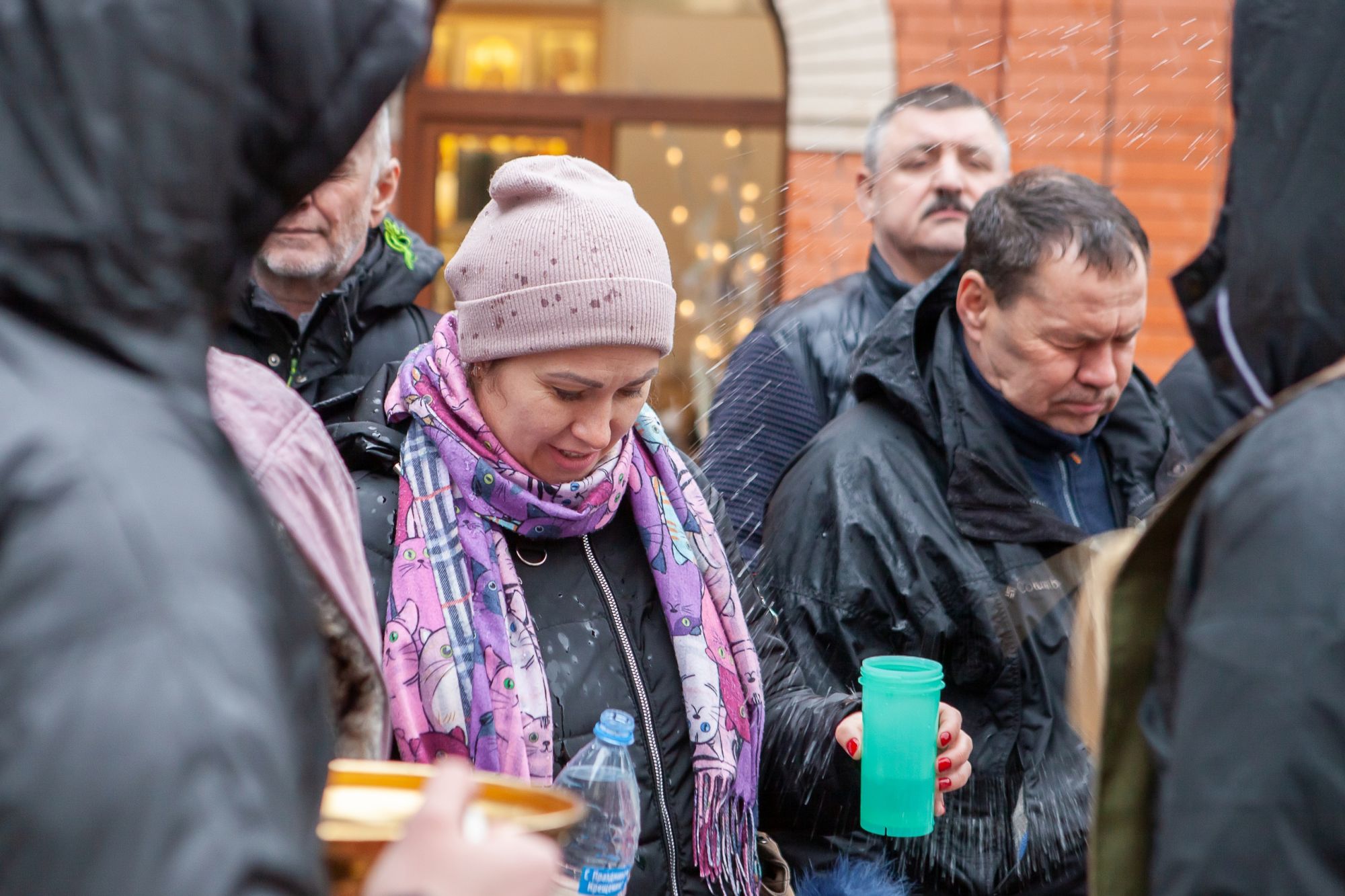 Для готовящихся благоговейно окунуться в купель на территории Георгиевского парка были оборудованы обогреваемые палатки для переодевания и медицинский пункт. А в нашей кофейне всех гостей ждал травяной чай из самовара, сбитни и приходская выпечка.