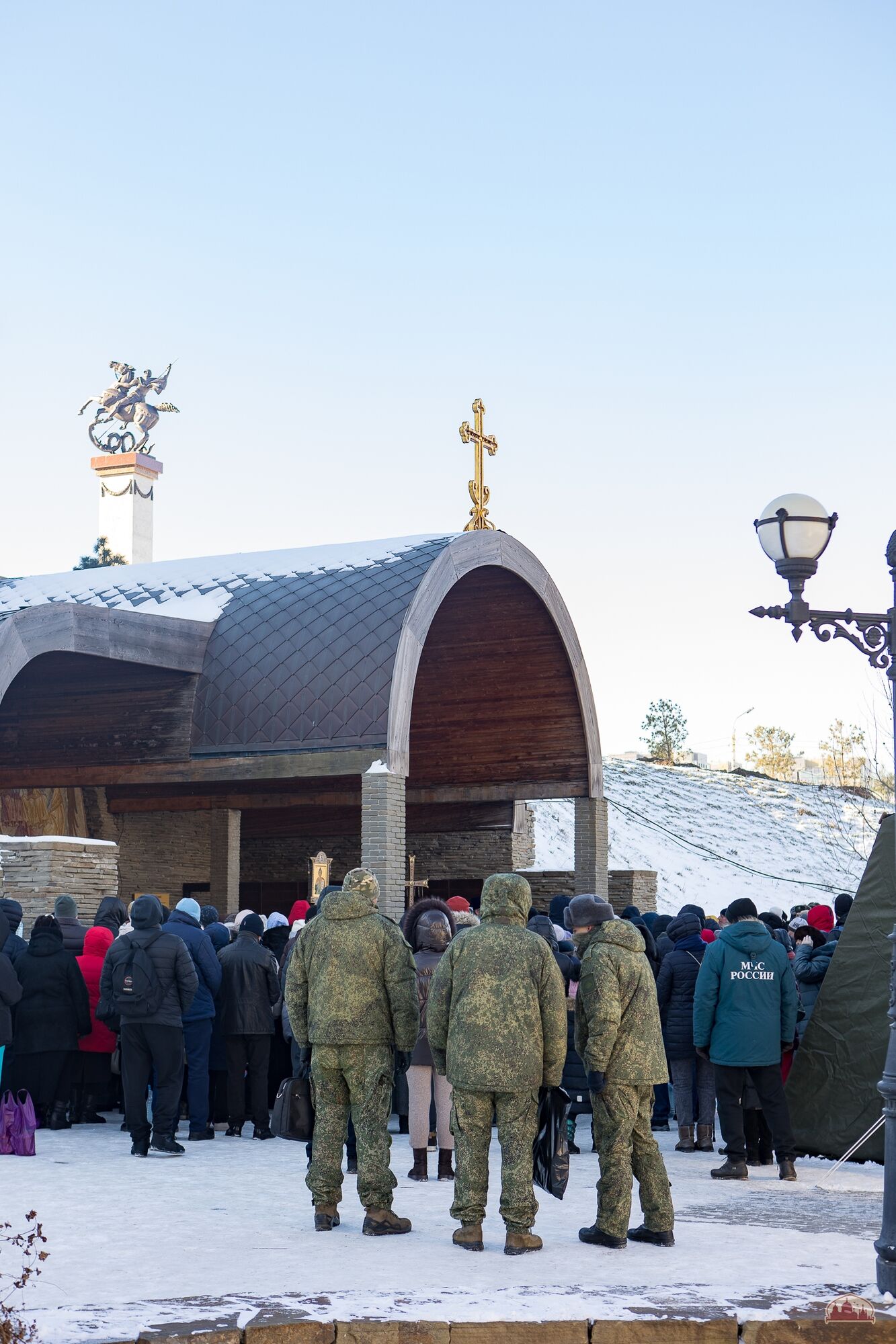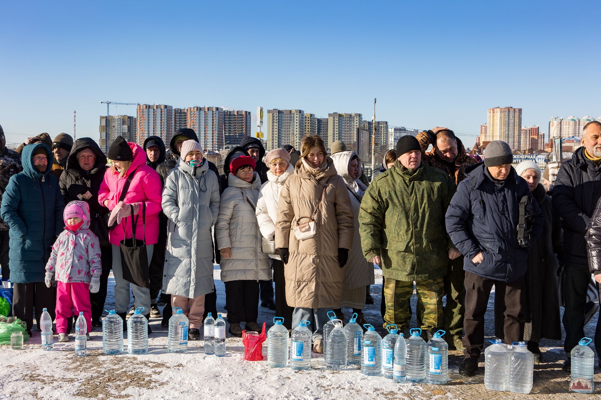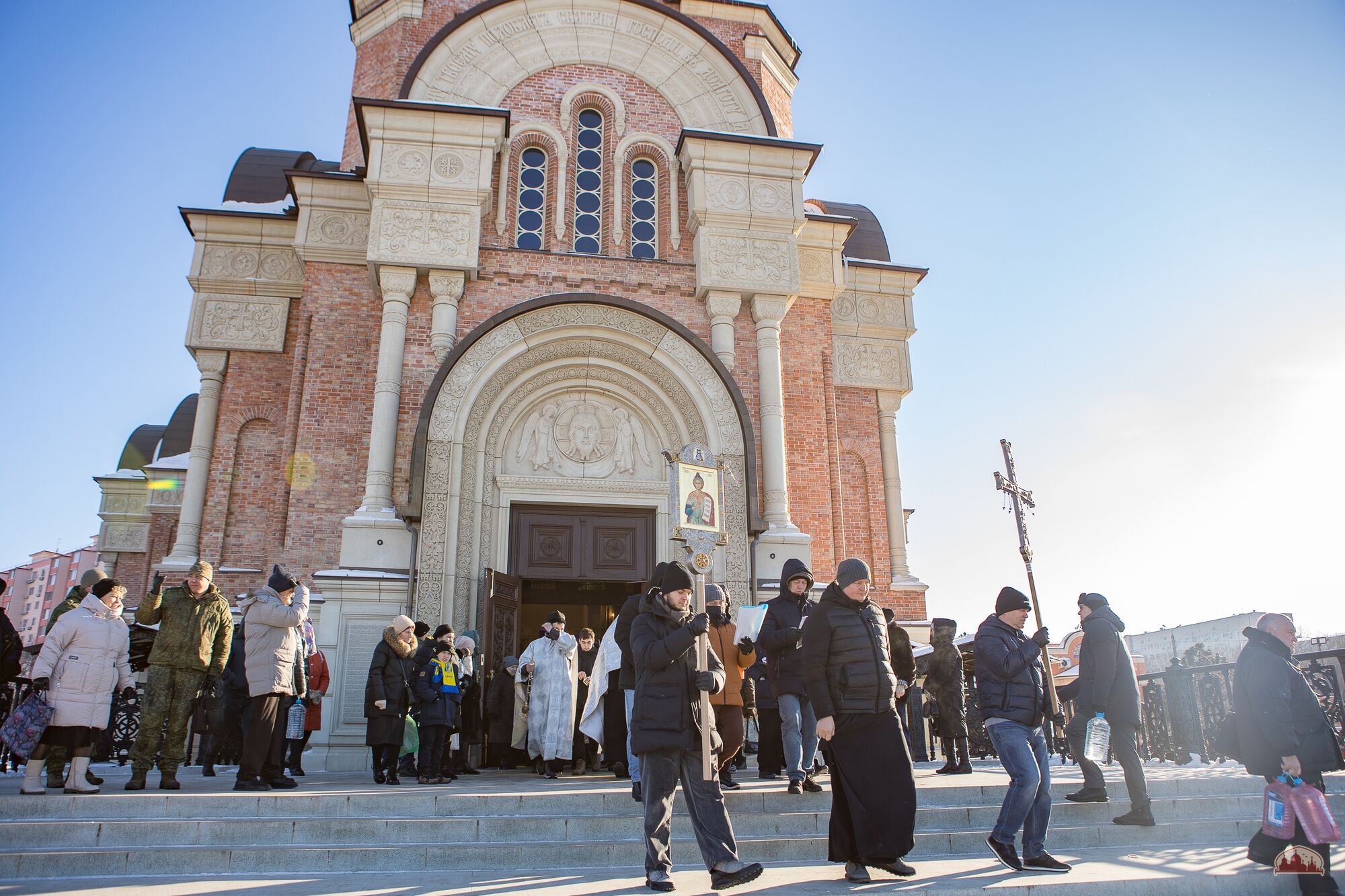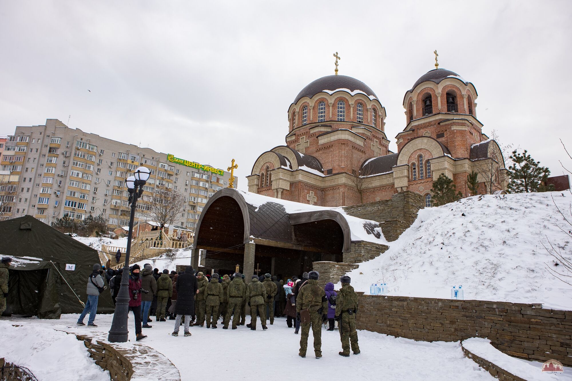 Приход празднует Святое Богоявление: торжественные богослужения Крещенского сочельника и дня Крещения Господня, крестный ход, Великое водоосвящение, многочисленные паломники и гости, приходская купель, самовары и настоящие крещенские морозы! К торжествам присоединились более 300 военнослужащих Южного военного округа, а также члены их семей.