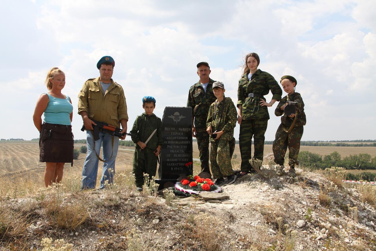 Одним из них является памятный знак, установленный 1 августа 2012 года у поселка Матвеев-Курган, в честь воинов-десантников, освобождавших Ростовскую область от немецко-фашистских захватчиков. Возле памятного знака дети встретились с ветераном ВДВ, жителем поселка Куйбышево, представителем поискового объединения «Миус-фронт» Косцовым Андреем Васильевичем. Он рассказал детям о своей службе в рядах Российской Армии, о тех событиях, которые происходили в годы Великой Отечественной Войны на Донской земле, и об участии в этих боях десантных подразделений.