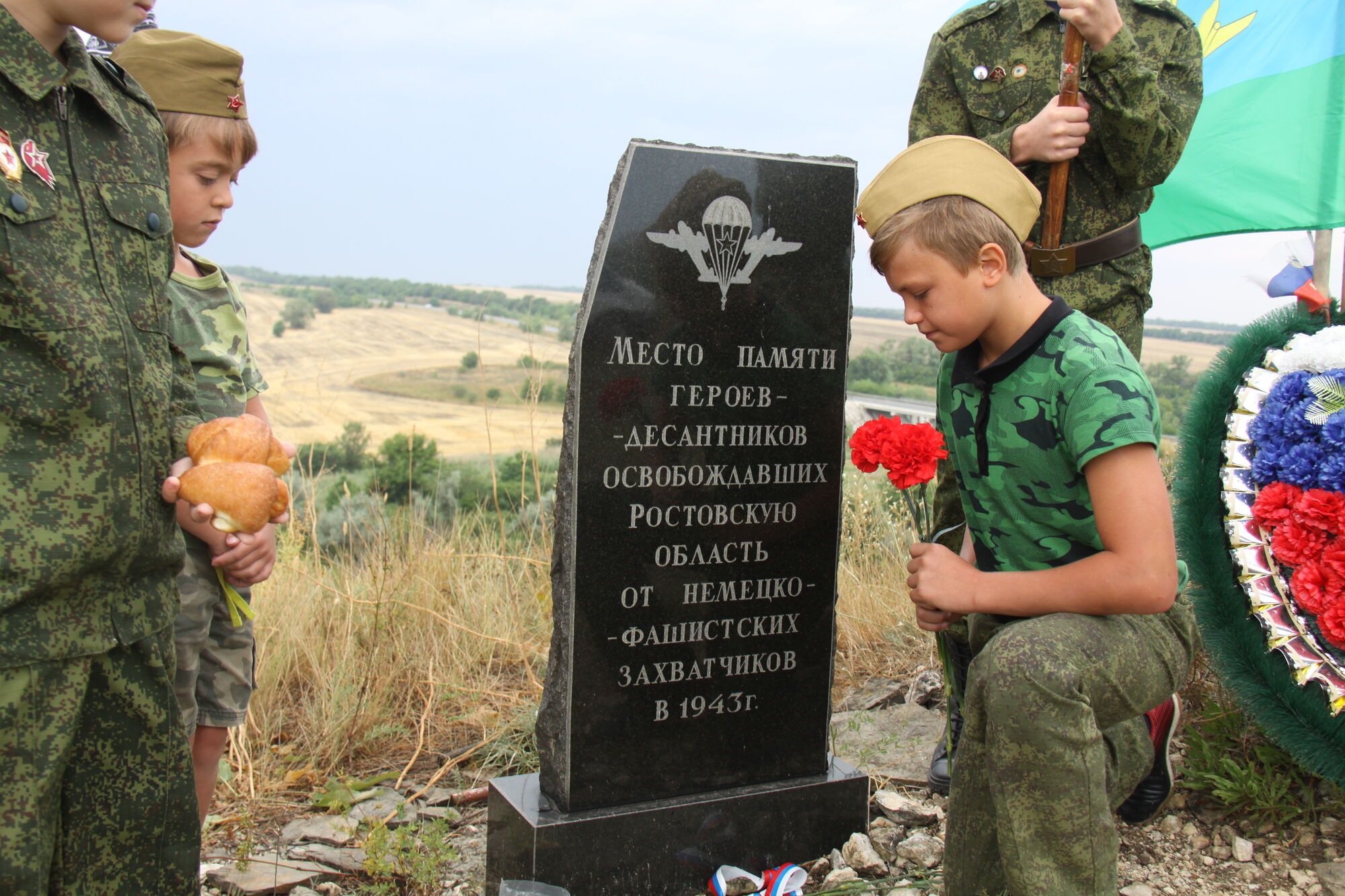 2 августа 2022 года, в день памяти Святого Пророка Божия Илии и день создания воздушно-десантных войск Российской армии, представители Ростовского духовно патриотического центра Святого Георгия Победоносца совместно с воспитанниками приходской воскресной школы, входящими в состав казачьей- юнармейской разведгруппы «Георгиевцы», при взаимодействии с региональным отделением ДОСААФ России Ростовской области по благословению настоятеля прихода Святого Георгия Победоносца (Главного православного воинского храма Южного военного круга Министерства обороны Российской Федерации) протоиерея Валерия Волощука в рамках содействия реализации Федерального закона об увековечивании памяти погибших защитников Отечества и реализации общественного проекта «География патриотического краеведения» совершили поездку по местам боевой славы и местам природных достопримечательностей.