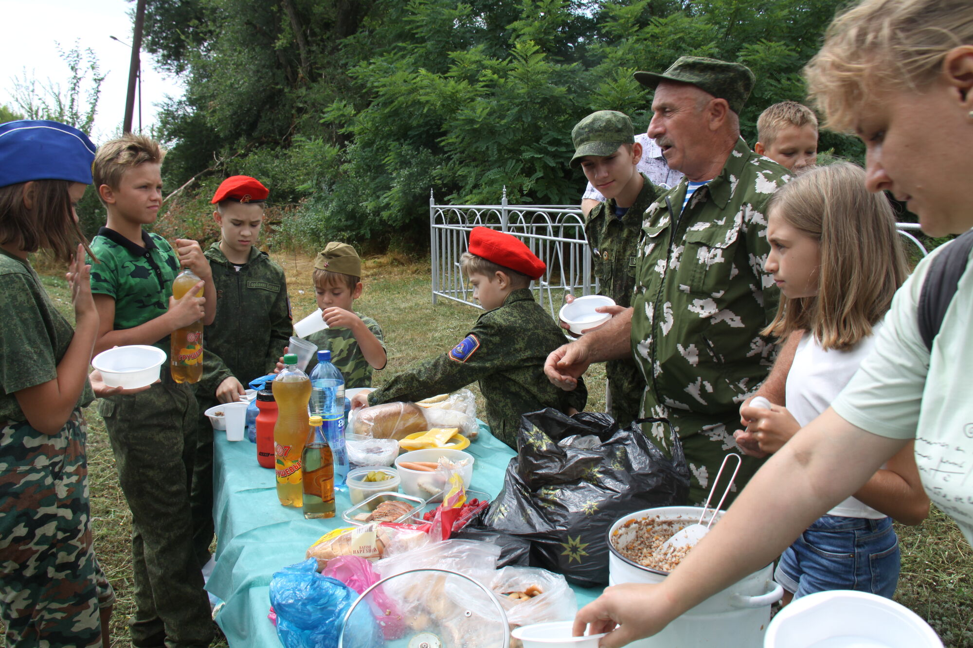 Для юнармейцев была организована совместная трапеза с солдатской гречневой кашей.