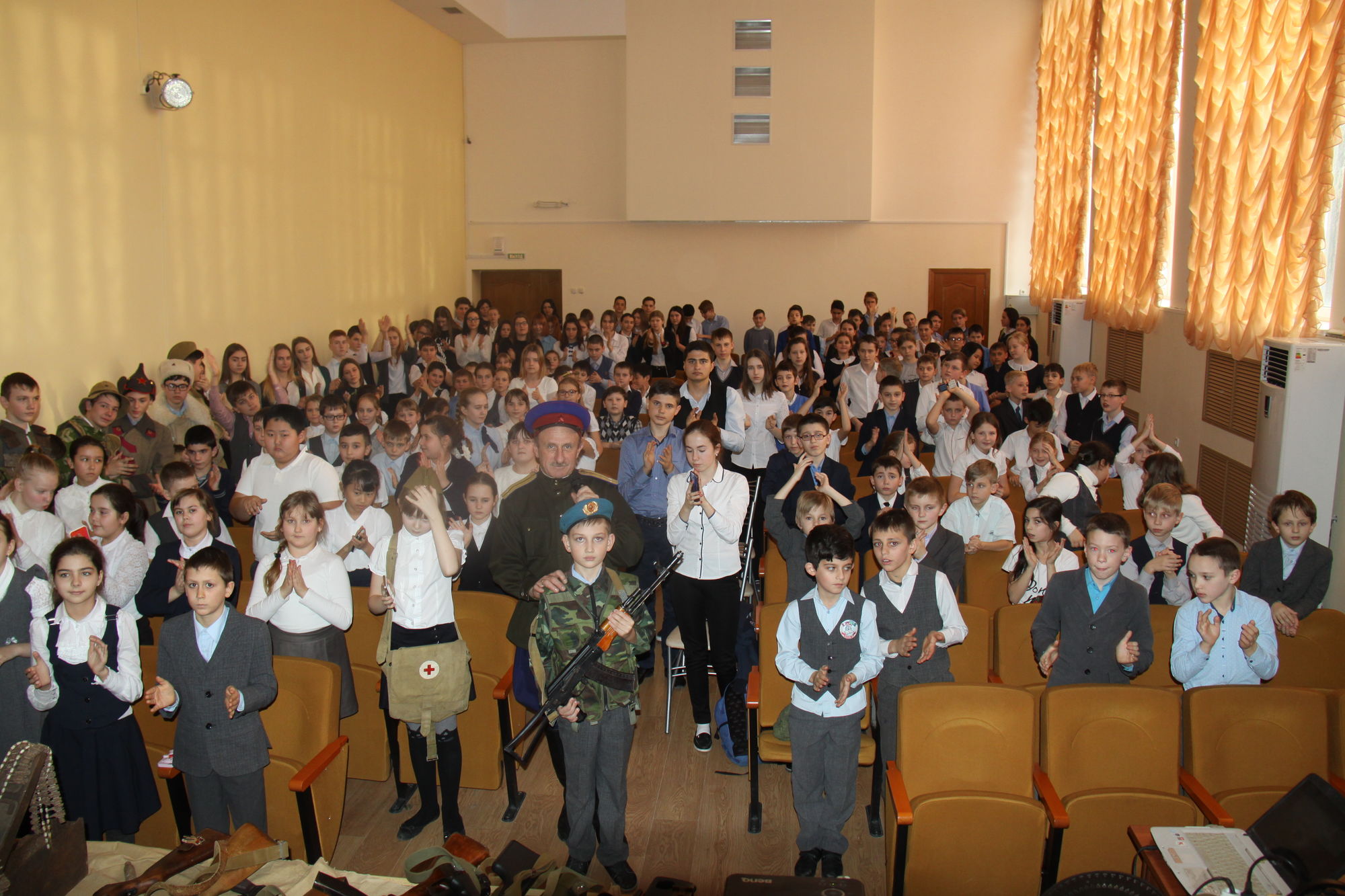 Для учащихся и преподавателей Ростовской школы № 61 в рамках работы выставки был организован «Урок мужества» с элементами живой истории. Дети, одев исторические костюмы, взяв в руки макеты исторического и современного оружия, смогли ощутить себя настоящими защитниками Родины. В преддверии дня освобождения города Ростова-на-Дону от немецко-фашистской оккупации 14 февраля и дня вывода Советских войск из республики Афганистан 15 февраля учащимся и преподавателям была предоставлена соответствующая историческая информация с демонстрацией видео-роликов. Юноши и девушки юные защитники Отечества узнали много нового о прохождении воинской службы по призыву и по контракту в современной Российской Армии на примере конкретных воинских частей Министерства обороны Российской Федерации.