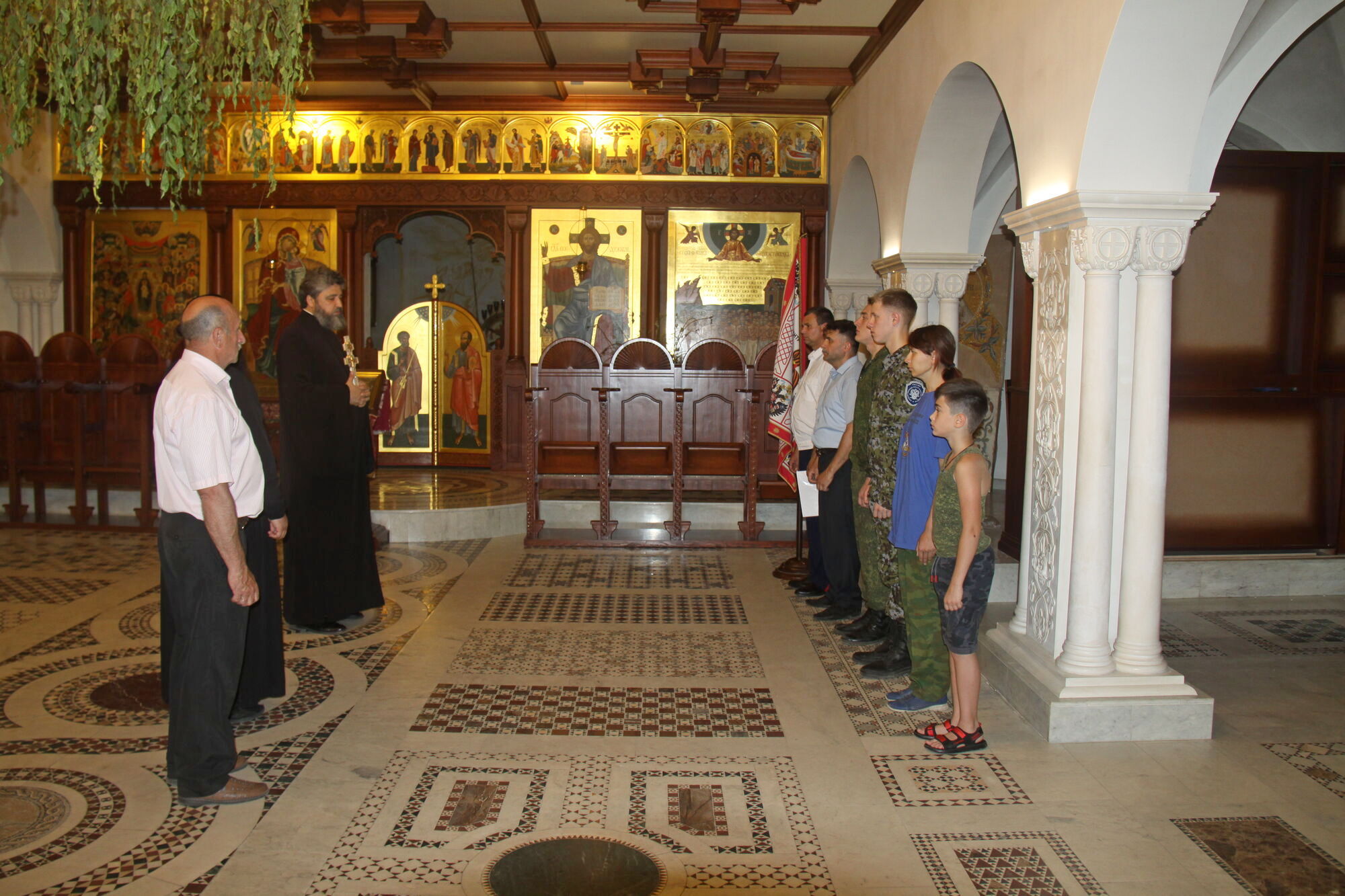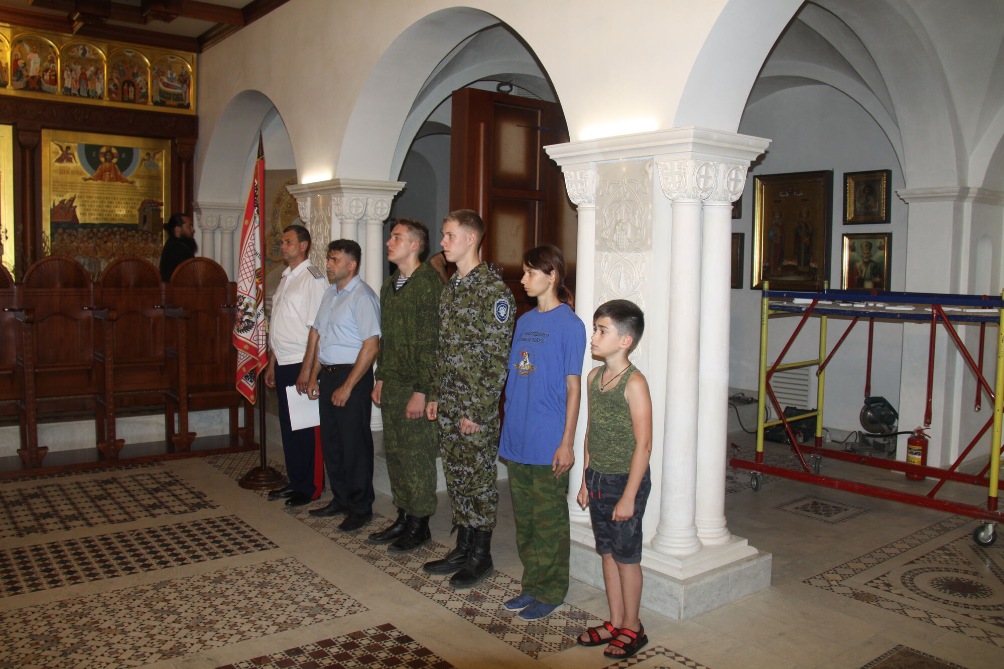 2 июля 2021 года в храме сорока Севастийских воинов мучеников прошла встреча воспитанников приходской воскресной школы, занимающихся по программе «Уроки мужества» (начальная военная подготовка к службе в рядах Российской армии), с настоятелем прихода Святого Георгия Победоносца протоиереем Валерием Волощуком.