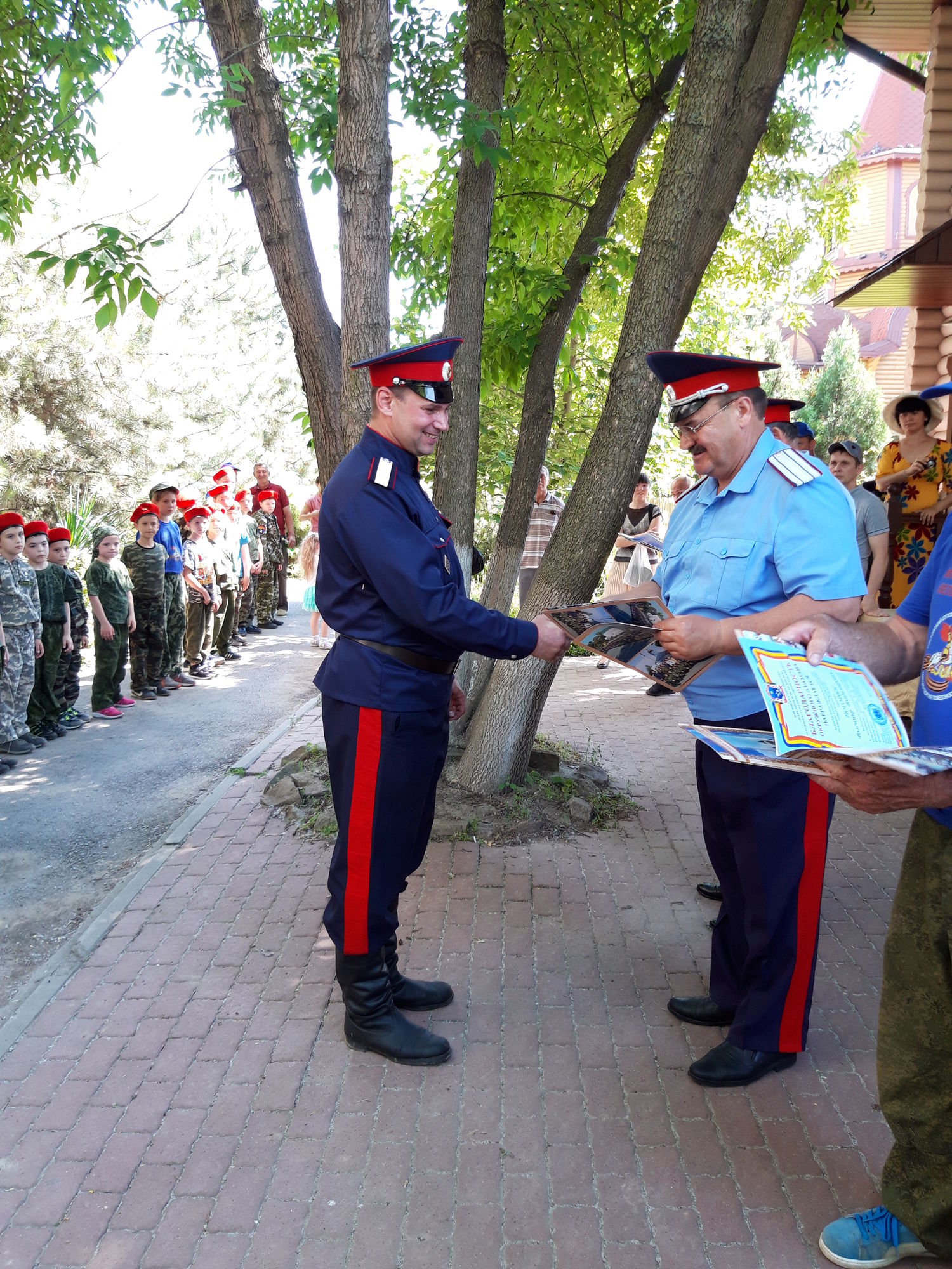 От имени Окружного казачьего общества особо отличившиеся казачата и преподавательский состав Центра были награждены письменными благодарностями и очередными казачьими чинами, а именно: