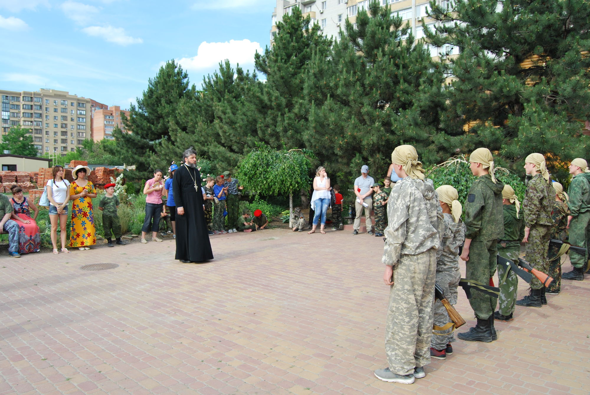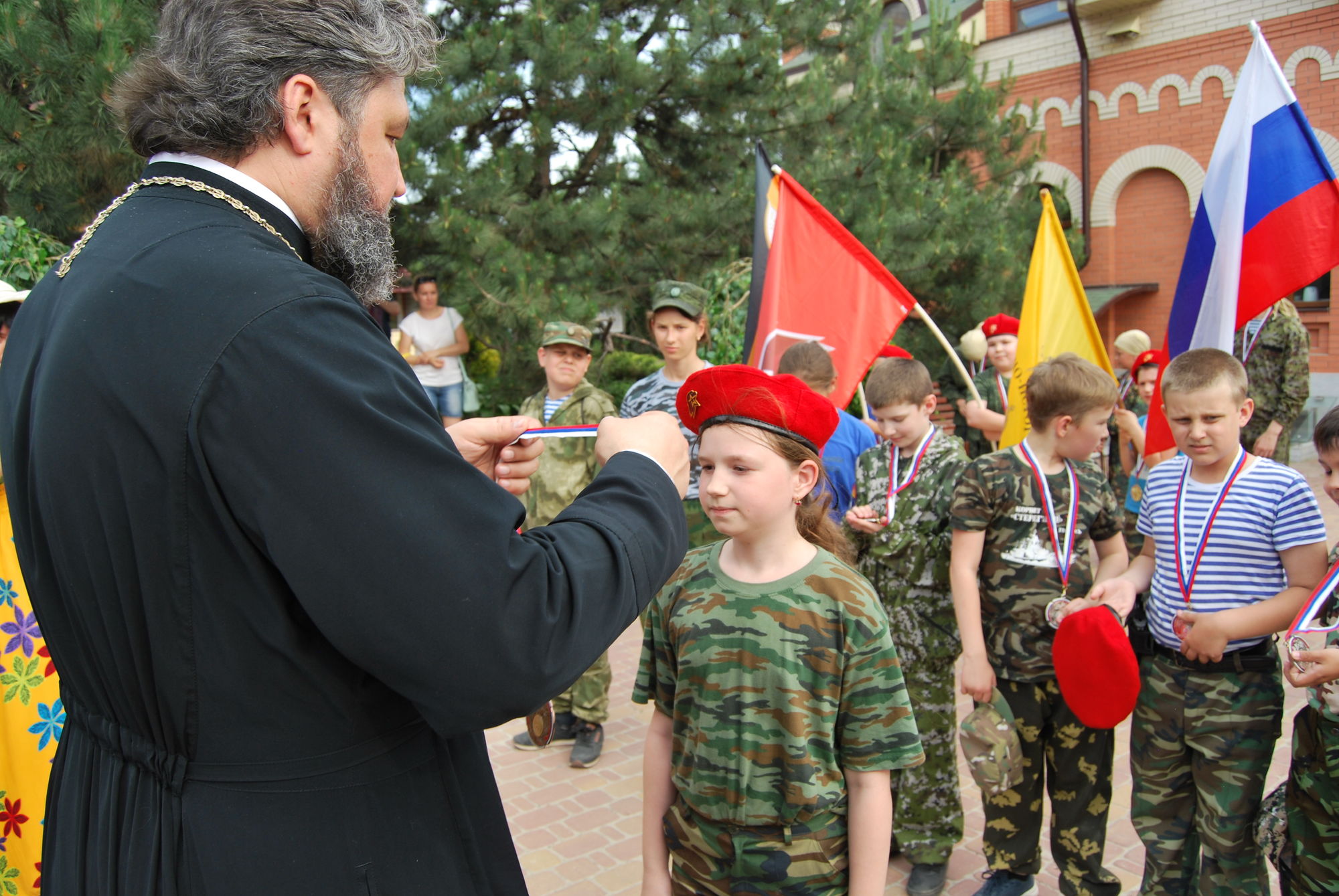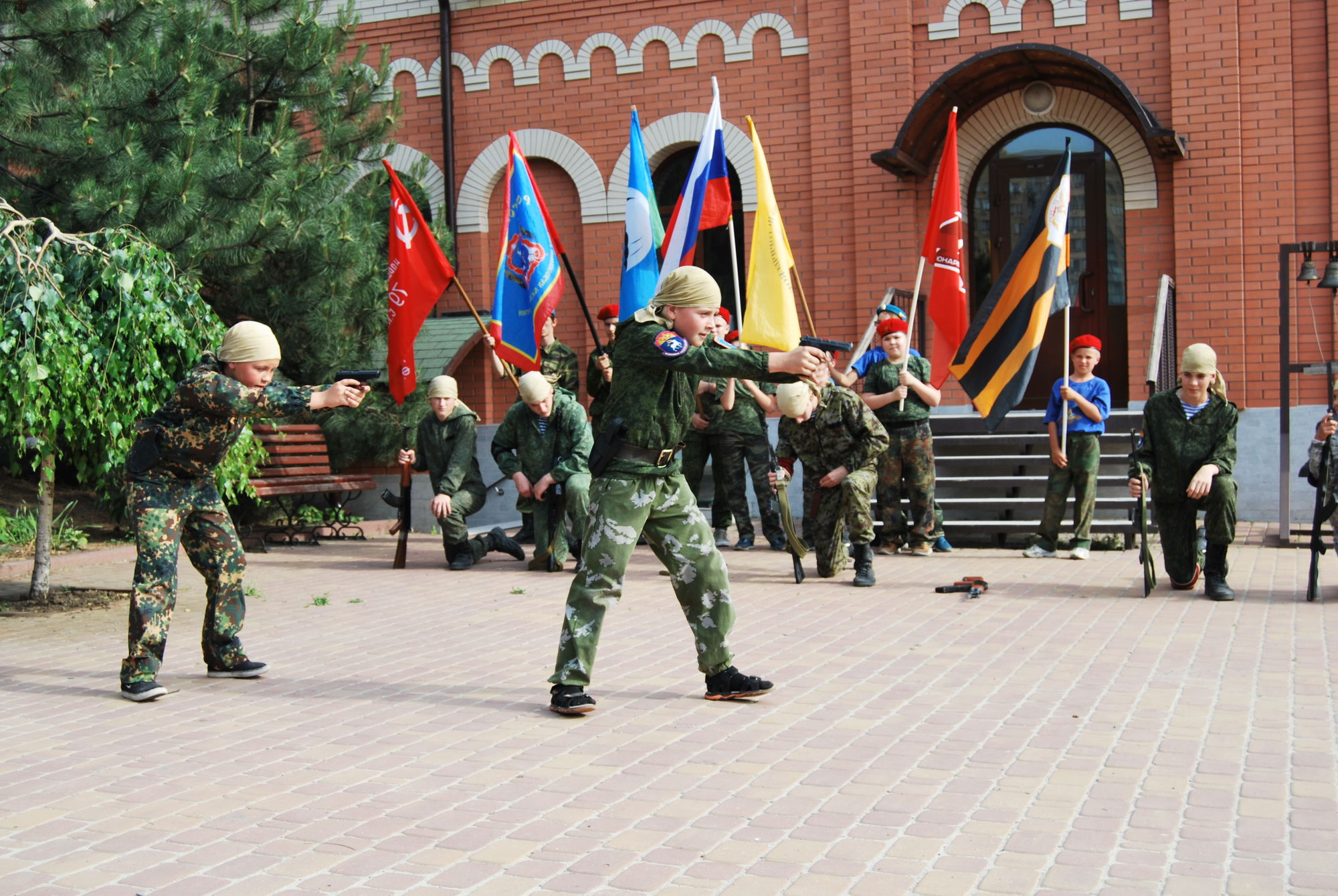 2 июня 2019 года на приходе святого Георгия Победоносца для воспитанников приходской воскресной школы храма Иоанна Воина было организовано итоговое учебное занятие по программе «Уроки Мужества» (начальная военная подготовка к службе в Российской армии), приуроченное к окончанию учебного года и Дню защиты детей. С напутственным словом к воспитанникам обратился настоятель прихода святого Георгия Победоносца, протоиерей Валерий Волощук, который является духовным наставником казачьего юнармейского развед-отряда.