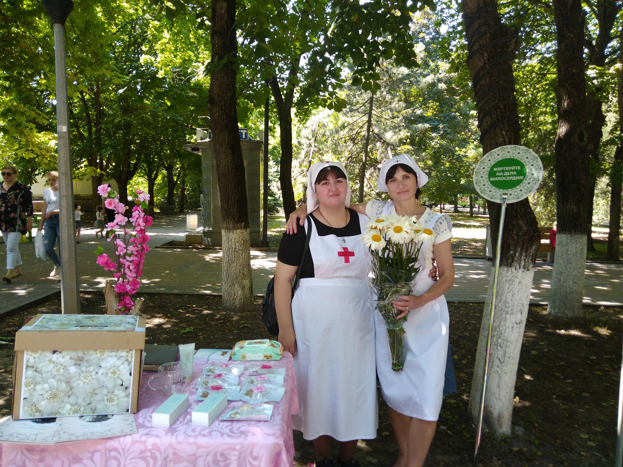 2 июня 2019 года сестричество храма Иоанна Воина приняло участие в празднике милосердия и благотворительности «Белый цветок», который проходил в парке культуры и отдыха им. М. Горького. Сестры милосердия раздавали буклеты, памятки, храмовую выпечку, сладкие угощения и розы за пожертвование. В благотворительной акции от нашего прихода приняли участие и сестры ремесленного центра «Дар Божий». Они провели мастер-класс по изготовлению народной куклы.