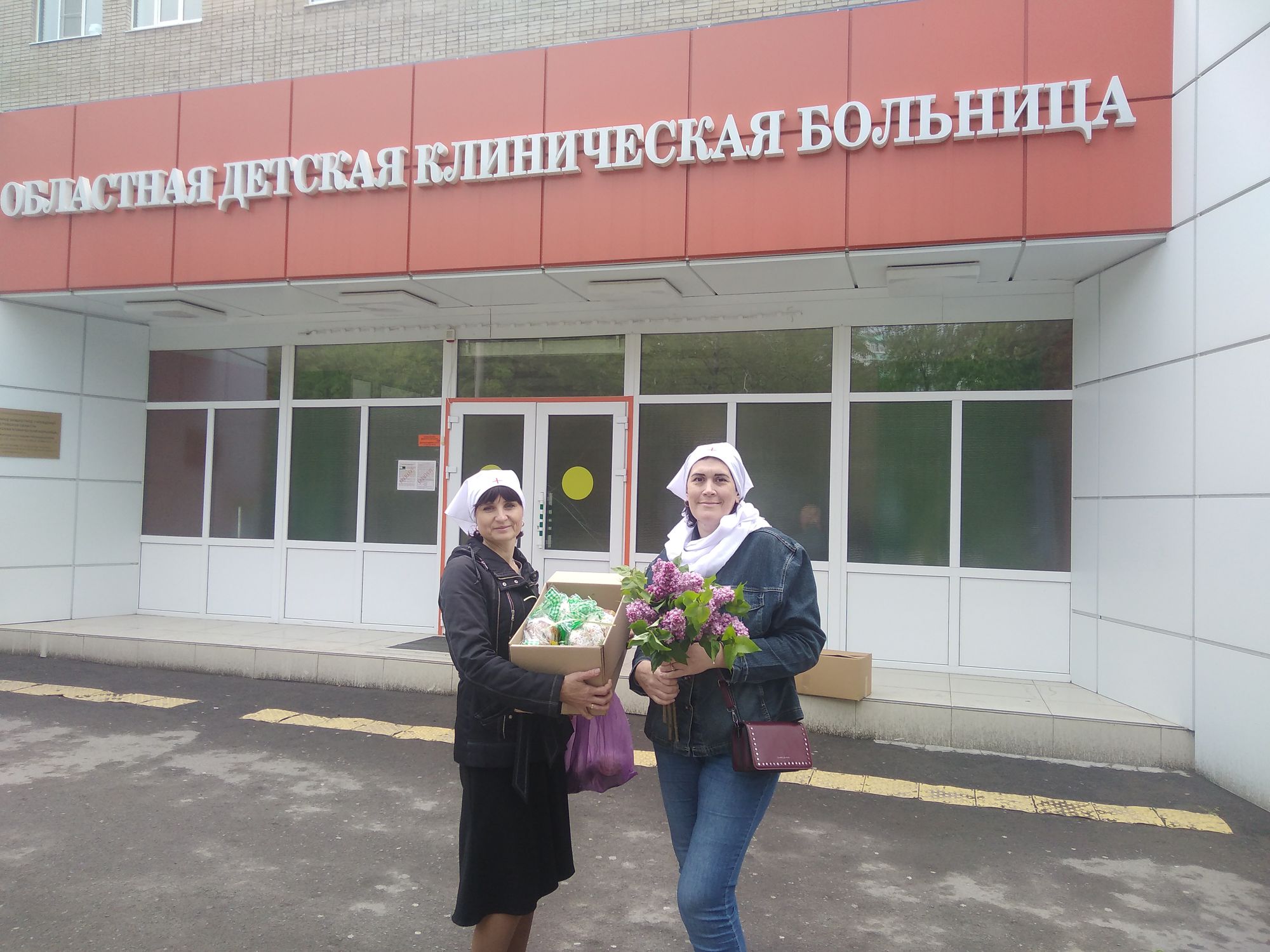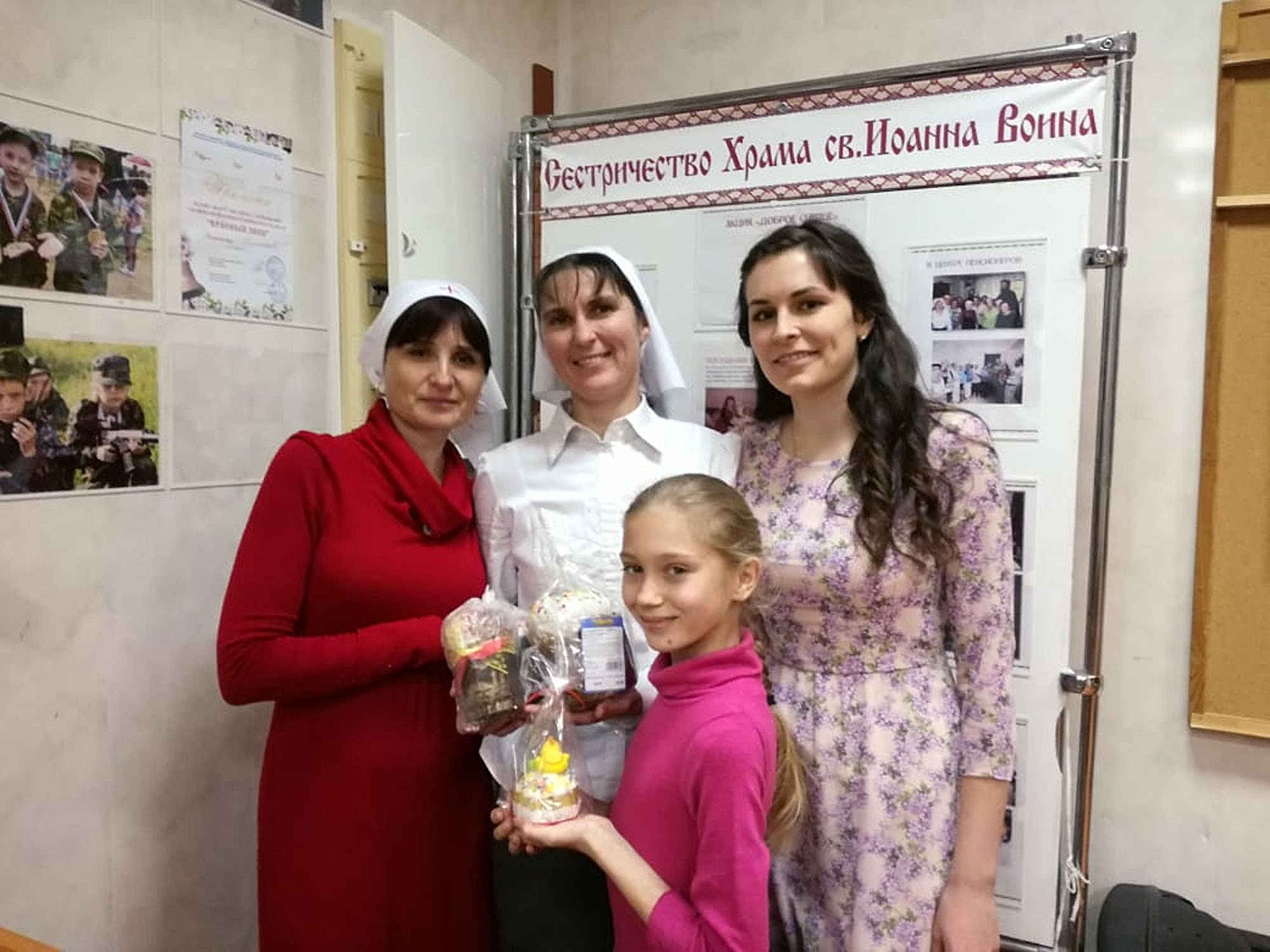 По благословению настоятеля протоиерея Валерия Волощука 30 апреля 2019 года, сестры посетили окормляемый Центр социальной защиты населения Советского района, где была показана презентация «Светлый праздник Пасхи!» В этот же день сестры милосердия побывали в детской областной больнице, отделении педиатрии. Деткам принесли пасхальные куличи, собрали записочки о здравии и рассказали о Светлом празднике Пасхи!