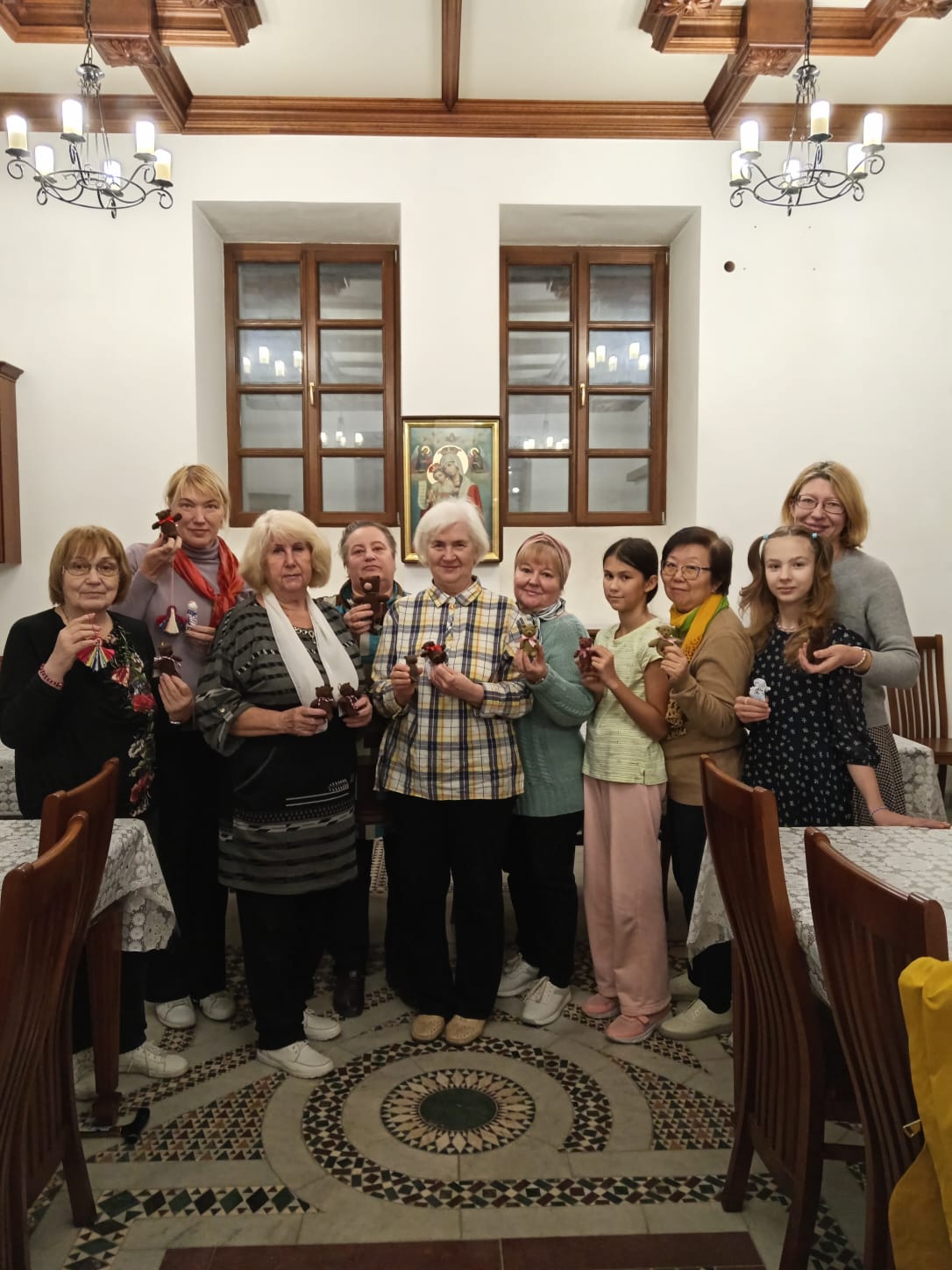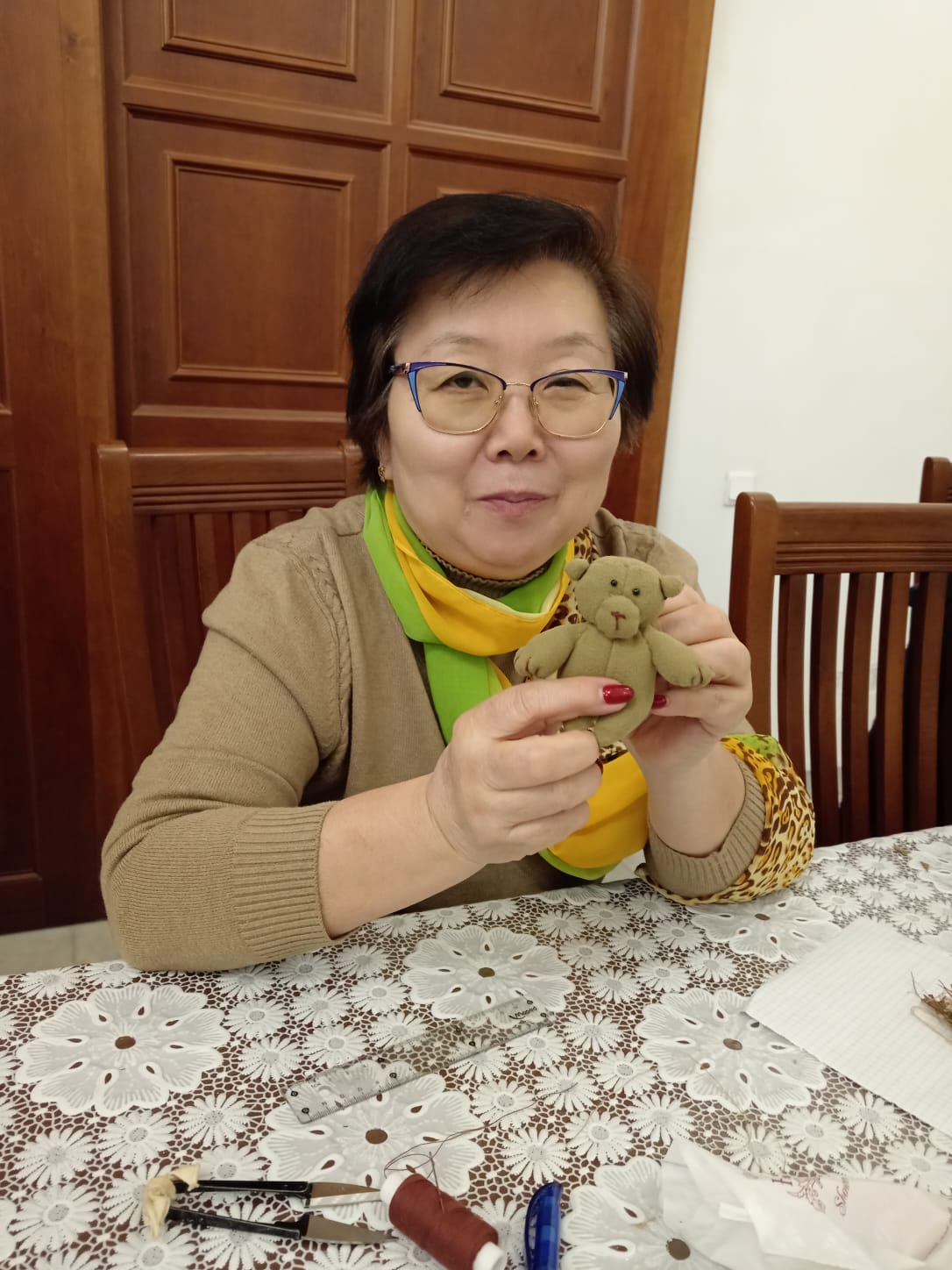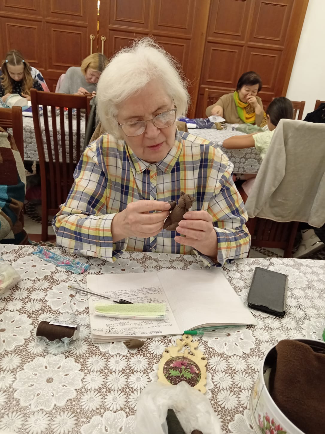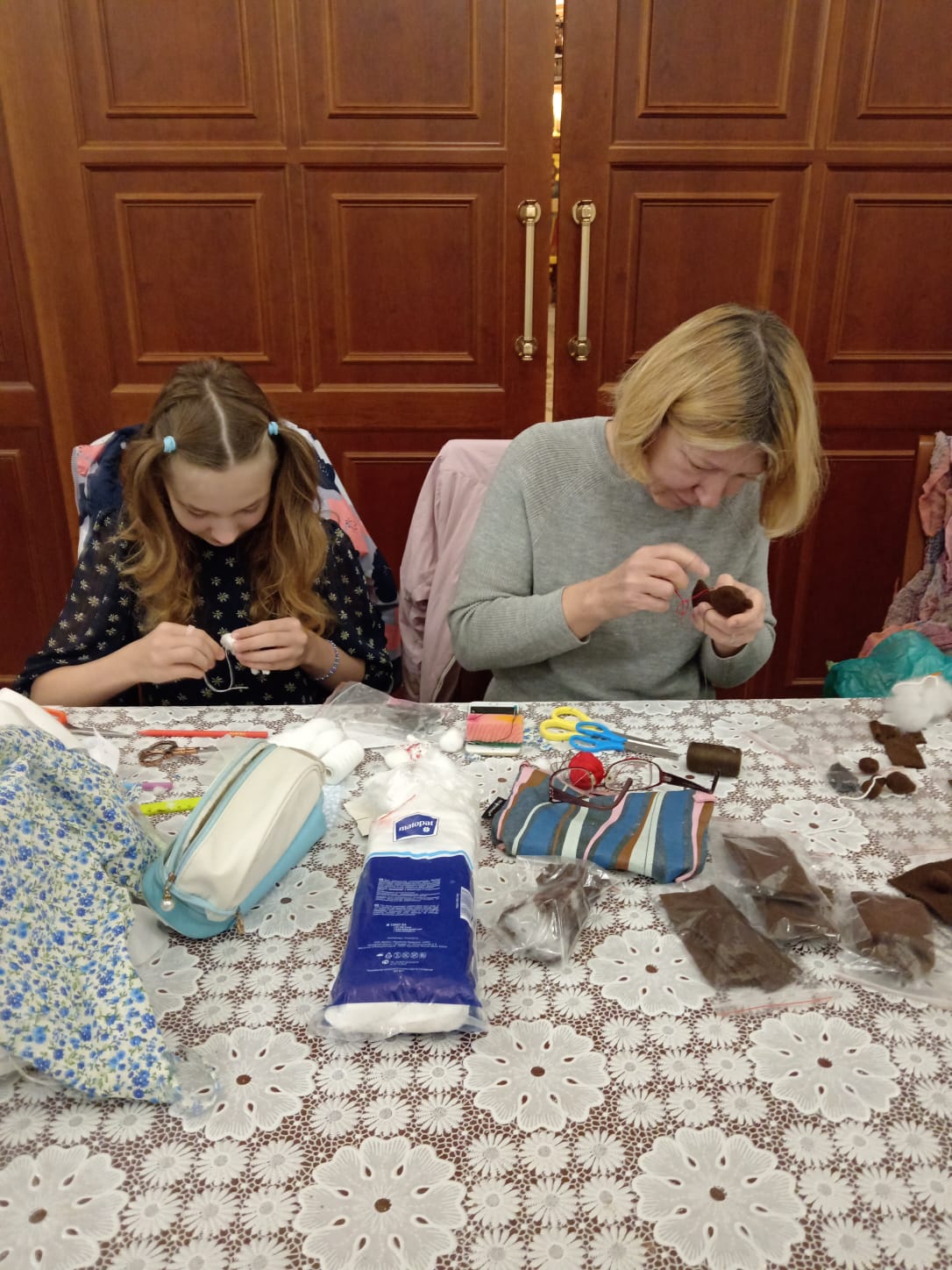 Мастерицы Семейного центра «Дар Божий» шьют для воинов СВО мишек с молитвой «Живый в помощи Вышняго». 2 ноября на занятие пришла бабушка воина, который служит на передовой, чтобы пошить для любимого внука игрушку детства - мишку.