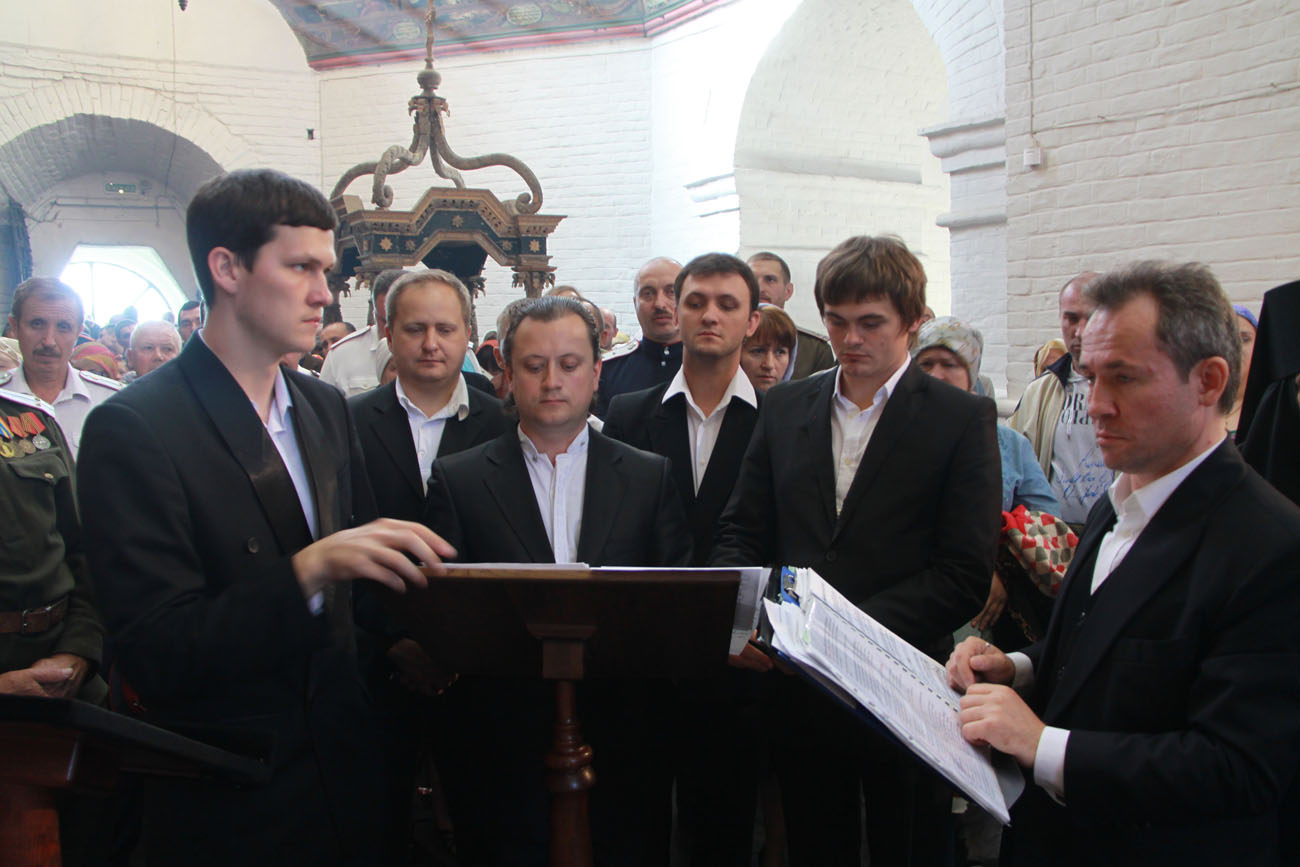 На Литургии пел мужской хор под управлением профессора Ростовской государственной консерватории им. С.В. Рахманинова Сергея Тараканова и хор храма святого Иоанна Воина г. Ростова-на-Дону под управлением регента Михаила Акименко.